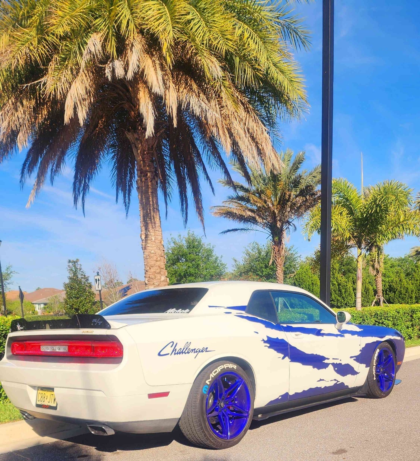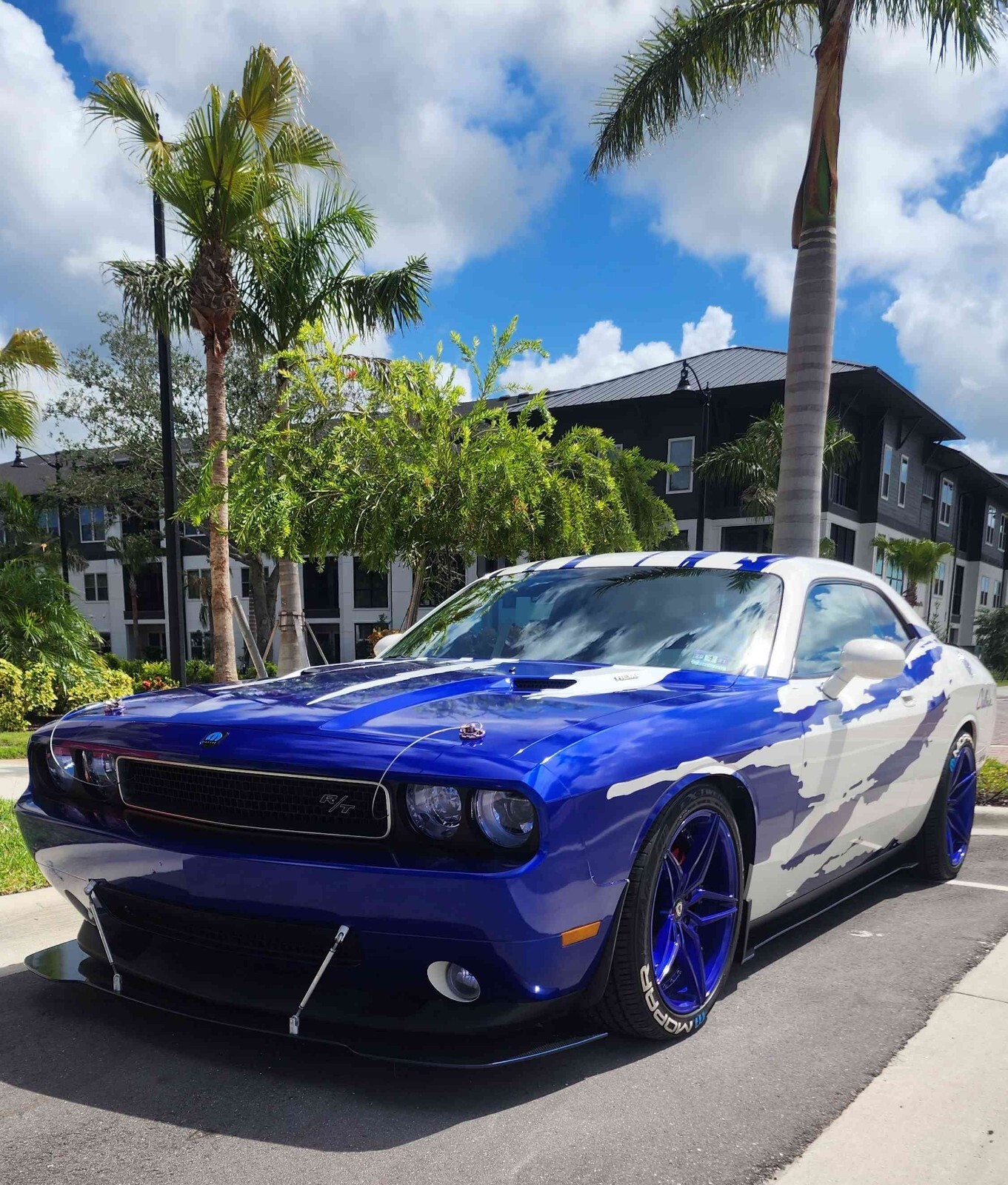 2009 Dodge Challenger R/T 5.7L Full Custom Show Car. Coilover 1'1/2 lowering Performance Suspension,Off set wheels REAR 275/40 ZR20X10, FRONT 245/45 ZR 20x9, Brembo Style front and rear braking system oversized Calibers cut and drilled rotors, Cat back muffler deleted AWSOME SOUND!!! Carbon fiber custom made front splitter and side splitter, Custom Fabricated Crome engine compartment, Partial Custom wrap. As you can truly see this is a ONE OF A KIND.