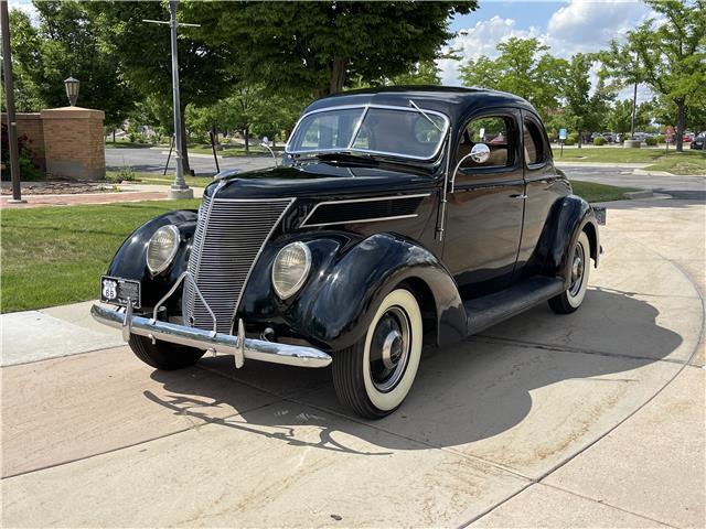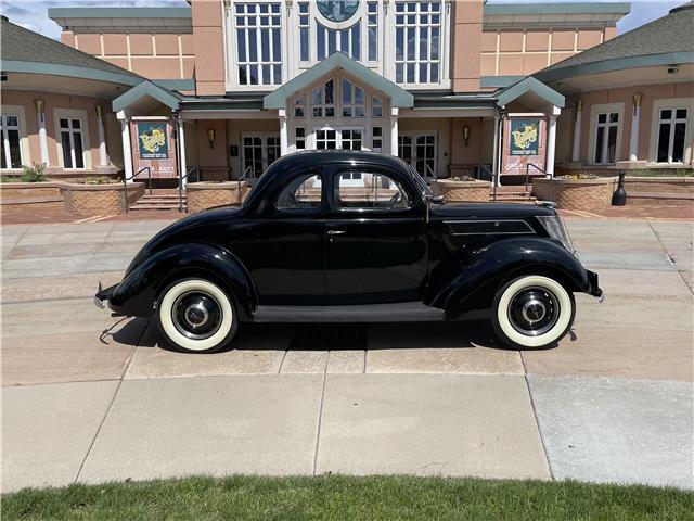 this 37 Ford coupe has all original V-8 60 is described as a real-deal barn find that was found first in 1996 in a barn in the Midwest. It was purchased by a local Ford dealer, then moved to a barn in Ohio where it sat on jack stands until October of 2016 after finally reaching agreements with the next collector the car was purchased then finally, was treated to a professional mild restoration in 2016, including going thru the drivetrain and a original paint correction and cleanup. This car is an incredible time capsule, one that’s powered by its original 136 ci flathead V8- touted at 60hp. This powerhouse was paired with its original 3-speed manual transmission and runs and drives like the day it rolled off the factory line. The maintenance performed within the last few years include replacement of the gas tank and fuel pump in 2016, both water pumps, and the radiator, more recently the original 6 volt generator was rebuilt and a new battery added.