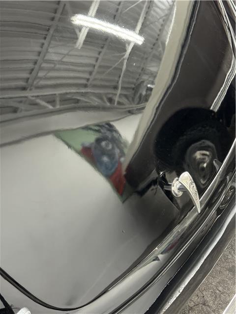 This Ford coupes’ paint was professionally corrected in single stage black as part of its restoration, and featured polishing the accompanying bright work for the front and rear bumpers, door handles, side view mirrors, and fuel cap. The front bumper was originally fitted with the Ford factory grille guard. The body has a working split and vented windshield, curved fenders with integrated running boards, and a two-piece rear window, along with dual exhaust outlets exiting below the rear bumper. Factory color-matched steel wheels with V8-branded hubcaps are wrapped in wide-whitewall tires.