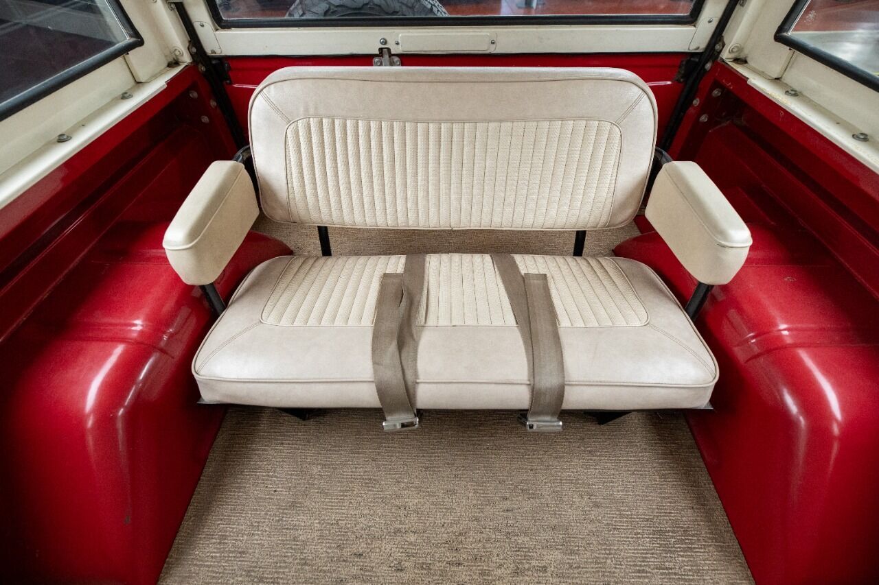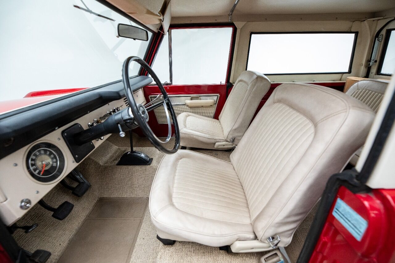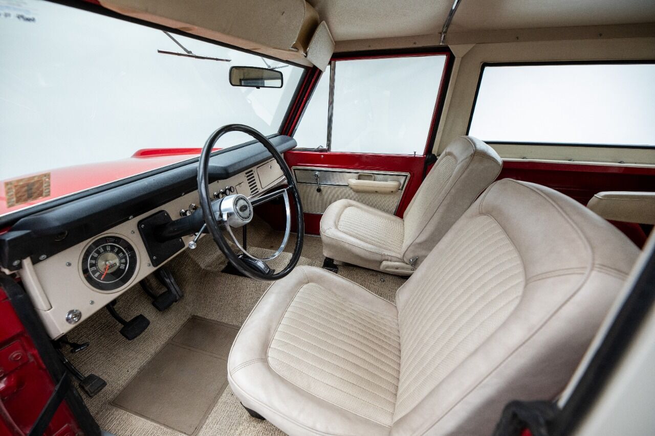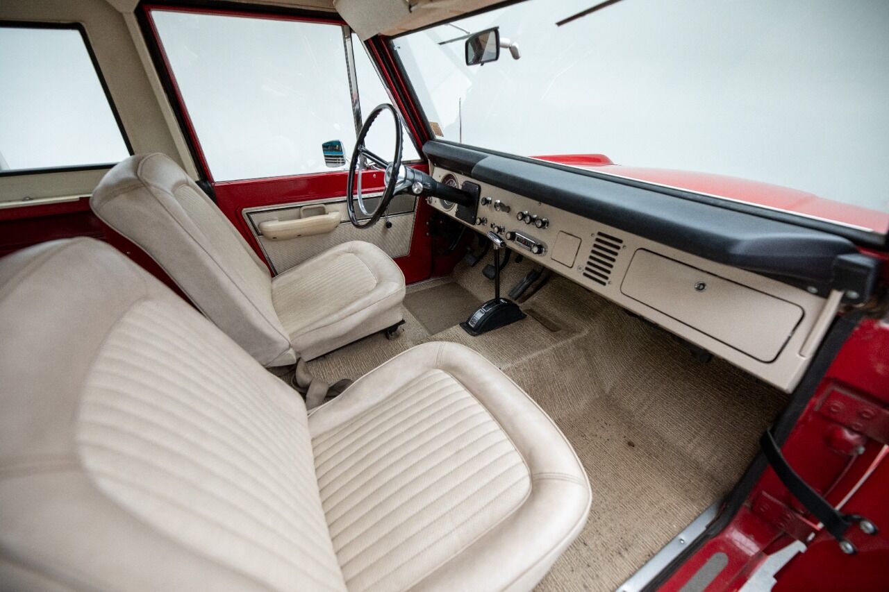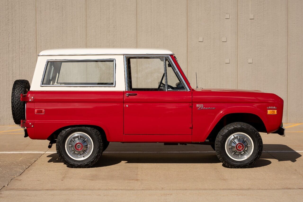 1971 Ford Bronco Sport Wagon 4X4 3 speed manual transmission Low mileage very original SUV Very rare Marti works report showing one of 6 made in this configuration Optional Swing away spare tire mount tire, AM radio, Aux fuel tanks, two skid plates, rear bench seat Sold new to Hover Ford in Denver, Colorado with paperwork from original Original owner This is a superb example of an especially nice original low mileage Bronco Sport 4X4. Powered by a 302 V8 with an manual 3 speed transmission and a solid 4 wheel drive system. The original White Hardtop over Candy apple Red really shines and is the perfect color combination for this unique ride. We believe this is the original paint. The Chrome bumpers with front bumperettes are in great shape and the glass is free of any cracks. Inside is an original parchment rosette bucket seat interior, and rubber mats that looks nearly new. Features Detailed, smooth, and peppy 302 CID V8 Easy and smooth shifting 3 Speed manual Transmission Dana 4:10 Rear Differentials. This one includes Full Four Wheel Drive with Manual Front Locking Hubs Newer 15 inch Tires with stock hubcaps. The matching 5th wheel and spare are mounted on the optional swing away spare tire mount. Finished in Candy apple Red and Polar White. This is one of those rides that is almost too cute to pass up and you just see 'em very often especially with this low miles .