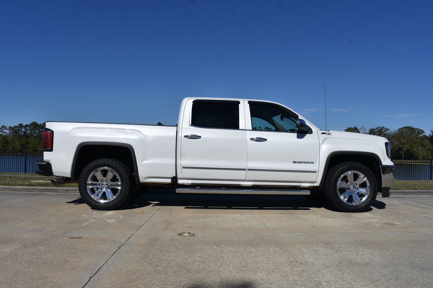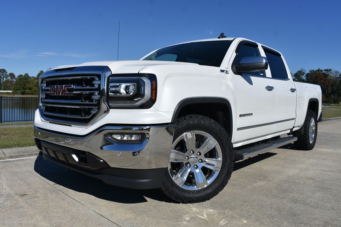 You are looking at a 2018 GMC Sierra 1500 Crew Cab SLT Z71 4x4. It is powered with a 5.3L Vortec V8 and automatic transmission. It is equipped with am/fm/cd player, dual power heated/cooled seats,power windows, power locks, power mirrors, tilt, cruise, spray in bed liner, and receiver hitch. Also included is the owners manuals and one keyless remote.
