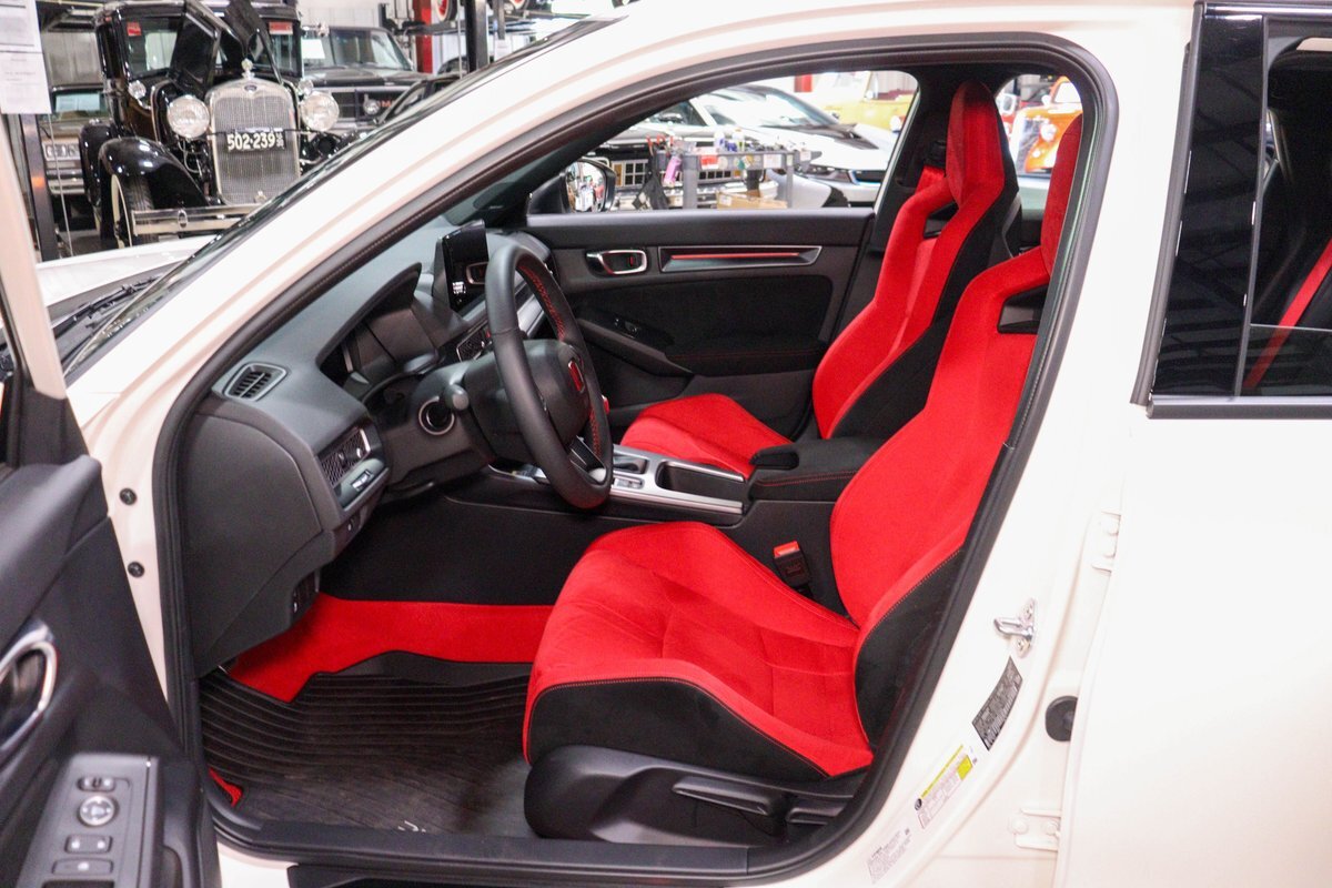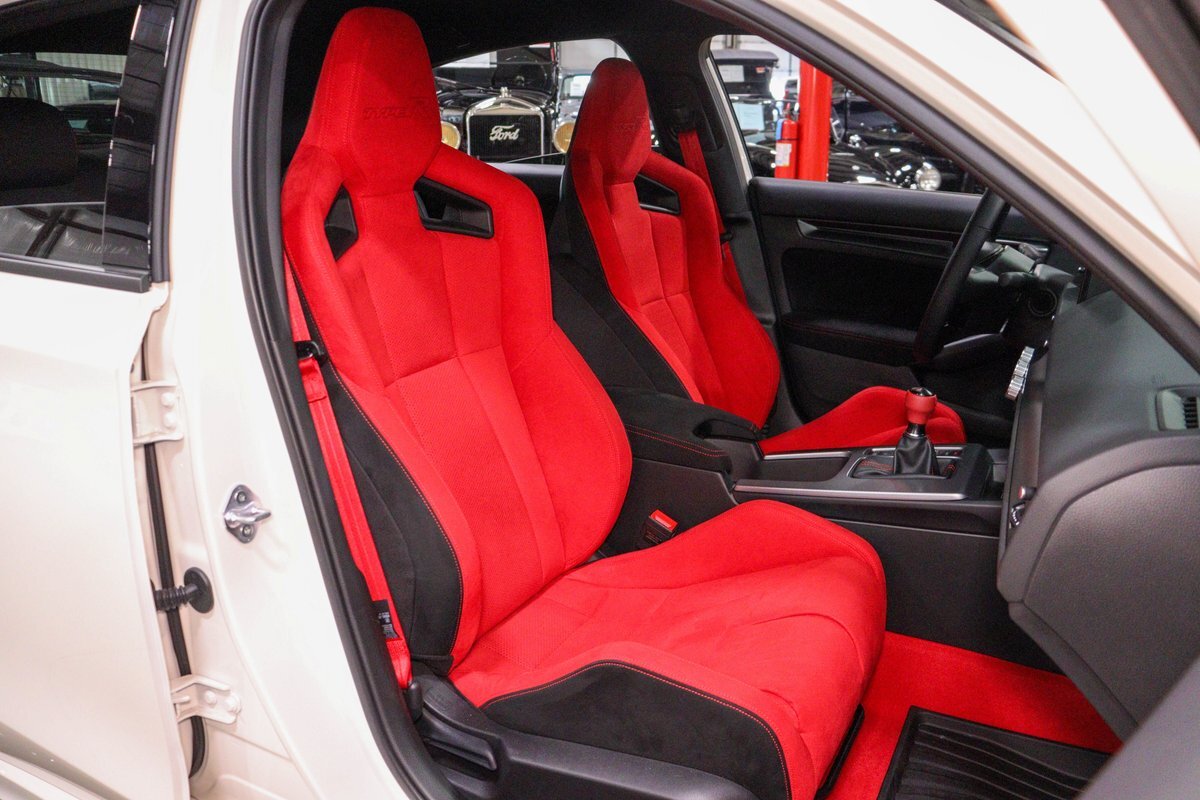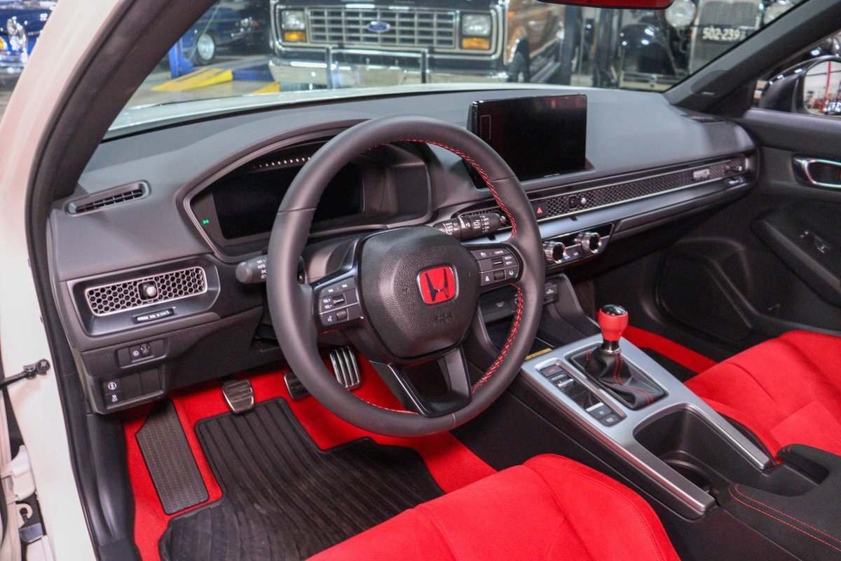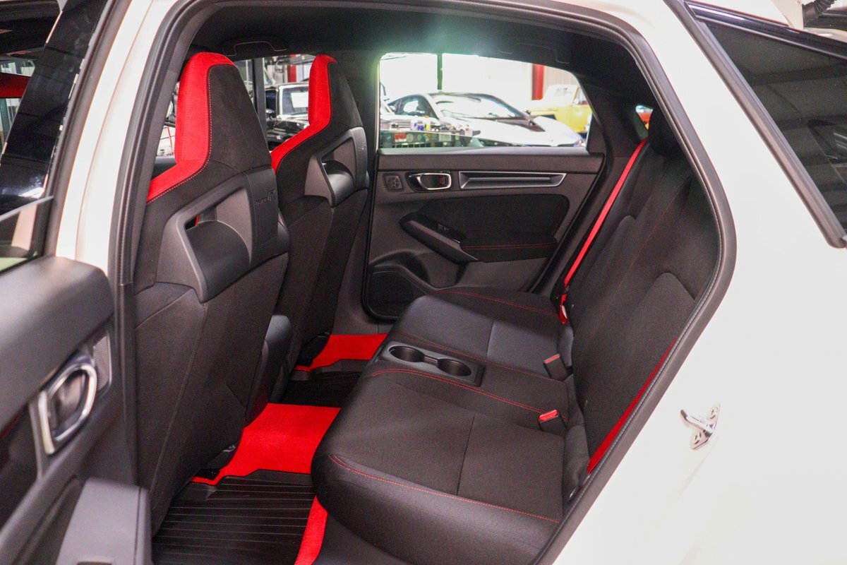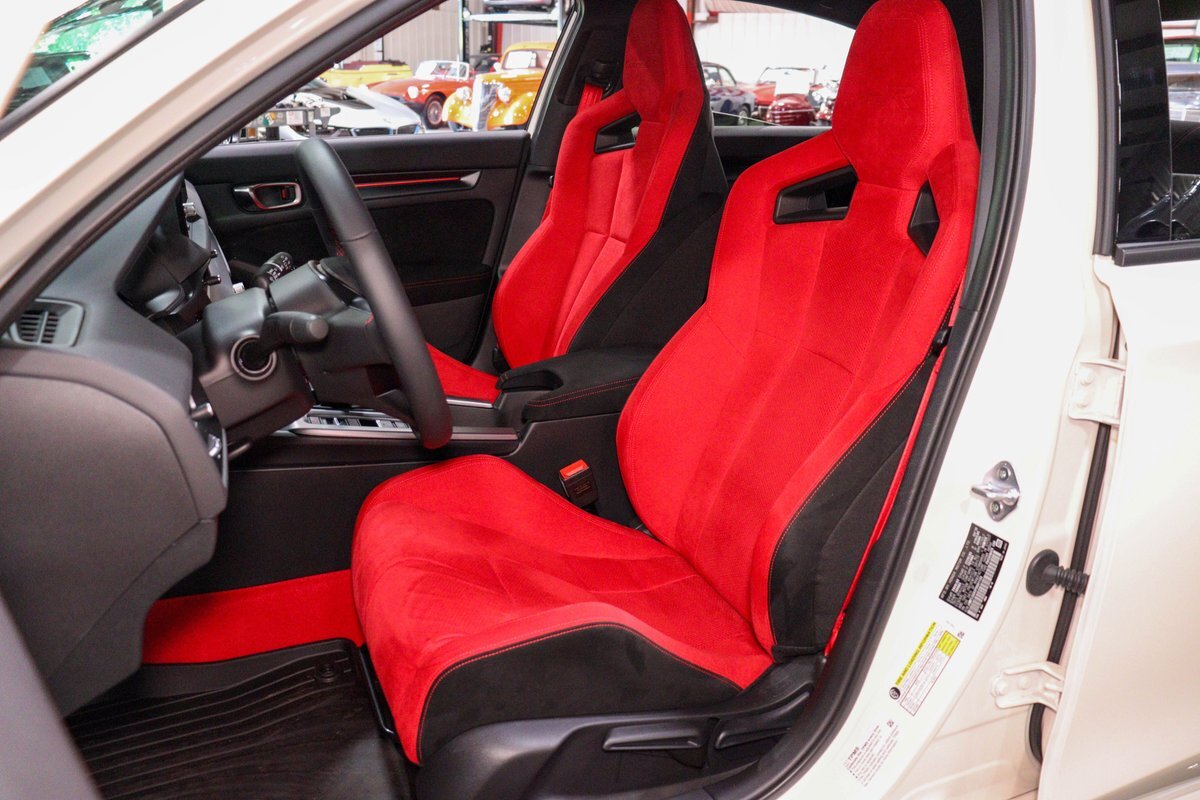 The interior of this Type R is as captivating as its exterior. It features a striking red cloth interior with aggressively bolstered seats that hug you through corners, ensuring both comfort and stability during spirited drives. The leather-wrapped shift knob adds a premium touch, while the driver-focused cockpit places all essential controls at your fingertips.