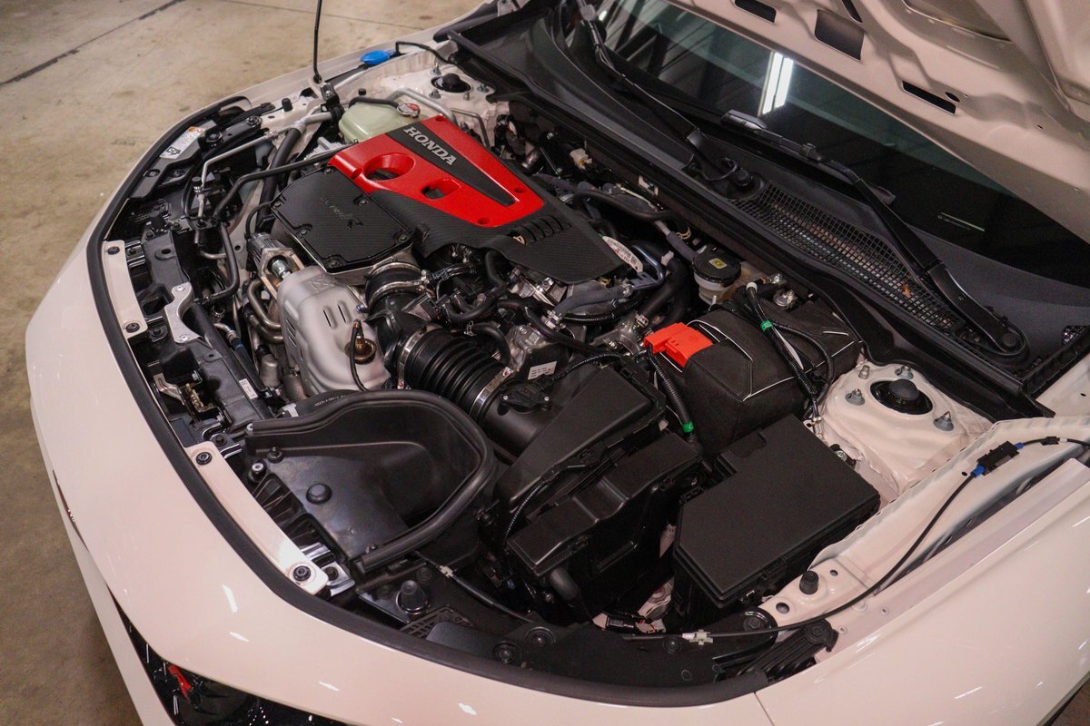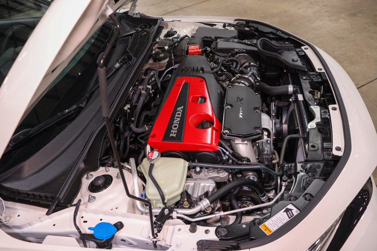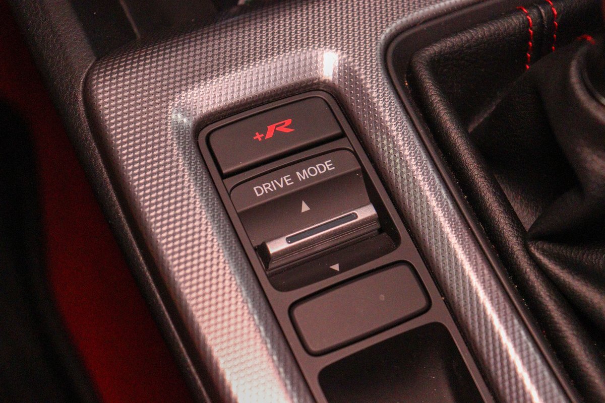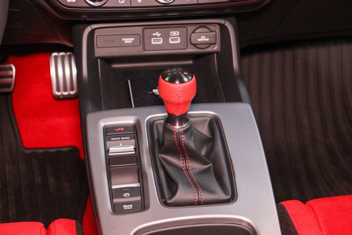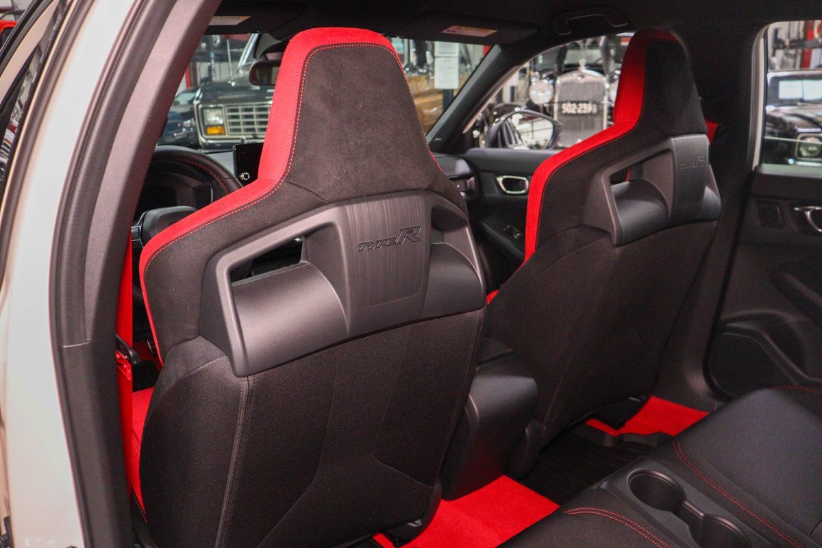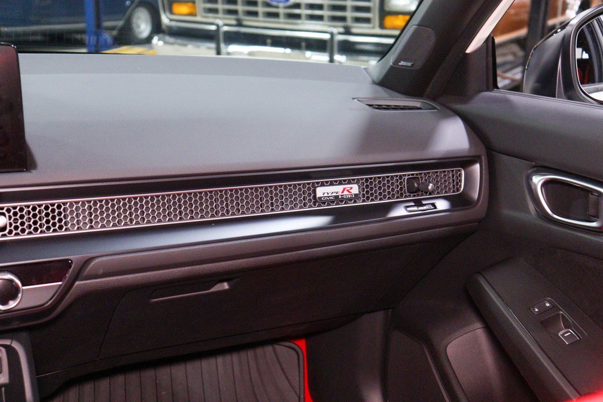 The interior of this Type R is as captivating as its exterior. It features a striking red cloth interior with aggressively bolstered seats that hug you through corners, ensuring both comfort and stability during spirited drives. The leather-wrapped shift knob adds a premium touch, while the driver-focused cockpit places all essential controls at your fingertips.