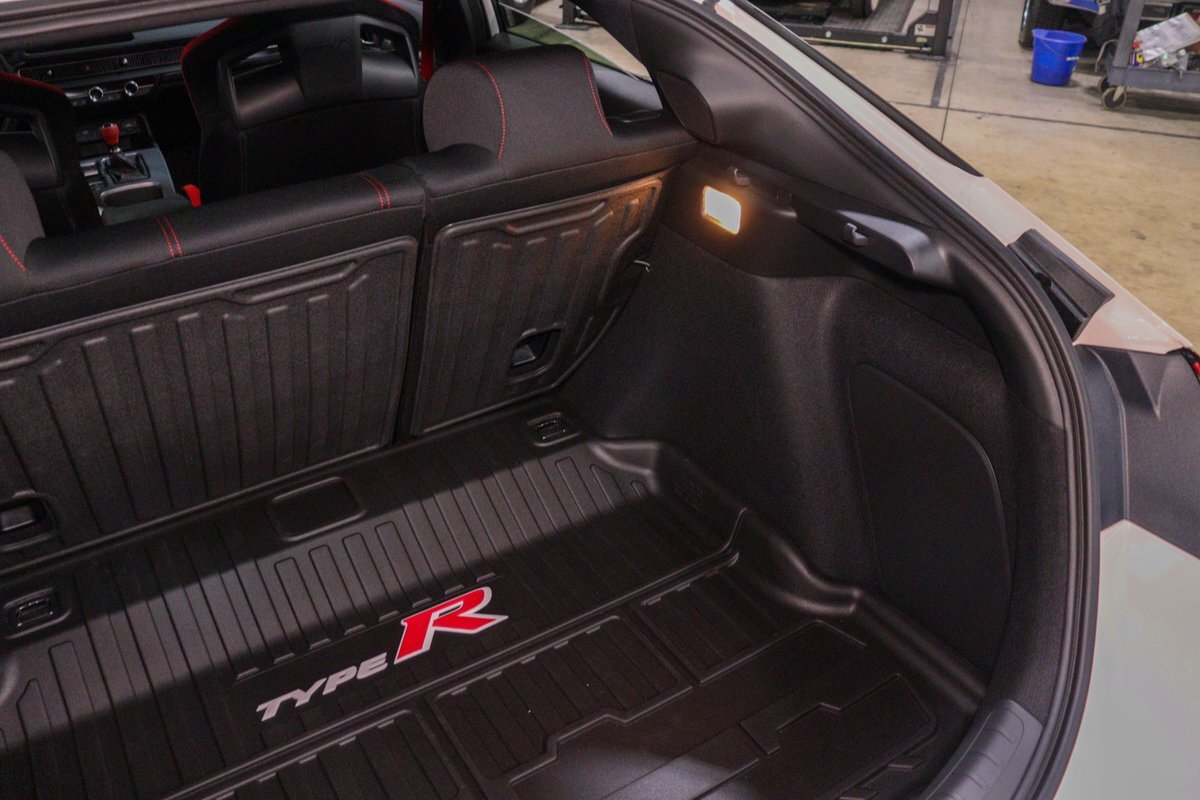 Climate control is automated with dual-zone functionality, allowing both driver and passenger to set their preferred temperatures. Additional touches such as the push-button start, ambient lighting, and aluminum pedals further elevate the interior experience, blending modern convenience with the Civic Type R's racing pedigree.