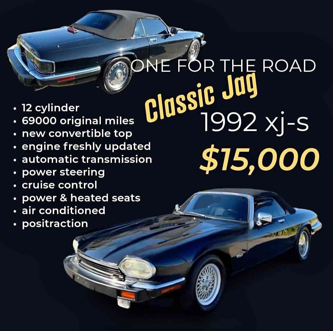 1992 Jaguar XJS V12 Black convertible. 70k orig. miles. Top is approx 1 yr old. Engine overhauled in Spring 2024. Automatic transmission. Power steering. Power/heated seats. Completely OEM.