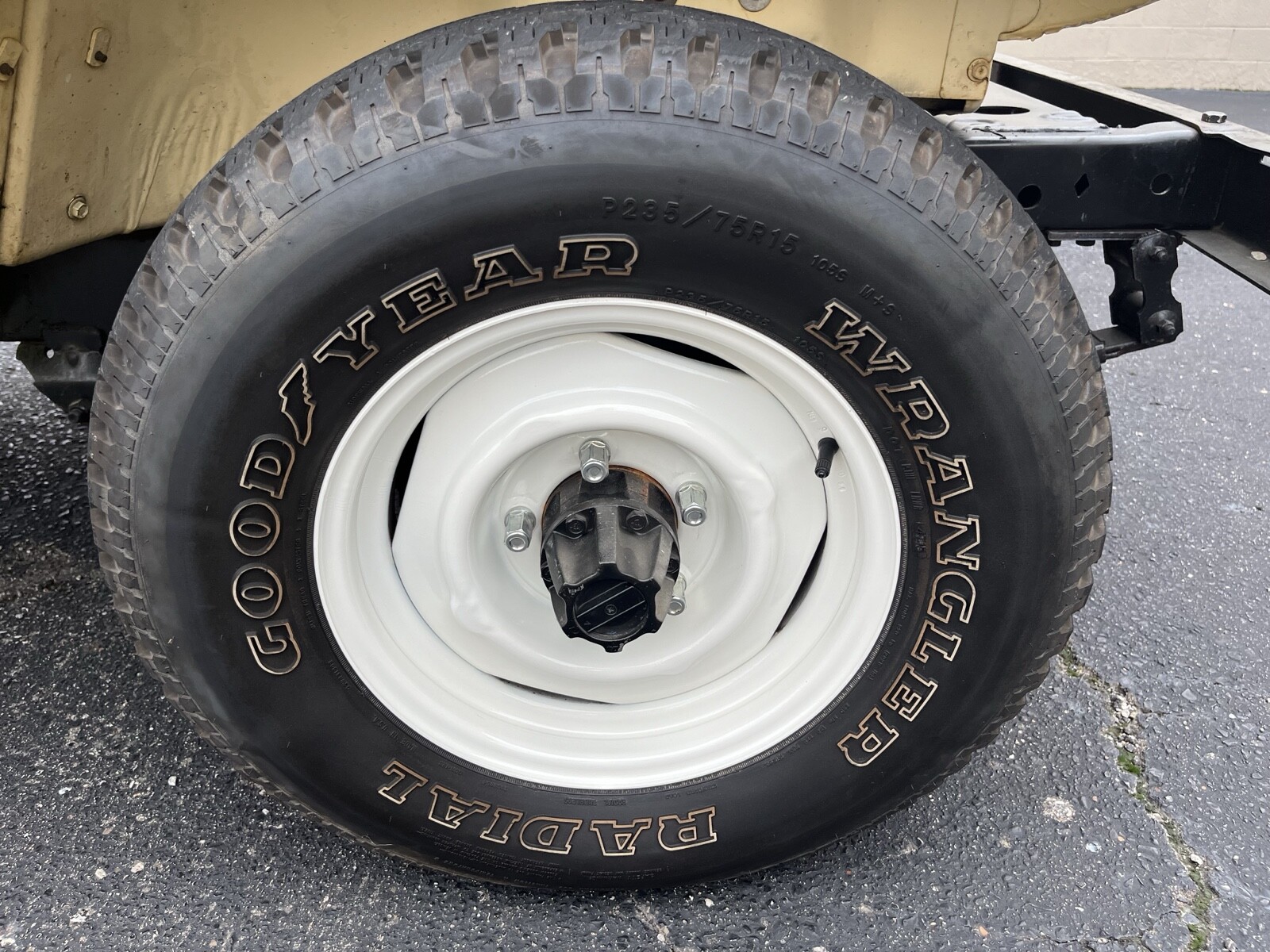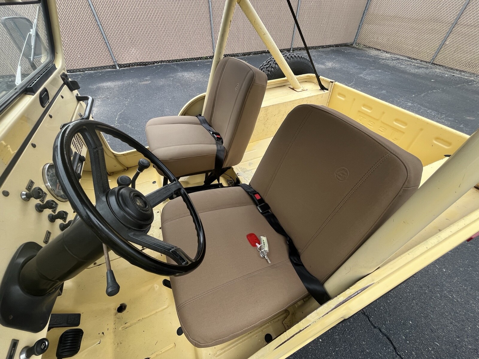 My understanding from the previous owner is that this Jeep was originally a maintenence vehicle at a mobile home park in California and was never licensed during that time (hence the incredibly low miles). He got it from someone in Arizona and had it shipped to Michigan where I bought it and where it is currently licensed as a historic vehicle. It has all original paint in relatively good condition. There is one spot behind the battery on the firewall that has been repainted for some reason. This CJ-5 starts, runs and drives great, although on occasion sputters a little bit which I’m convinced is a vacuum issue that I cannot track down. Otherwise, pretty much like new. I installed some aftermarket seats, but the original seats are in good shape and are included. I also have a full canvas storage cover which is also included. Good luck bidding!