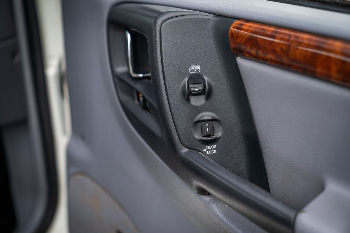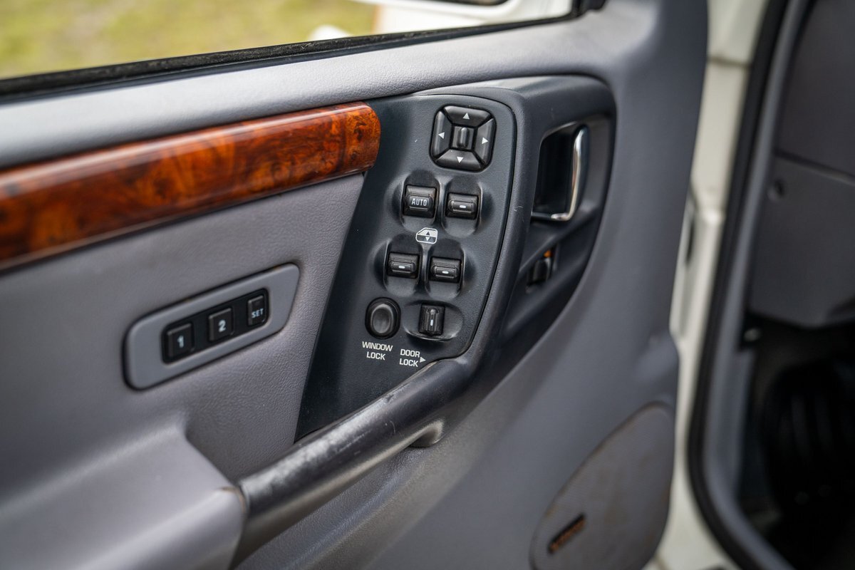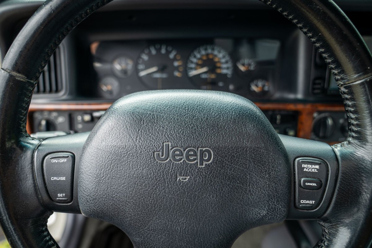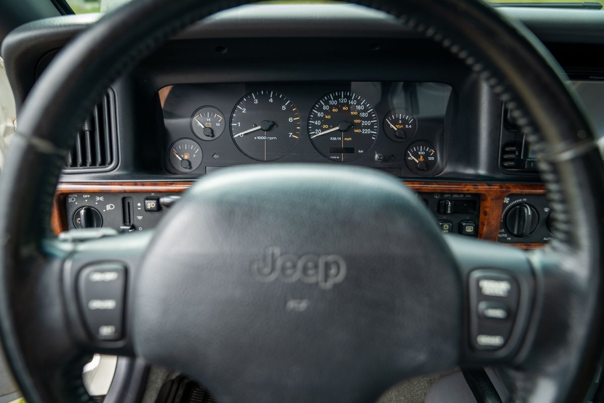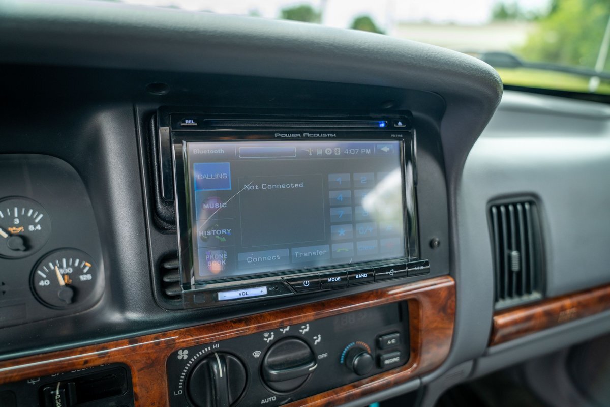 This 1997 Jeep Grand Cherokee is a Canadian-market example that was modified for off-road use under prior ownership with the installation of an NP242 dual-range transfer case, a Dana 60 front and Dana 80 rear axle, ARB front and rear locking differentials, a 5" suspension lift, 17" Fuel Off-Road wheels, and 37" mud-terrain tires. The truck is powered by a 5.2-liter V8, and it is finished in white with teal and pink side graphics. Additional equipment includes tubular bumpers, front and rear winches, air conditioning, a sunroof, an aftermarket touchscreen head unit, and heated power-adjustable front seats. This Grand Cherokee has 361k kilometers (~224k miles) and is offered with a clean Carfax report and a clean title.