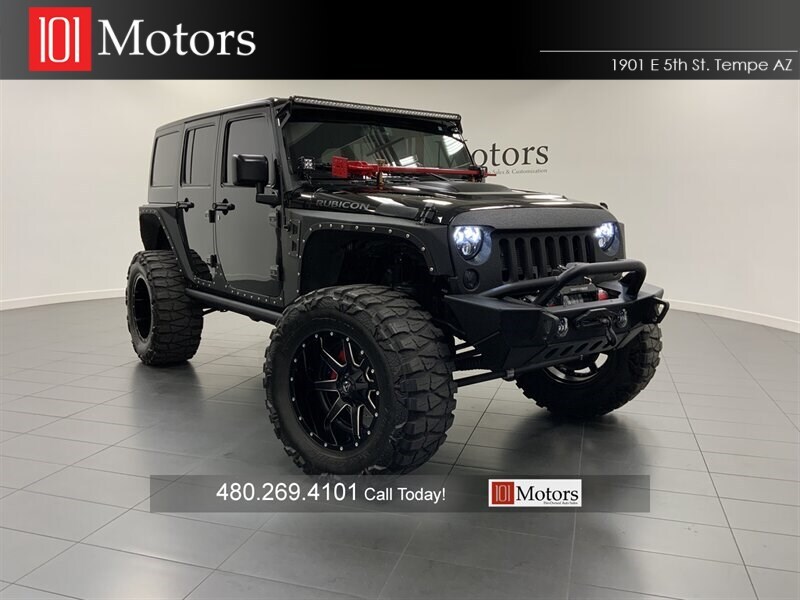 101 Motors is proud to present this stunning 2015 Jeep Wrangler Rubicon. This Sprintex supercharged JK is lifted with an AEV DualSport suspension system and sits on 20 inch Fuel wheels. Upgrades also include Smittybilt XRC bumpers and fenders, AMP power steps, Rigid Industries lighting, Smittybilt 9500 lb winch, Alpine head unit with navigation and back up camera, custom leather interior and more. You don’t want to miss this opportunity, call today!!