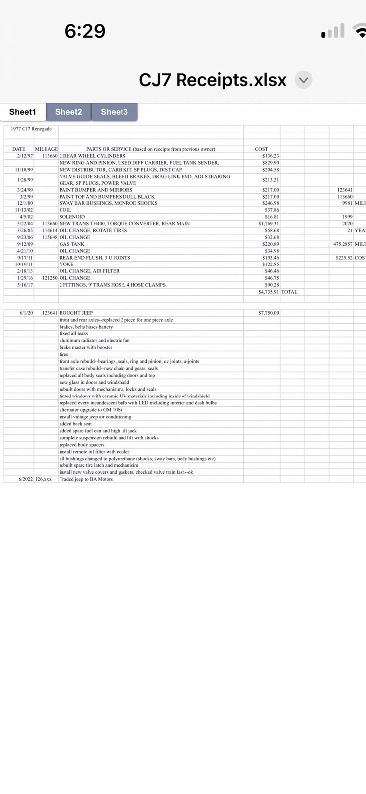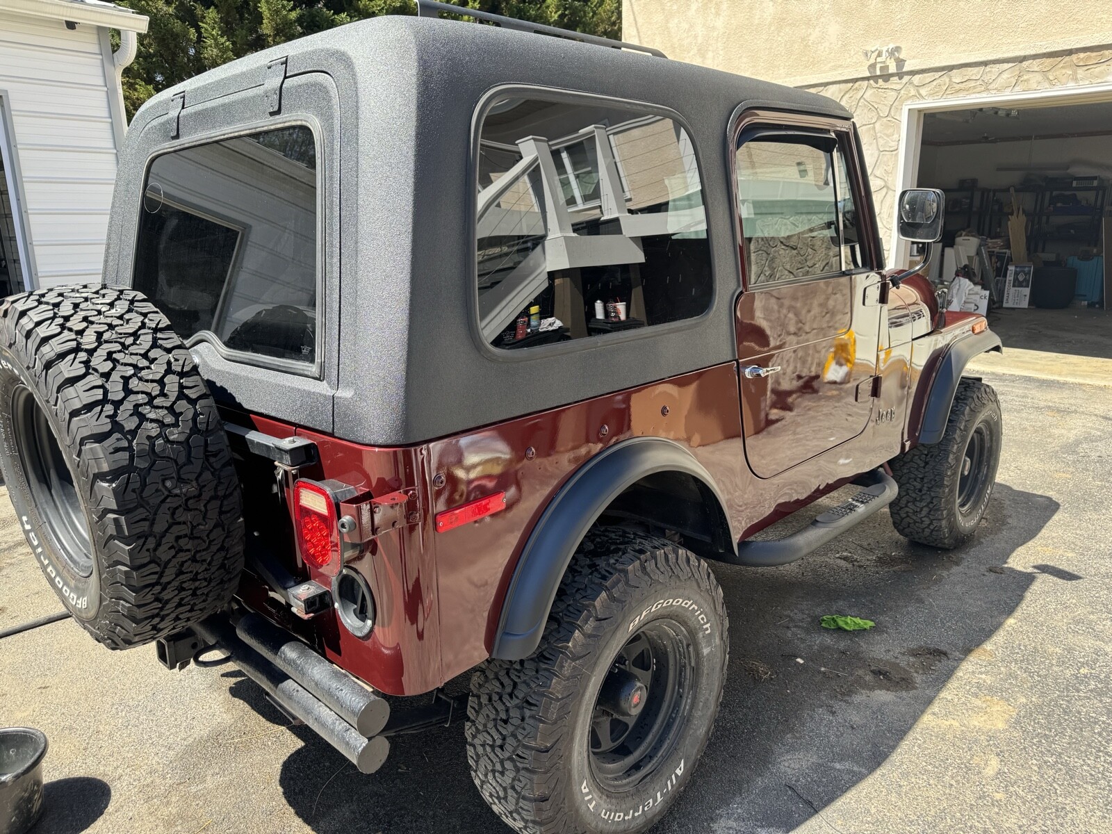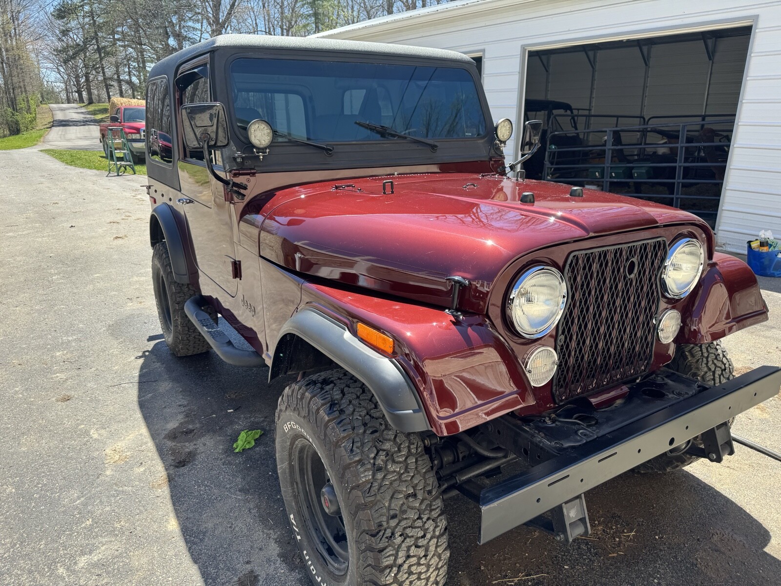 Well maintained 77 CJ-7. Recently professionally repainted in the factory correct Autumn Red Metallic. Zero rust on body and frame during the body work! The hardtop was repainted black. Jeep has many new parts including tires, brakes, steering box, alternator, correct Motorcraft 2Bbl carb with electric choke, battery, hood hold downs, plastic fenders. Runs and drives very well. Work done by previous owner included in pics. He put 8 K in restoration costs and only drove it 4000 miles! We just don’t drive it enough to justify keeping it.