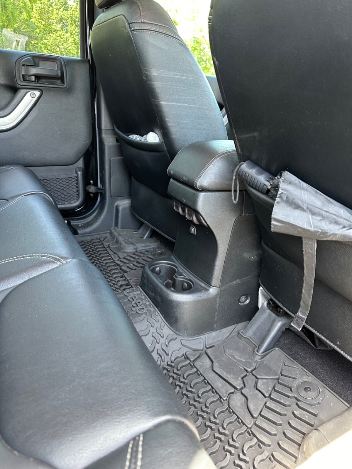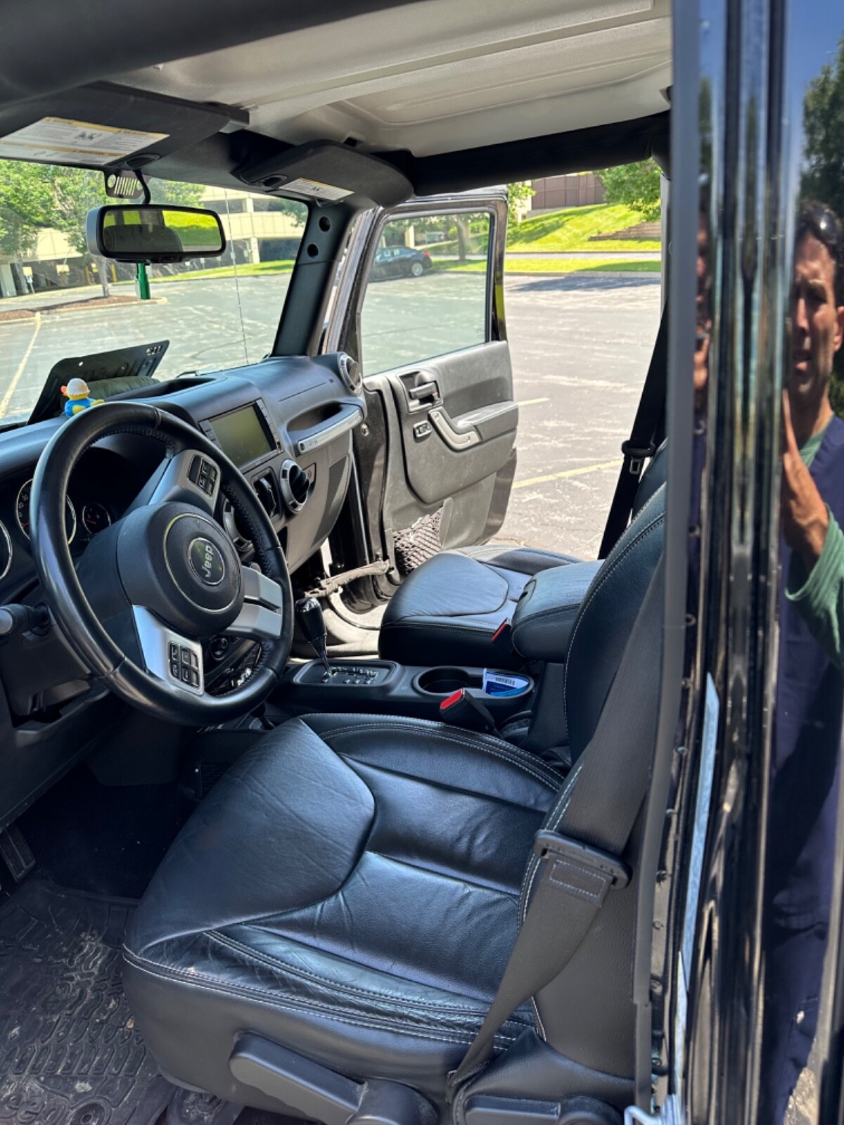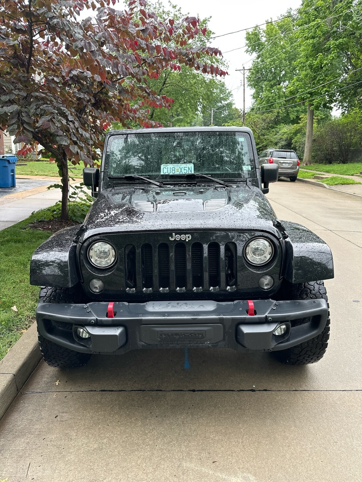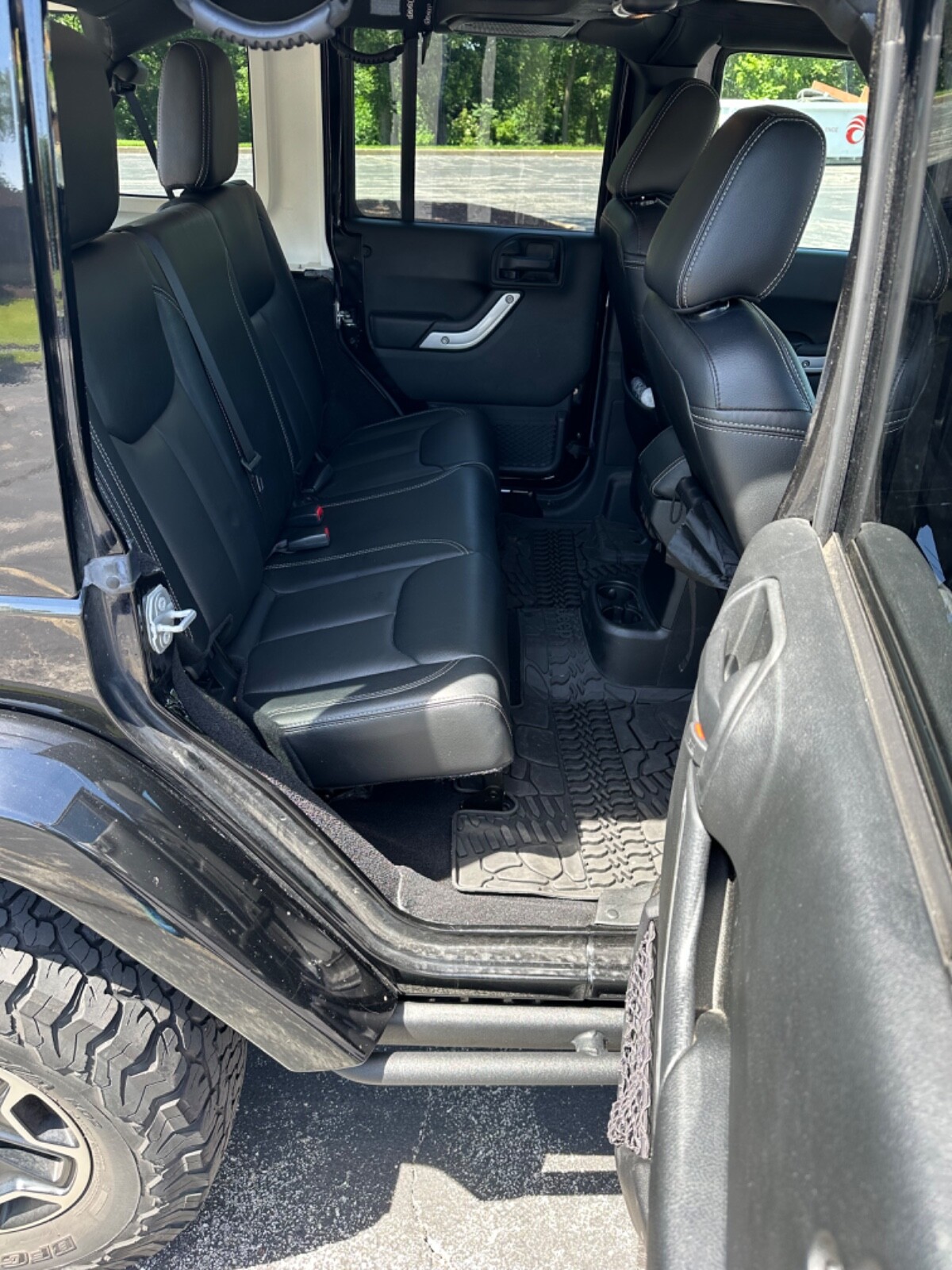 Black Jeep rubicon with trail tires. Fun to drive, 4 wheel is great for snow. A great car in general. All season trail tires with custom aluminum wheels. Not curbed. Spare tire has never been used. Has a tow package, skid plate, and set up for a winch as well.