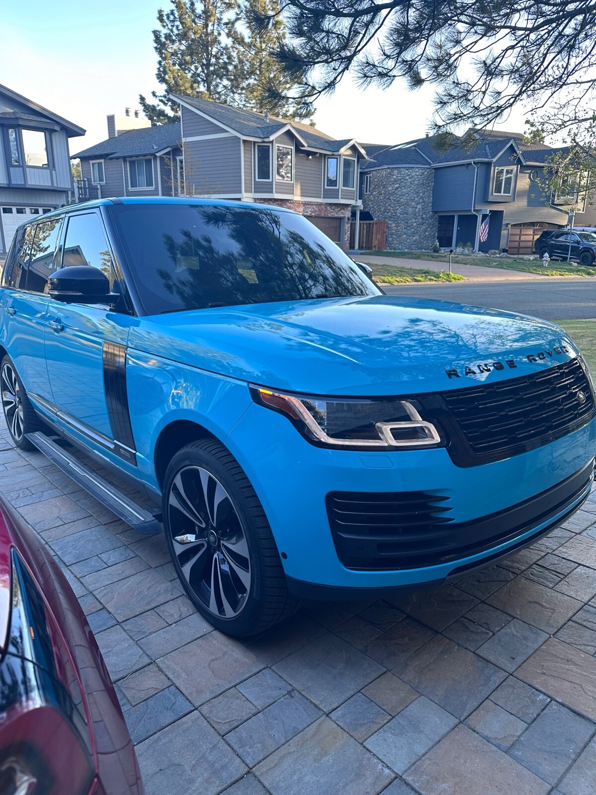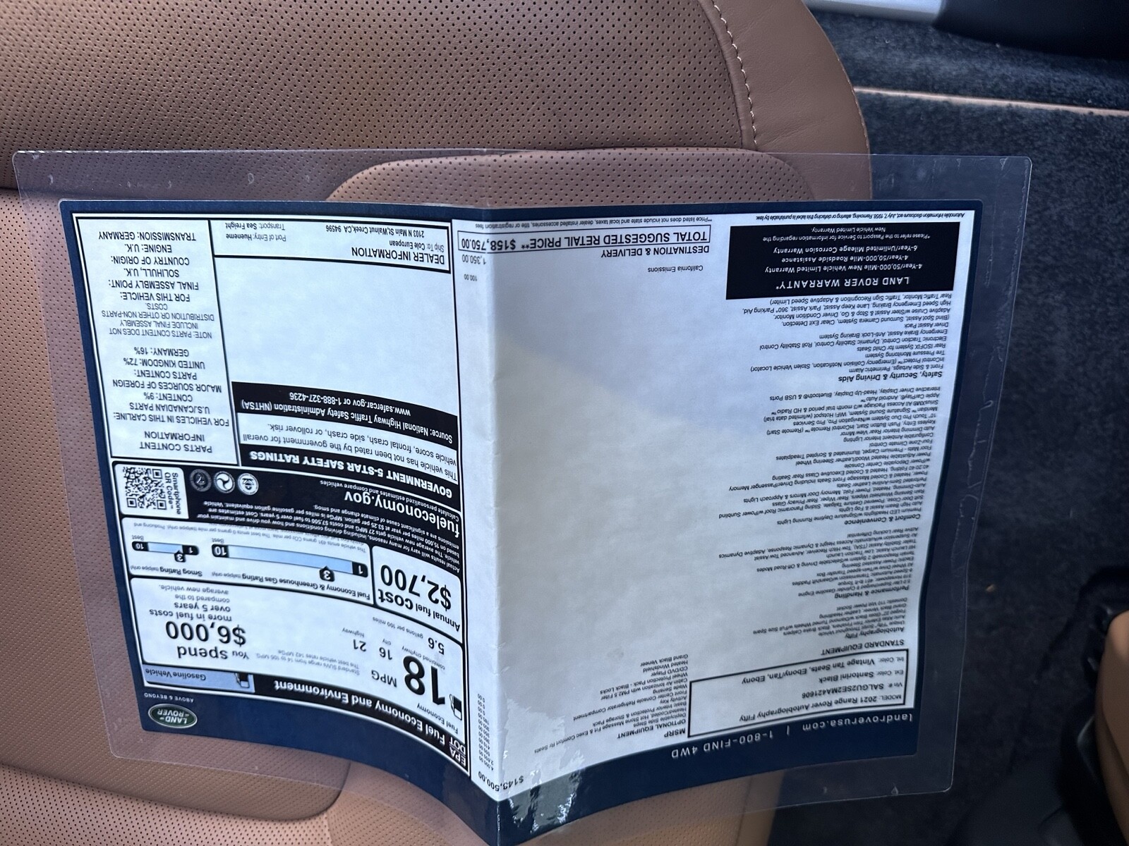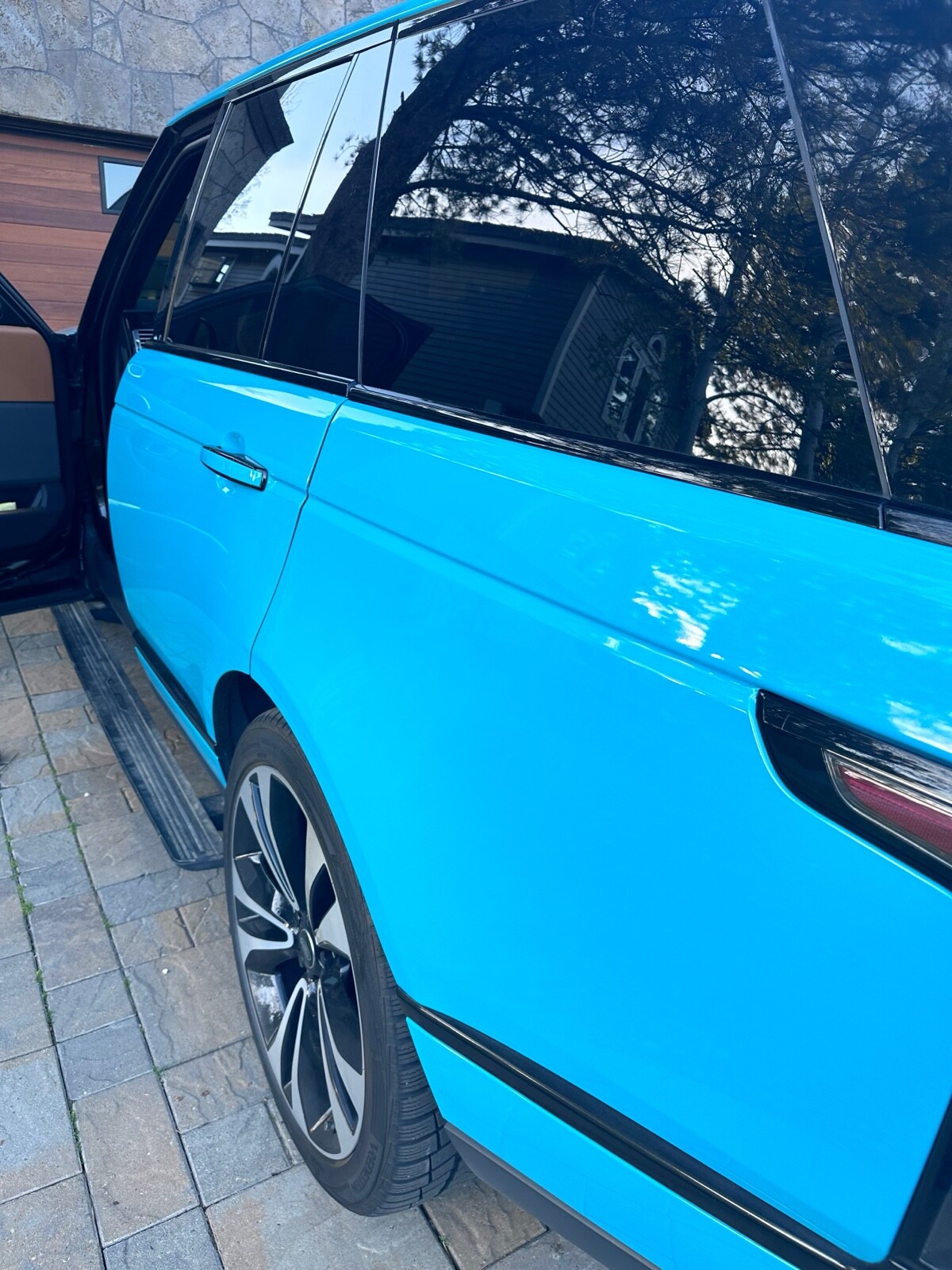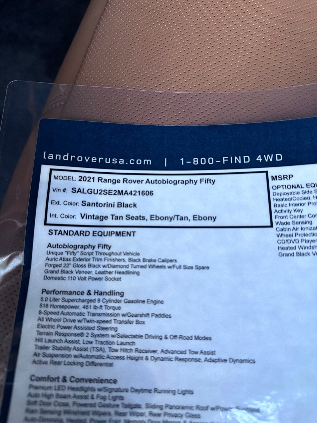 The Range Rover 50th Anniversary Edition is officially titled as the 2021 Range Rover Autobiography Fifty Edition. It builds upon the already-luxurious features of the Autobiography model. Bought at Cole European in 2021 off the showroom floor. Vehicle is wrapped in blue color, originally Santorini Black with Atlas trim, wrapped black as seen in photos. The original trim and paint of the car is completely sealed. Only 400 units of the 50th anniversary edition were brought to the United States, this is the only black on brown with Atlas trim in the United States.