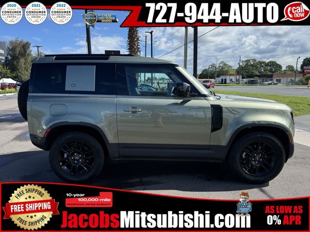 Defender 90 S, 2D Sport Utility, 2.0L Turbocharged, 8-Speed Automatic, 4WD, Pangea Green Metallic, Ebony w/Windsor Leather Seats, 11 Speakers, 14-Way Climate Electric Memory Seats, 4-Wheel Disc Brakes, 4.1 Axle Ratio, ABS brakes, Air Conditioning, Air Suspension Pack, Alloy wheels, AM/FM radio: SiriusXM, Apple CarPlay & Android Auto, Auto High-beam Headlights, Auto-dimming door mirrors, Auto-dimming Rear-View mirror, Automatic Headlight Levelling, Automatic temperature control, Basic Interior Protection & Storage Pack (DISC), Brake assist, Bumpers: body-color, Comfort & Convenience Pack, Compass, Delay-off headlights, Driver door bin, Driver vanity mirror, Dual front impact airbags, Dual front side impact airbags, Electronic Stability Control, Extended Leather Upgrade, Four wheel independent suspension, Front anti-roll bar, Front Bucket Seats, Front Center Armrest, Front dual zone A/C, Front reading lights, Fully automatic headlights, Garage door transmitter: HomeLink, Grained Leather Seat Trim, Heated door mirrors, Heated front seats, Illuminated entry, Leather Shift Knob, Leather steering wheel, Low tire pressure warning, Memory seat, Navigation System, Navigation system: Connected Navigation PIVI Pro, Occupant sensing airbag, Opening Panoramic Sunroof, Outside temperature display, Overhead airbag, Overhead console, Panic alarm, Passenger door bin, Passenger vanity mirror, Power door mirrors, Power driver seat, Power passenger seat, Power steering, Power windows, Premium Cabin Lighting, Premium LED Headlights w/Signature DRL, Radio data system, Radio: 400W 11 Speaker Meridian Sound System, Rain sensing wipers, Rear anti-roll bar, Rear fog lights, Rear reading lights, Rear seat center armrest, Rear window defroster, Rear window wiper, Refrigerated Center Console, Remote keyless entry, Roof rack: rails only, Security system, Speed control, Speed-sensing steering, Speed-Sensitive Wipers, Split folding rear seat, Steering wheel mounted audio controls, Tachometer, Telescoping steering wheel, Tilt steering wheel, Traction control, Trip computer, Twin Front Cupholders w/Cover, Variably intermittent wipers, Weather band radio, Wheels: 19 Gloss Sparkle Silver Style 6010. CARFAX One-Owner. Clean CARFAX.Pangea Green Metallic 2023 Land Rover Defender 90 S 4WD 2.0L TurbochargedHere at Jacobs Mitsubishi our goal is to make you a customer for life. We want you to have the most enjoyable car buying experience possible . All prices displayed do not include additional accessories or fees and costs of closing including any government, additional packages applied to vehicle, including but not limited to Jacobs Care, Reconditioning fees,federal, dealer fees, taxes, registration, dealer document, cost of accessories, emissions testing, or any other fees. All prices, specifications and availability are subject to change at any time, without notice. Not all applicants will be approved, offers may change at any time and may not reflect accuracy online, see dealer for most updated offers. Not all offers can be combined. Applicant may qualify for partial discount displayed by financing with another approved lender through and provided by Jacobs Mitsubishi. Contact dealer for most current information, availability, or details.