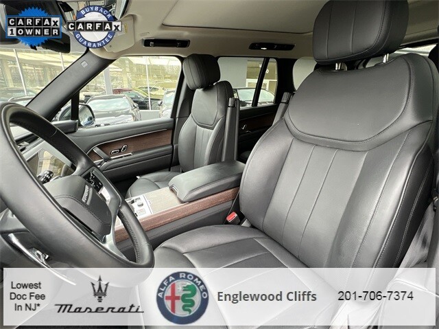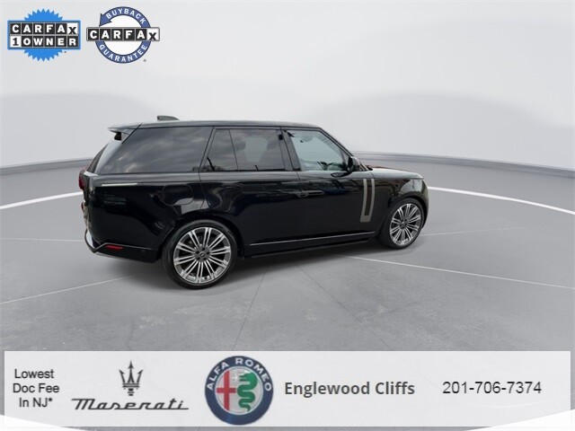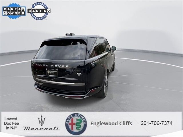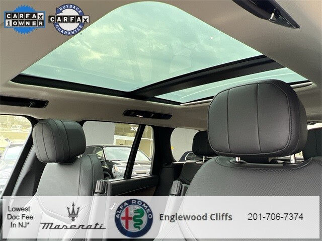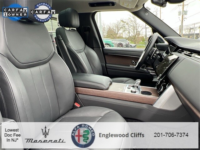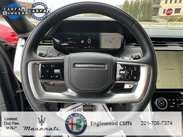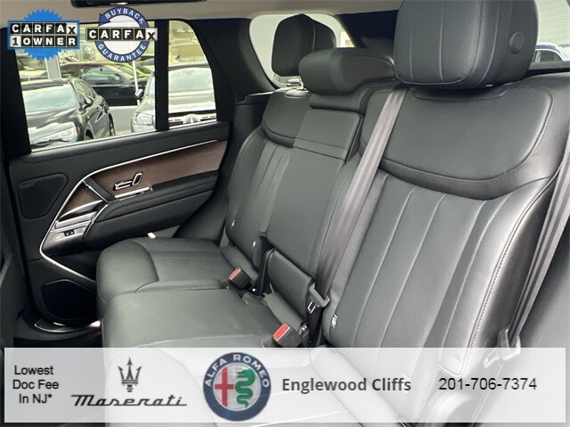 This Range Rover SE is nicely equipped with Hot Climate Pack (Cabin Air Purification Pro and Front Center Console Refrigerator Compartment), Premium Upgrade Interior Pack (Illuminated Metal Treadplates w/Brand-Name Script, Laminated Front & Rear Side Glass, SV Bespoke Carpet Mats, and SV Bespoke Full Extended Leather Upgrade), Technology Pack (ClearSight Interior Rear View Mirror, Domestic Plug Socket, and Head-Up Display), Ebony/Ebony Leather, 15 Speakers, 20-Way Heated Electric Front Bucket Seats, Adaptive suspension, AM/FM radio: SiriusXM w/360L, Auto High-beam Headlights, Auto tilt-away steering wheel, Auto-dimming door mirrors, Auto-dimming Rear-View mirror, Auto-leveling suspension, Automatic temperature control, Brake assist, Compass, Door auto-latch, Driver's Seat Mounted Armrest, Electronic Stability Control, Exterior Parking Camera Rear, Four wheel independent suspension, Front dual zone A/C, Fully automatic headlights, Garage door transmitter: HomeLink, Head restraints memory, Headlight cleaning, Heated door mirrors, Heated front seats, Heated rear seats, Illuminated entry, Memory seat, Navigation system: Pivi Pro Connected Navigation, Outside temperature display, Overhead console, Panic alarm, Perforated Windsor Leather Seat Trim, Power door mirrors, Power driver seat, Power moonroof, Power passenger seat, Power steering, Power windows, Premium audio system: Meridian, Radio data system, Radio: Meridian Sound System, Rain sensing wipers, Rear air conditioning, Rear fog lights, Rear seat center armrest, Rear window defroster, Rear window wiper, Remote keyless entry, Security system, Speed control, Speed-sensing steering, Steering wheel memory, Steering wheel mounted A/C controls, Steering wheel mounted audio controls, Traction control, Turn signal indicator mirrors, Weather band radio, Wireless Apple CarPlay/Wireless Android Auto, 3.3 Axle Ratio, 4-Wheel Disc Brakes, ABS brakes, Air Conditioning, Alloy wheels, Anti-whiplash front head restraints, Bumpers: body-color, Delay-off headlights, Driver door bin, Driver vanity mirror, Dual front impact airbags, Dual front side impact airbags