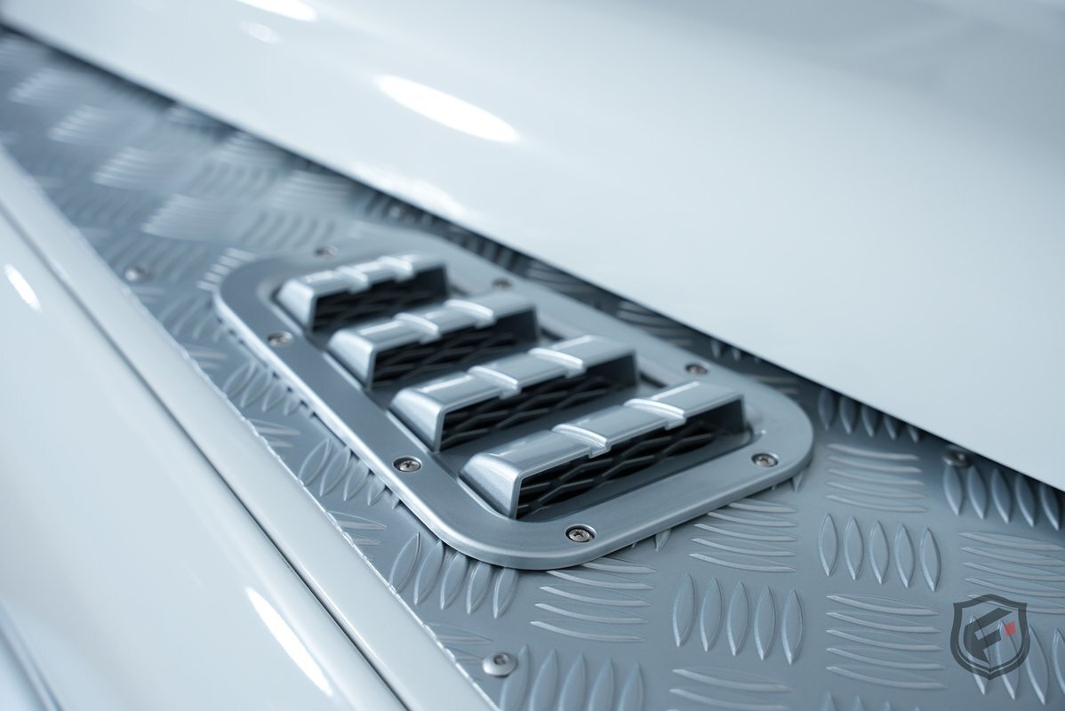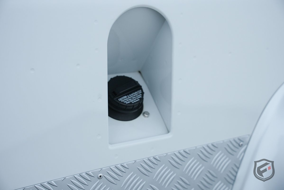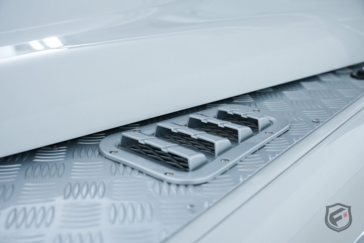 The vehicle comes painted in a full gloss white with silver and black accents.