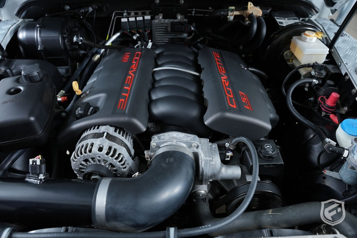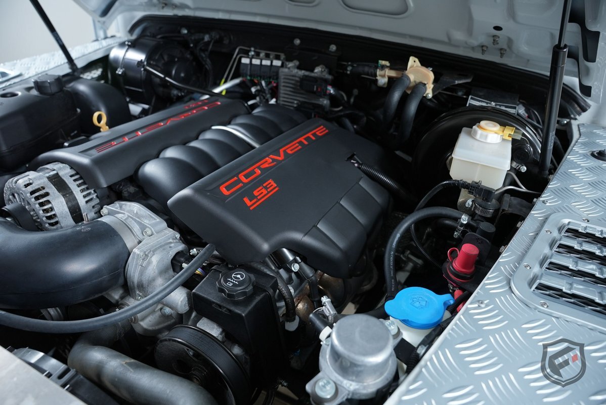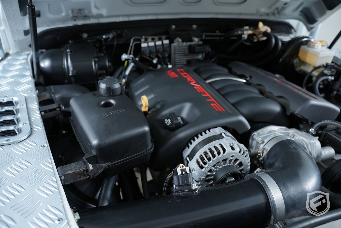 It is powered by a 6.2 Liter 565 Horse powered LS3 V8 Engine with a 6 Speed Automatic Transmission. Full 4 Point Roll Cage, Silver Metal Steering Guard, Fox Racing Shocks, 18 Inch Special Saw-tooth Wheels w/ BFGoodrich All Terrain Tires, LED Light Bar, LED Work Lights, Kahn Style Steering Wheel, American Series Gauges, Heated & Ventilated Front Seats, 60/40 Split Mid Row, 4 Jump Seats in the Rear, JL Audio Sound System, Wireless Charging, and more! This vehicle is a one-owner car that has been meticulously cared for. It is in like new condition both inside and out.