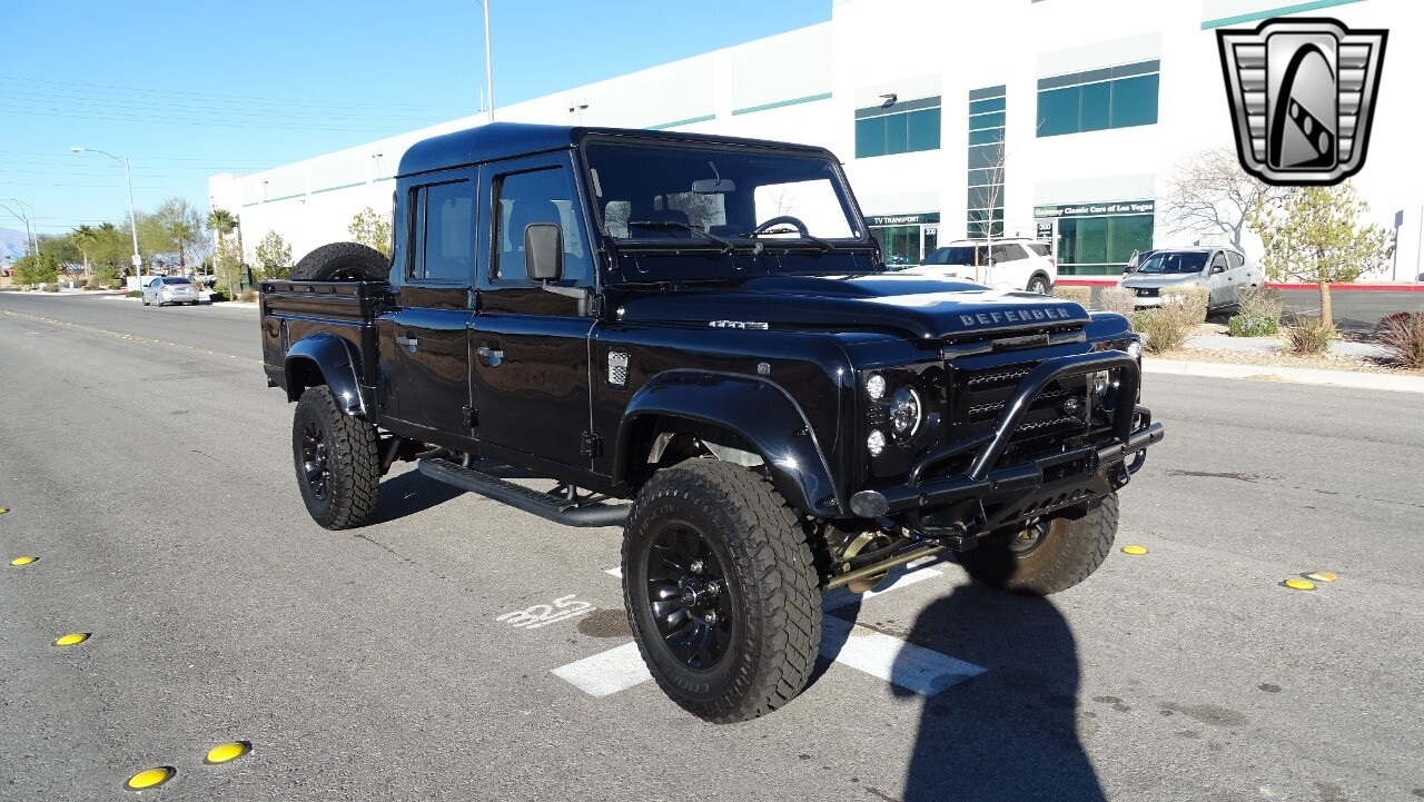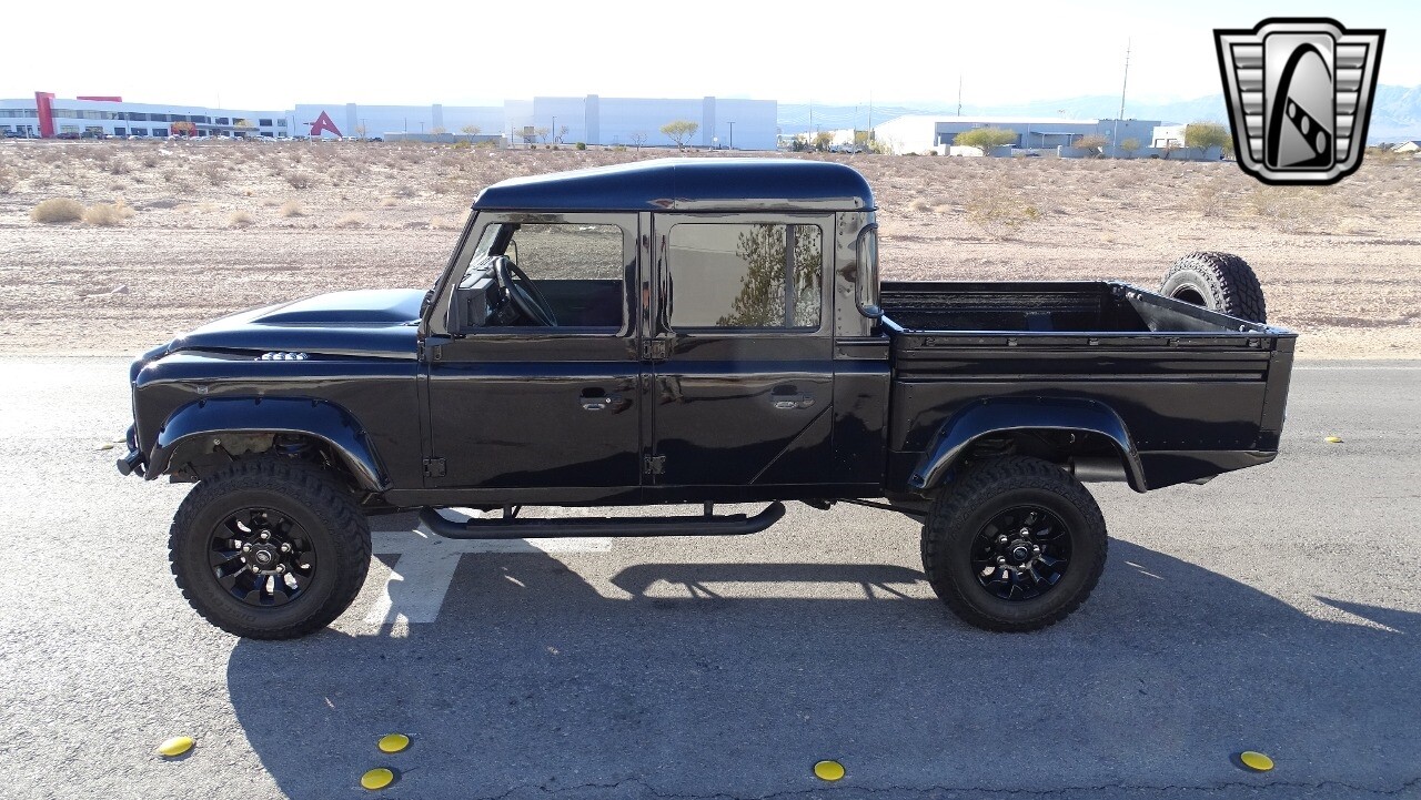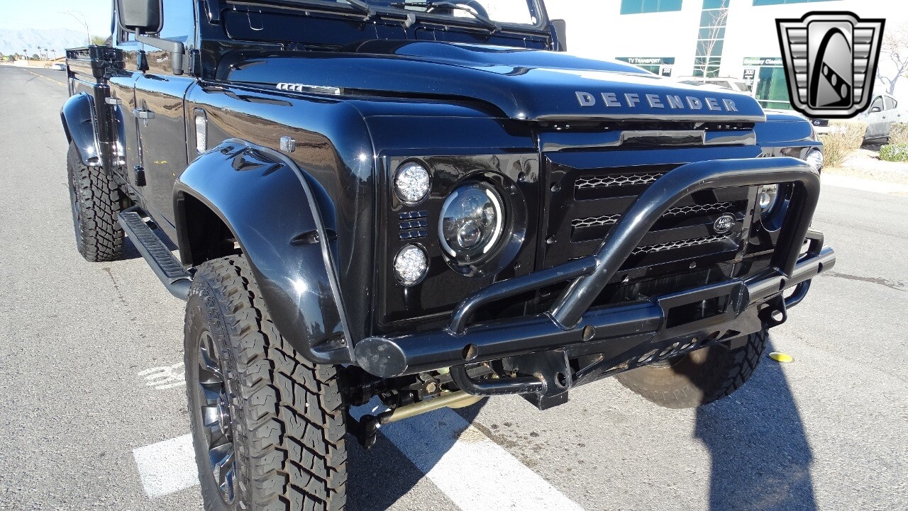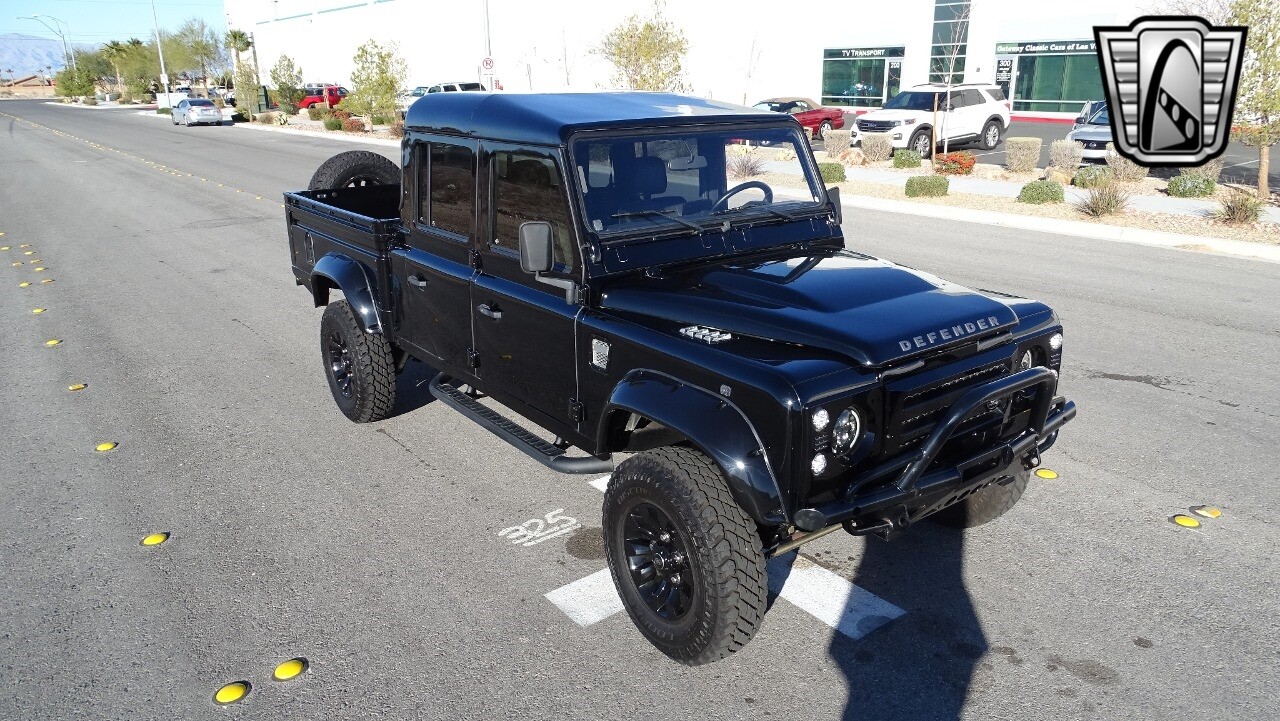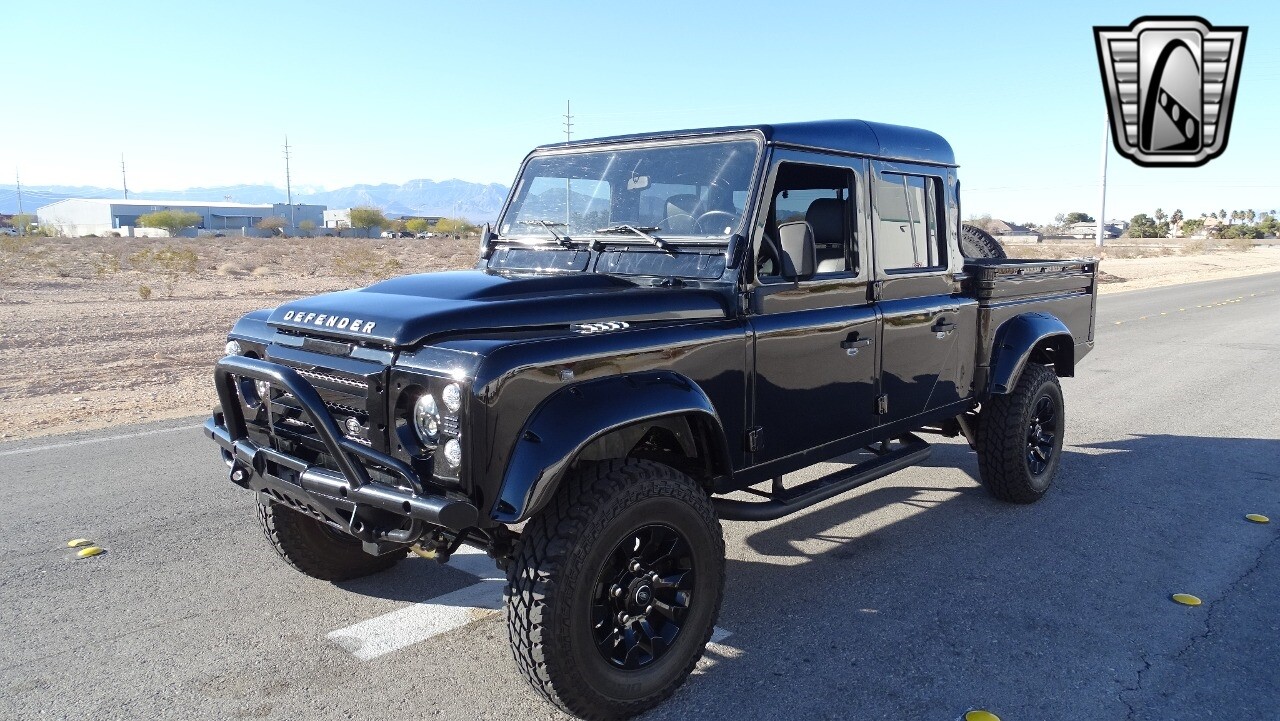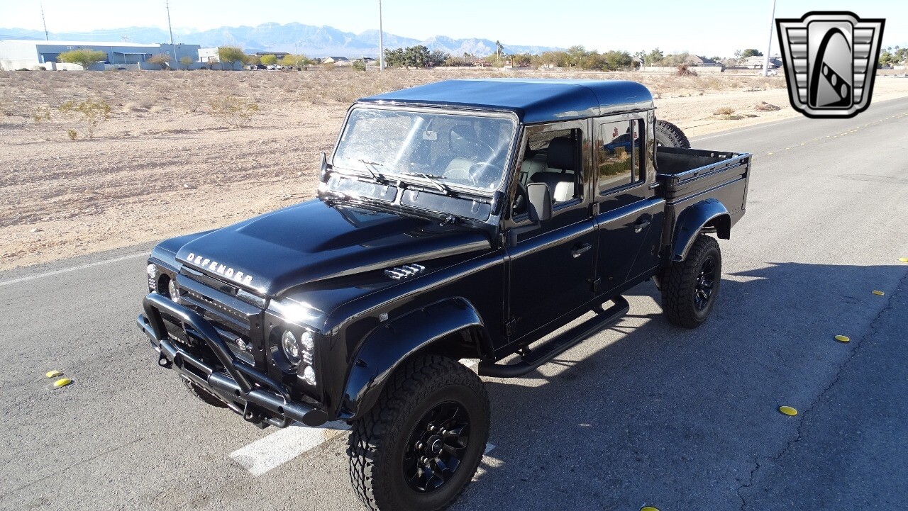 Gateway Classic Cars of Las Vegas presents this 1994 Land Rover Defender 4 door pickup. Finished in Gloss Black with a Black interior this cool Defender really stands out. Powered by a diesel engine, that the owner states has been recently rebuilt. The owner states that the vehicle was stripped down to the chassis, sandblasted and built back with new parts. The owner states that the suspension, steering damper, steering wheel, halo headlamps, and rims have been upgraded, also the complete body has been repainted. The owner also states that a modern Android platform Bluetooth audio system with navigation capabilities has been installed..