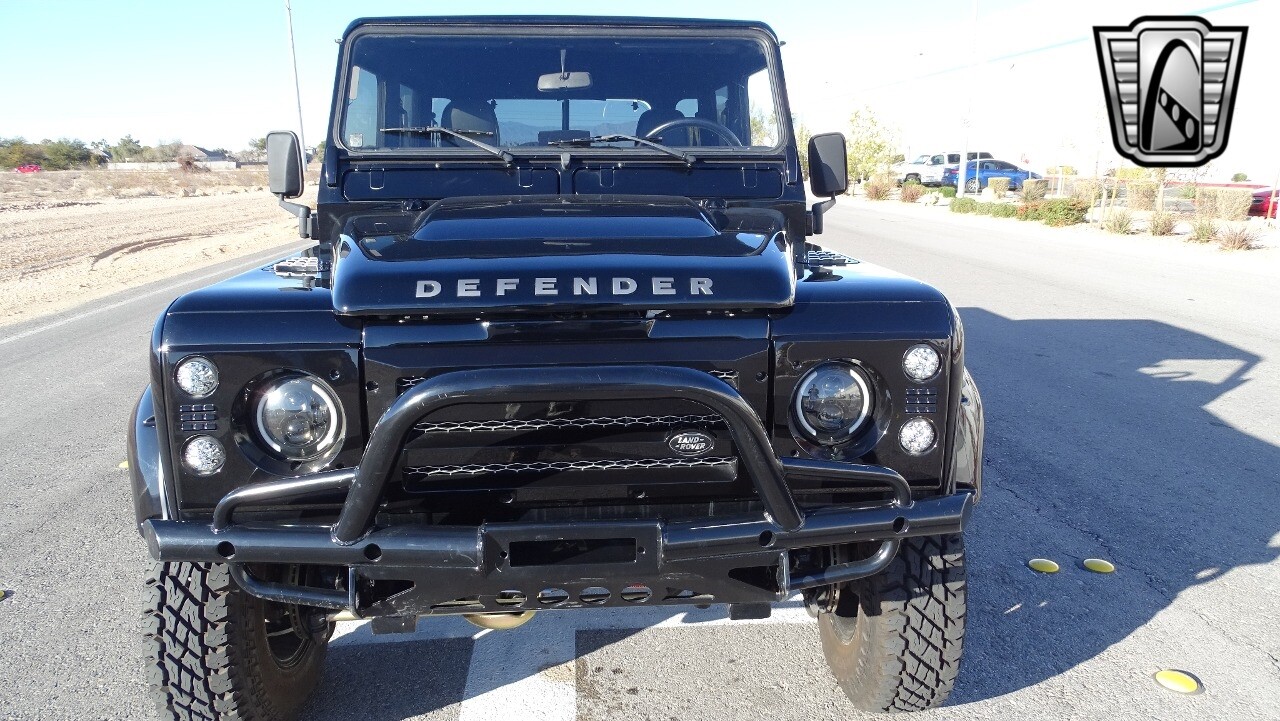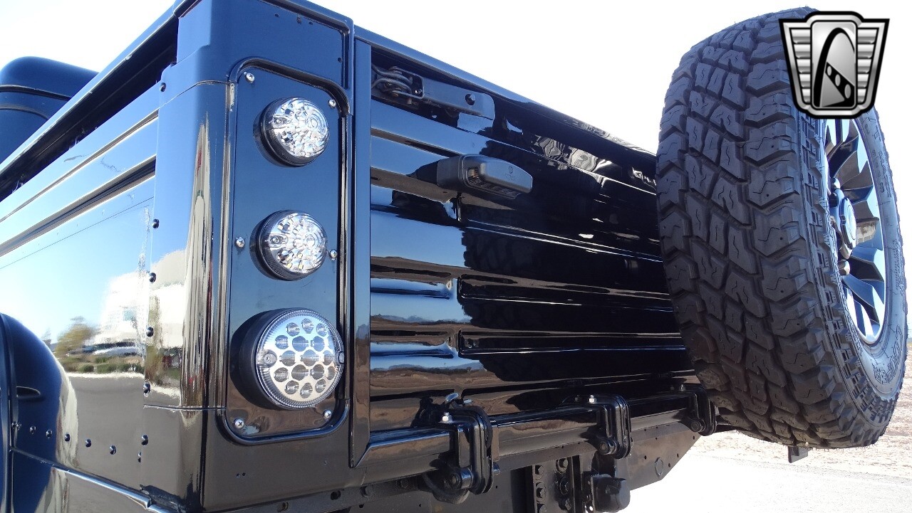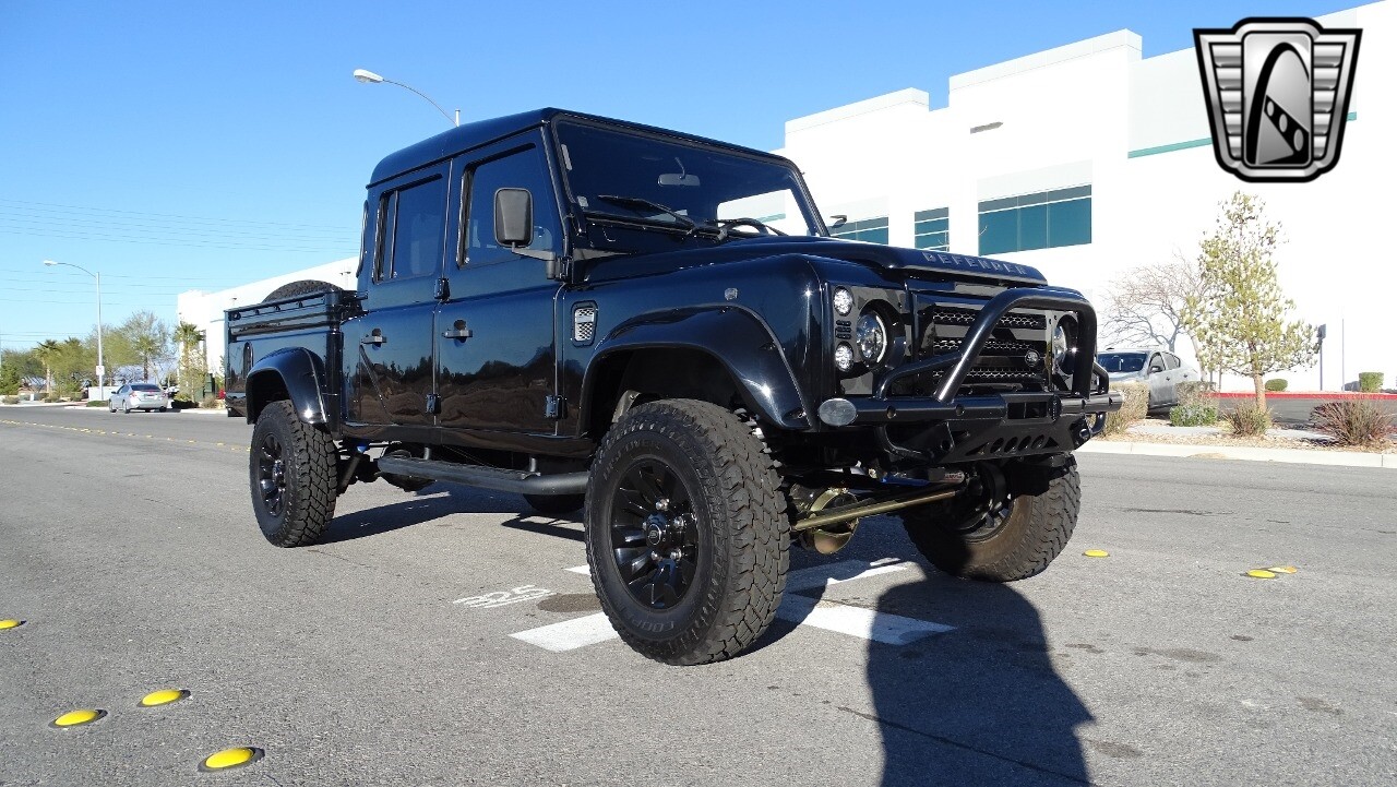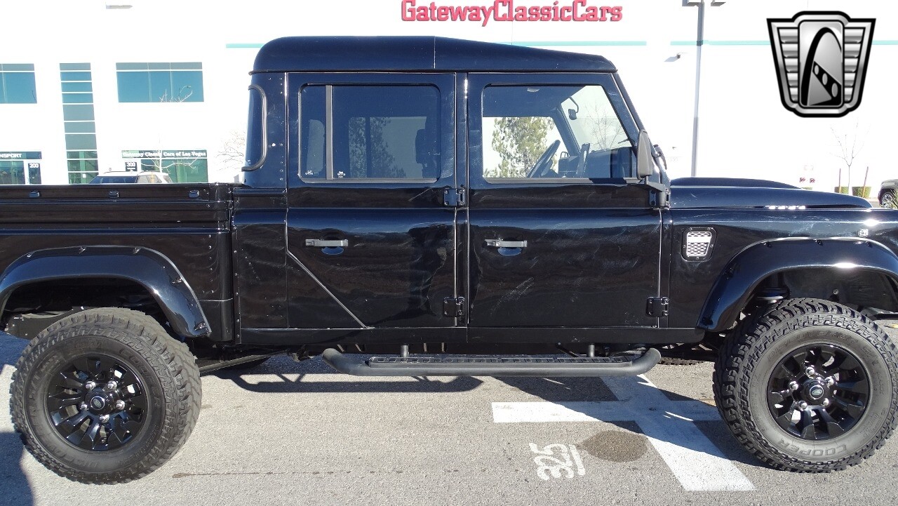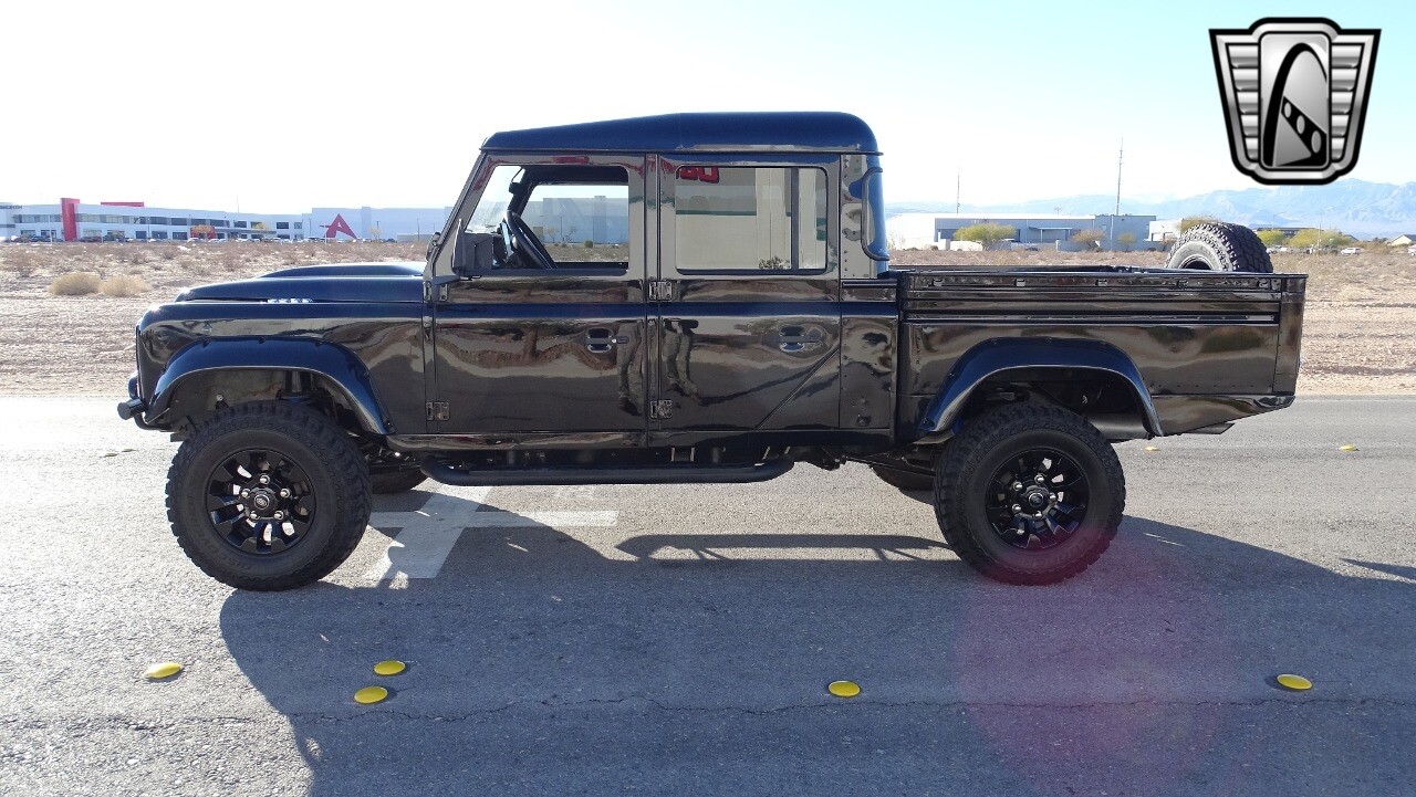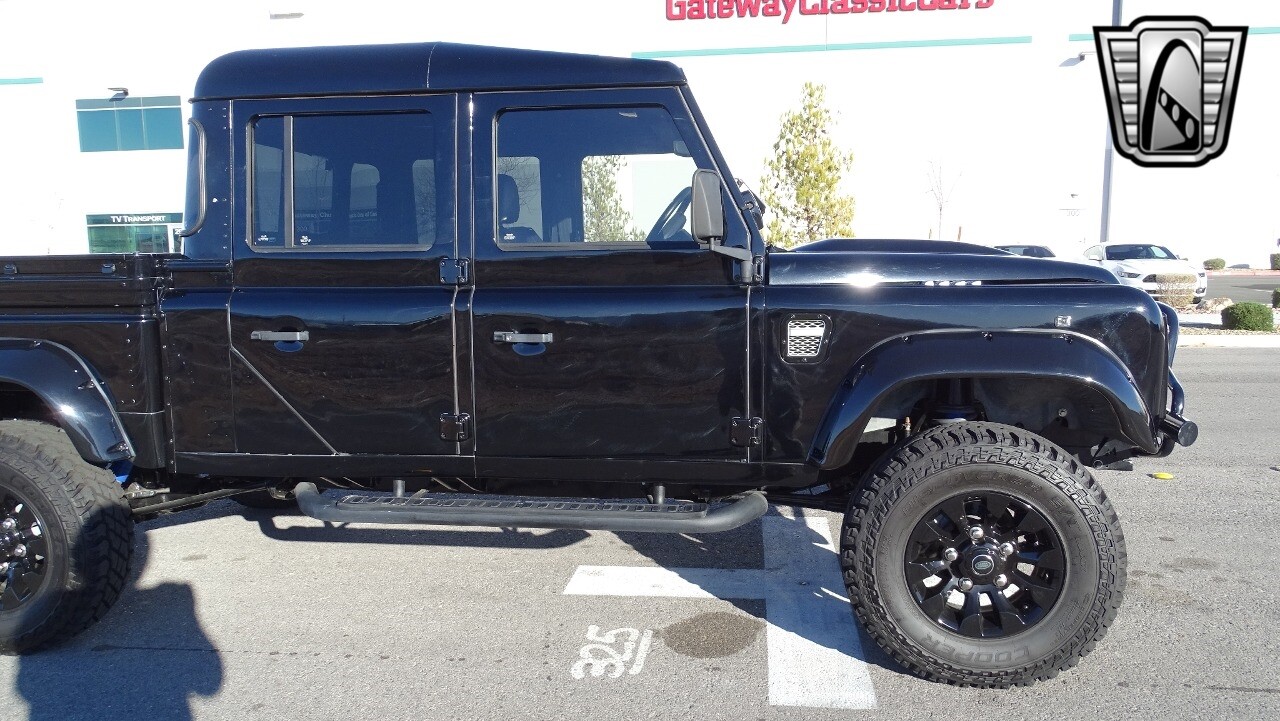 Gateway Classic Cars of Las Vegas presents this 1994 Land Rover Defender 4 door pickup. Finished in Gloss Black with a Black interior this cool Defender really stands out. Powered by a diesel engine, that the owner states has been recently rebuilt. The owner states that the vehicle was stripped down to the chassis, sandblasted and built back with new parts. The owner states that the suspension, steering damper, steering wheel, halo headlamps, and rims have been upgraded, also the complete body has been repainted. The owner also states that a modern Android platform Bluetooth audio system with navigation capabilities has been installed..