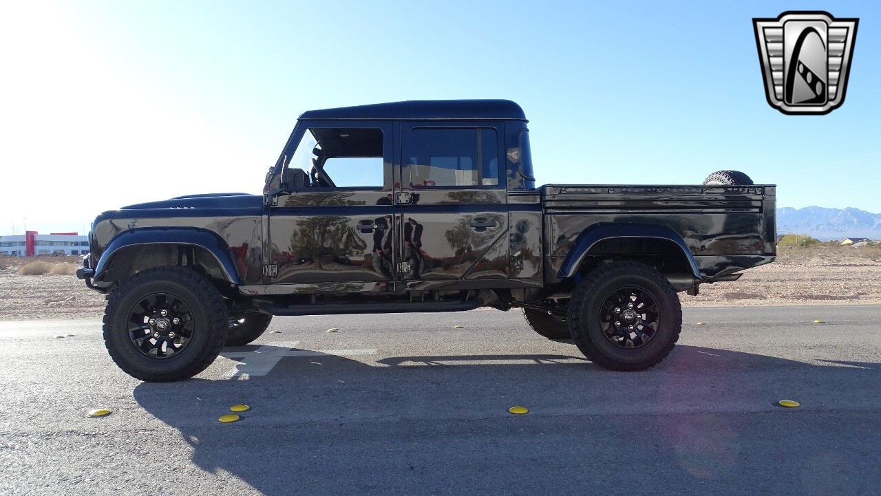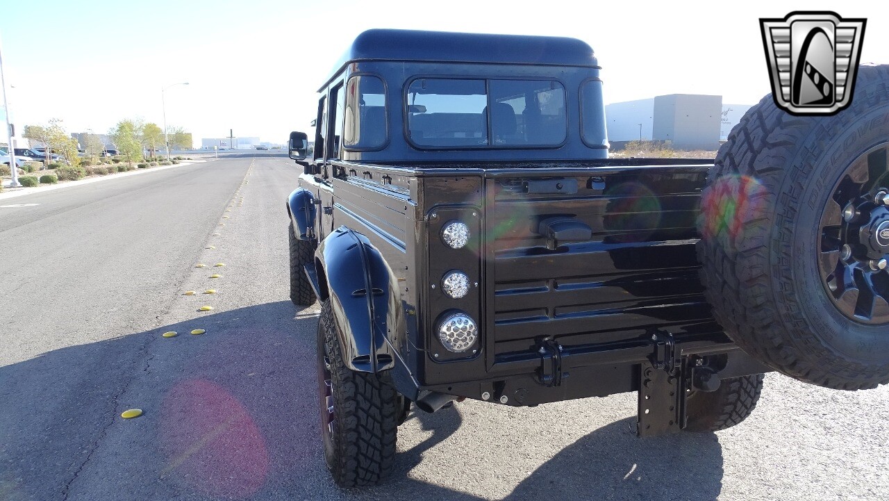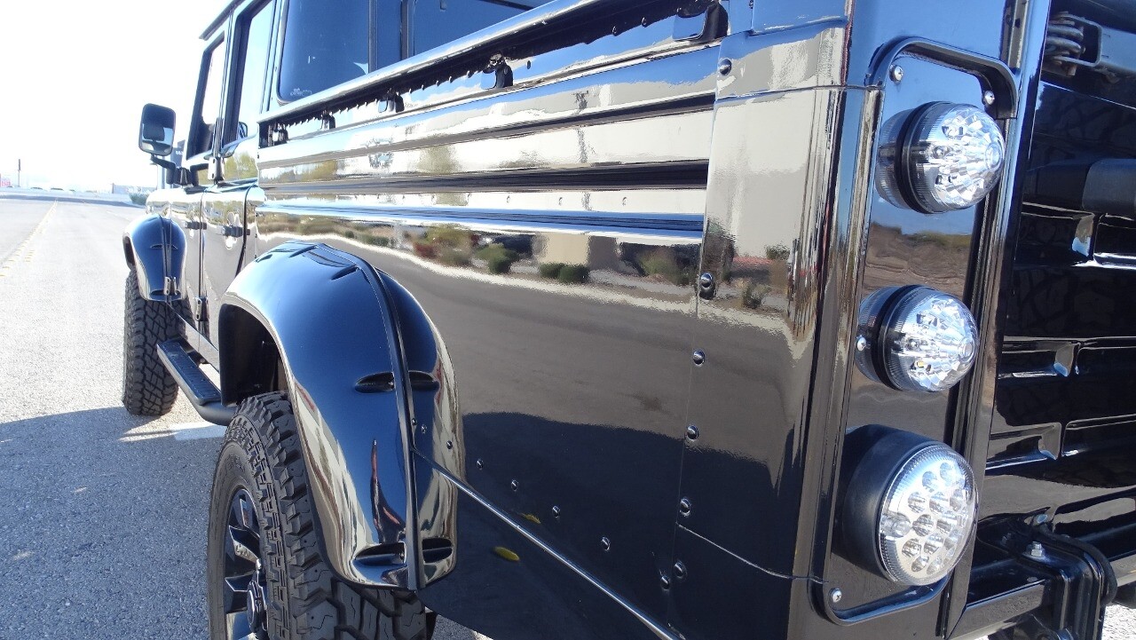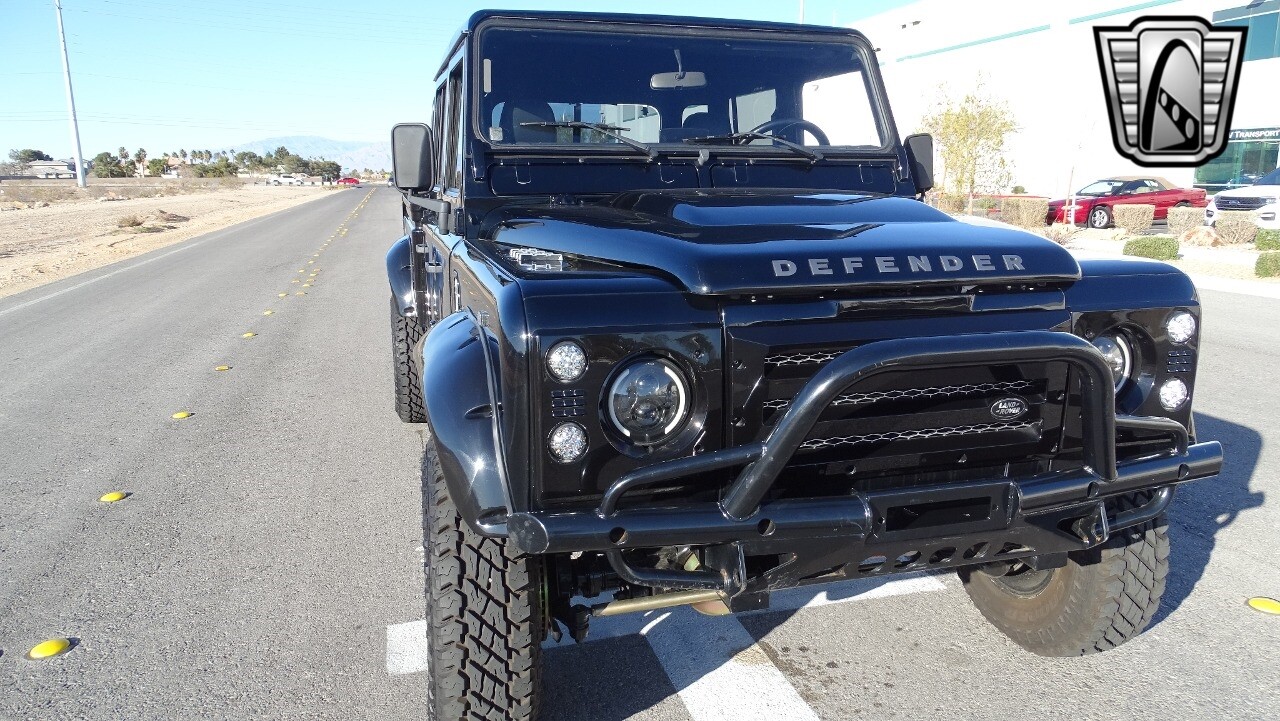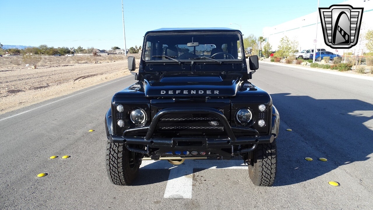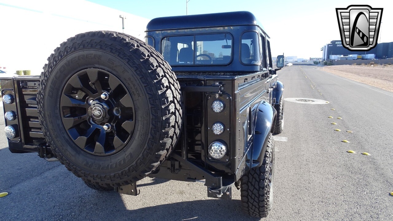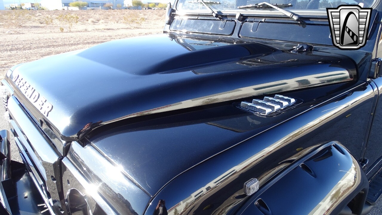 Gateway Classic Cars of Las Vegas presents this 1994 Land Rover Defender 4 door pickup. Finished in Gloss Black with a Black interior this cool Defender really stands out. Powered by a diesel engine, that the owner states has been recently rebuilt. The owner states that the vehicle was stripped down to the chassis, sandblasted and built back with new parts. The owner states that the suspension, steering damper, steering wheel, halo headlamps, and rims have been upgraded, also the complete body has been repainted. The owner also states that a modern Android platform Bluetooth audio system with navigation capabilities has been installed..