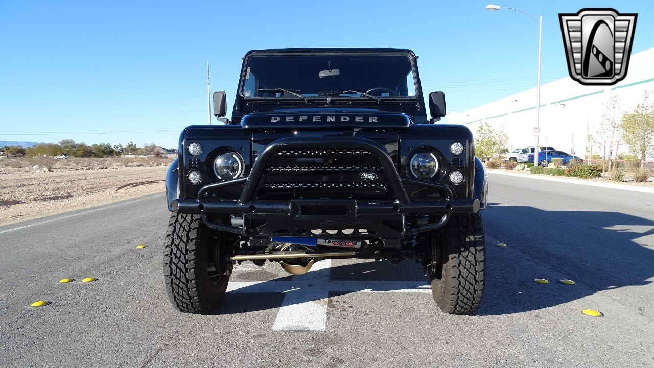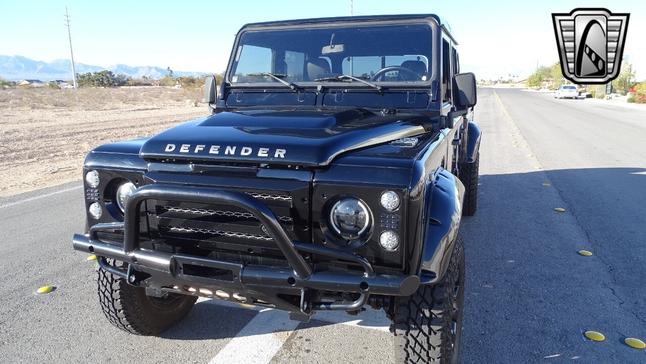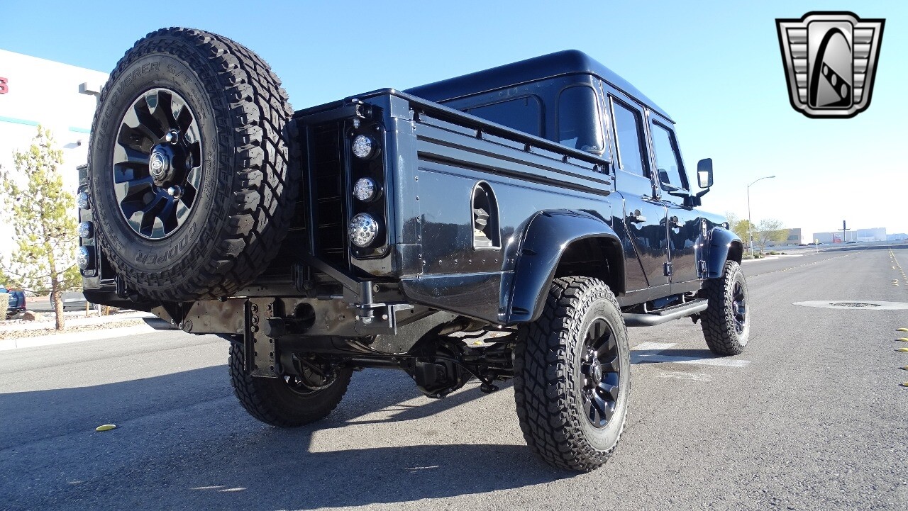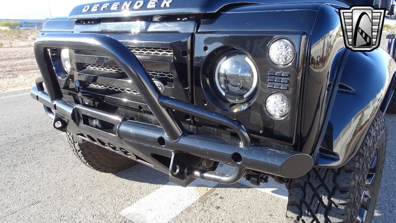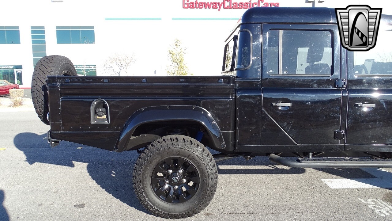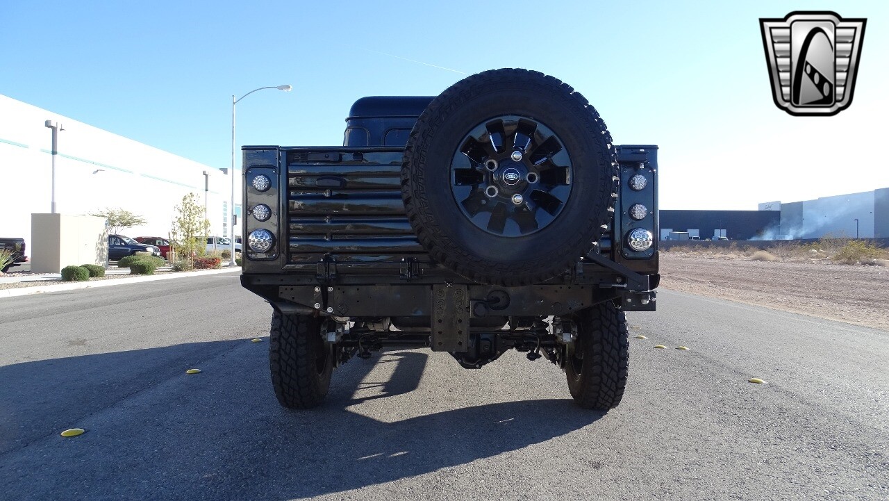Gateway Classic Cars of Las Vegas presents this 1994 Land Rover Defender 4 door pickup. Finished in Gloss Black with a Black interior this cool Defender really stands out. Powered by a diesel engine, that the owner states has been recently rebuilt. The owner states that the vehicle was stripped down to the chassis, sandblasted and built back with new parts. The owner states that the suspension, steering damper, steering wheel, halo headlamps, and rims have been upgraded, also the complete body has been repainted. The owner also states that a modern Android platform Bluetooth audio system with navigation capabilities has been installed..