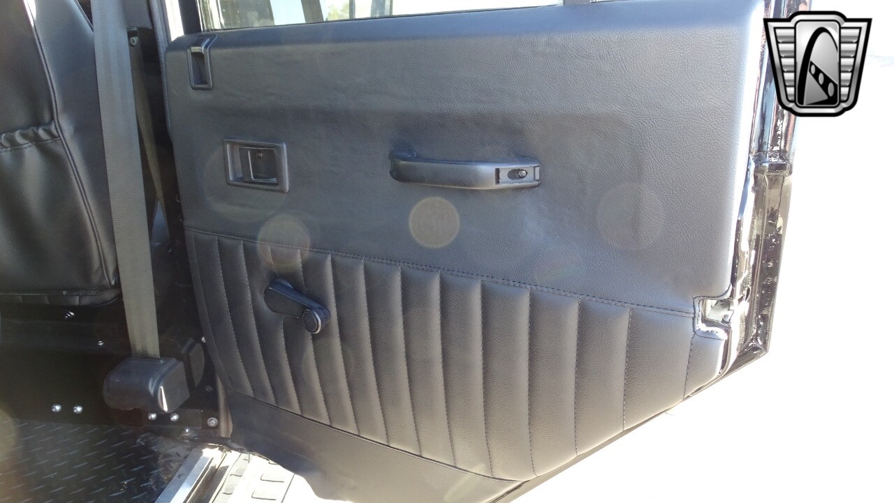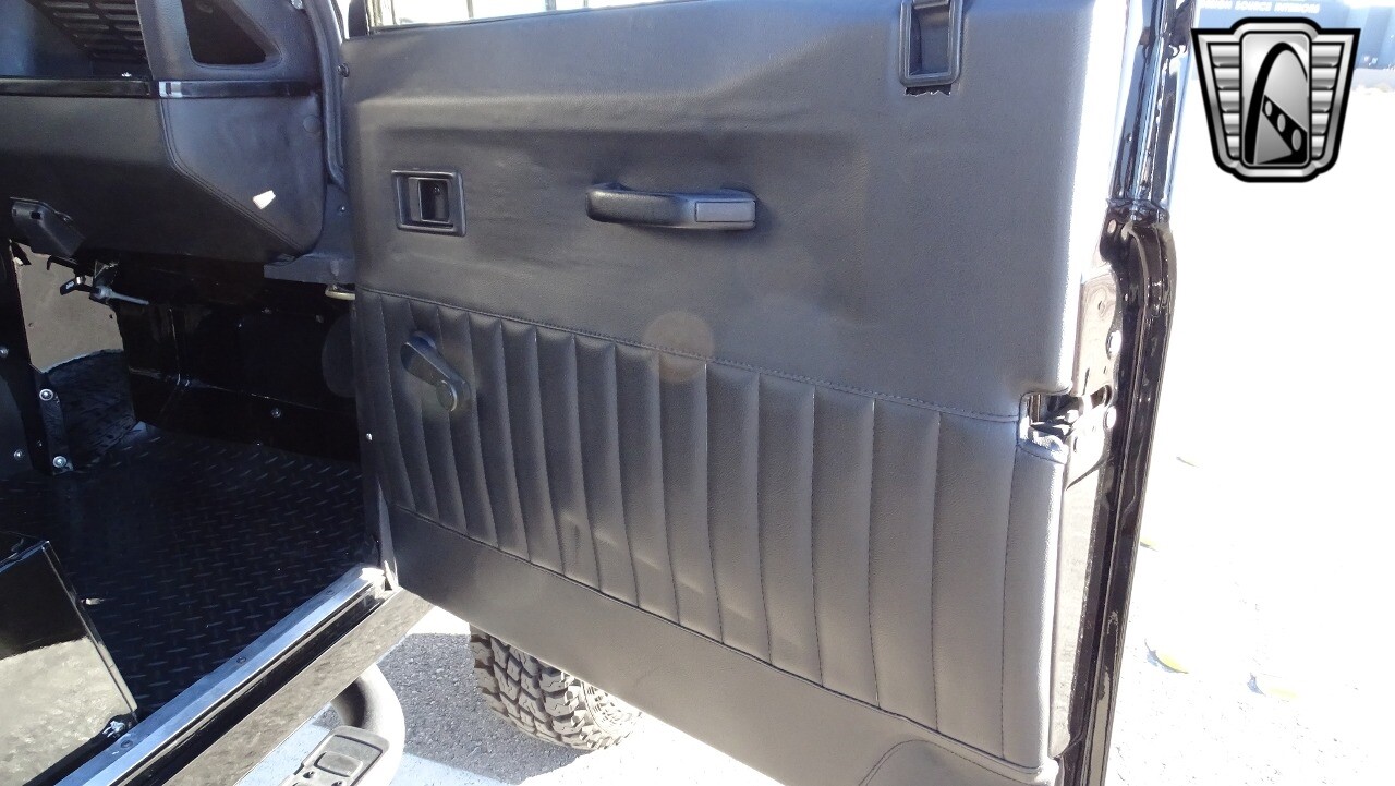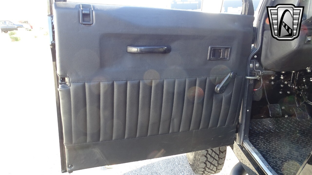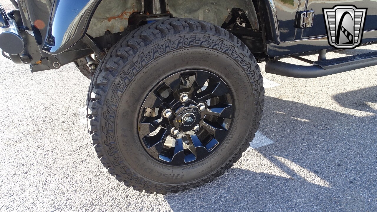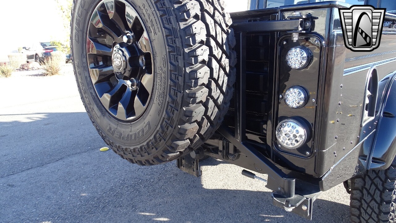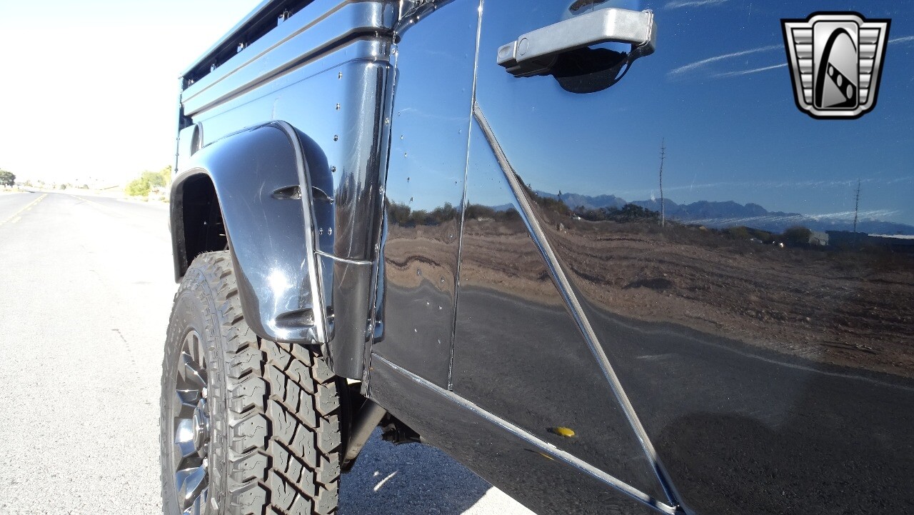 Gateway Classic Cars of Las Vegas presents this 1994 Land Rover Defender 4 door pickup. Finished in Gloss Black with a Black interior this cool Defender really stands out. Powered by a diesel engine, that the owner states has been recently rebuilt. The owner states that the vehicle was stripped down to the chassis, sandblasted and built back with new parts. The owner states that the suspension, steering damper, steering wheel, halo headlamps, and rims have been upgraded, also the complete body has been repainted. The owner also states that a modern Android platform Bluetooth audio system with navigation capabilities has been installed..