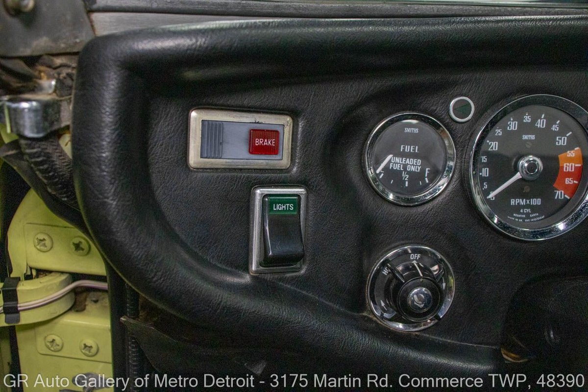 GR Auto Gallery is pleased to present this all-original, one-owner, 1976 MG MGB for your consideration. This charming roadster comes in a striking Chartreuse Yellow exterior over a sleek black interior. Under the hood lies a 1.8L 4 cylinder engine, paired with a smooth 4-speed manual transmission. With only 10,138 original miles on the odometer, this MGB has been meticulously maintained by its original owner since it was new. Recent updates include a new battery, starter, in 2022. Features include a manual top, manual windows, AM/FM stereo, manual choke, and more. This iconic British sports car is a true gem that is ready to hit the open road. Drive this one out of our showroom or have us assist with shipping it to you anywhere in the United States! Don't hesitate to call us with any questions or for more information.