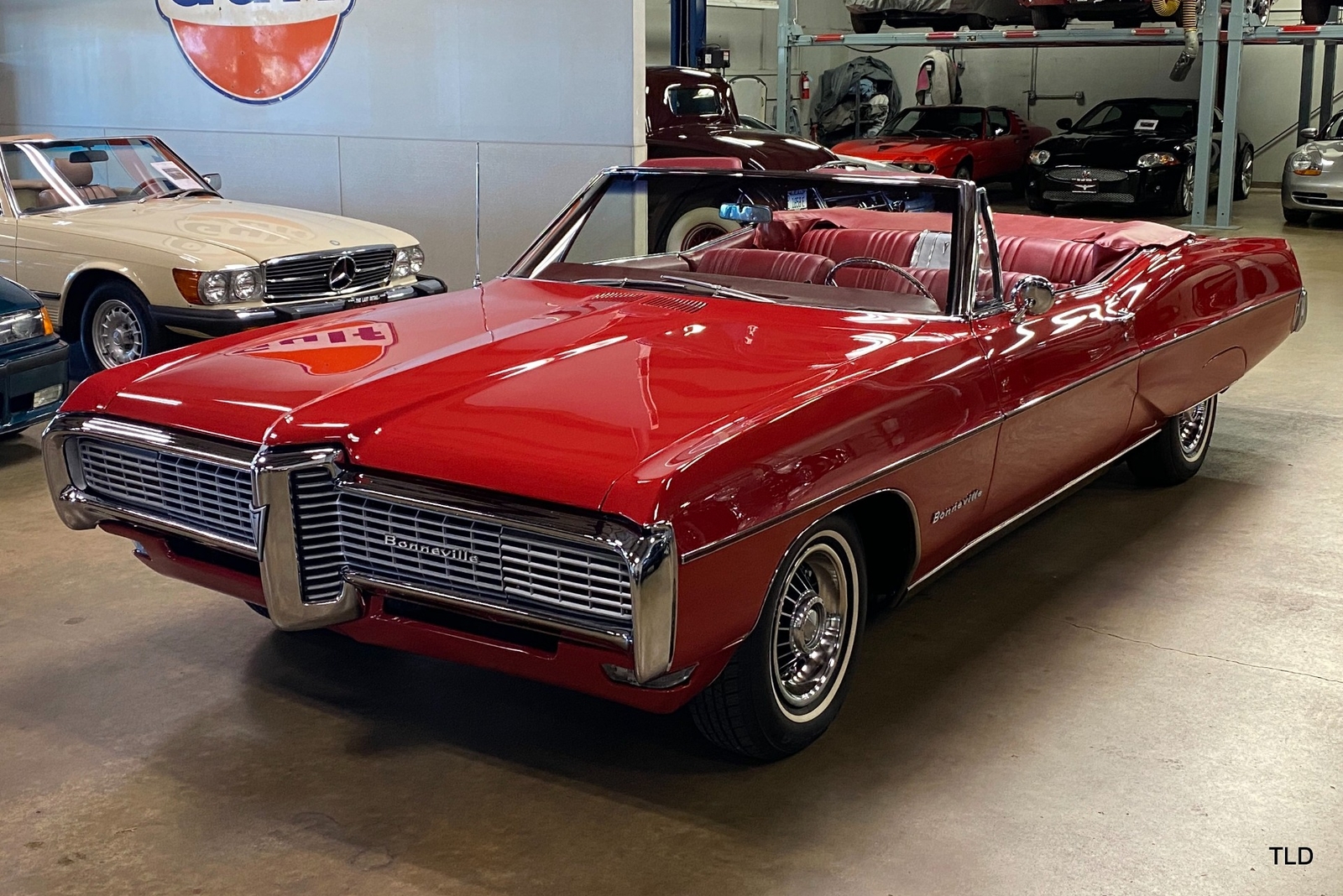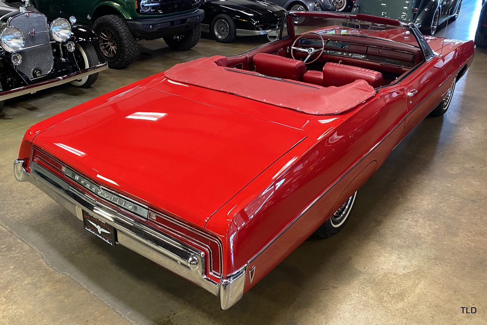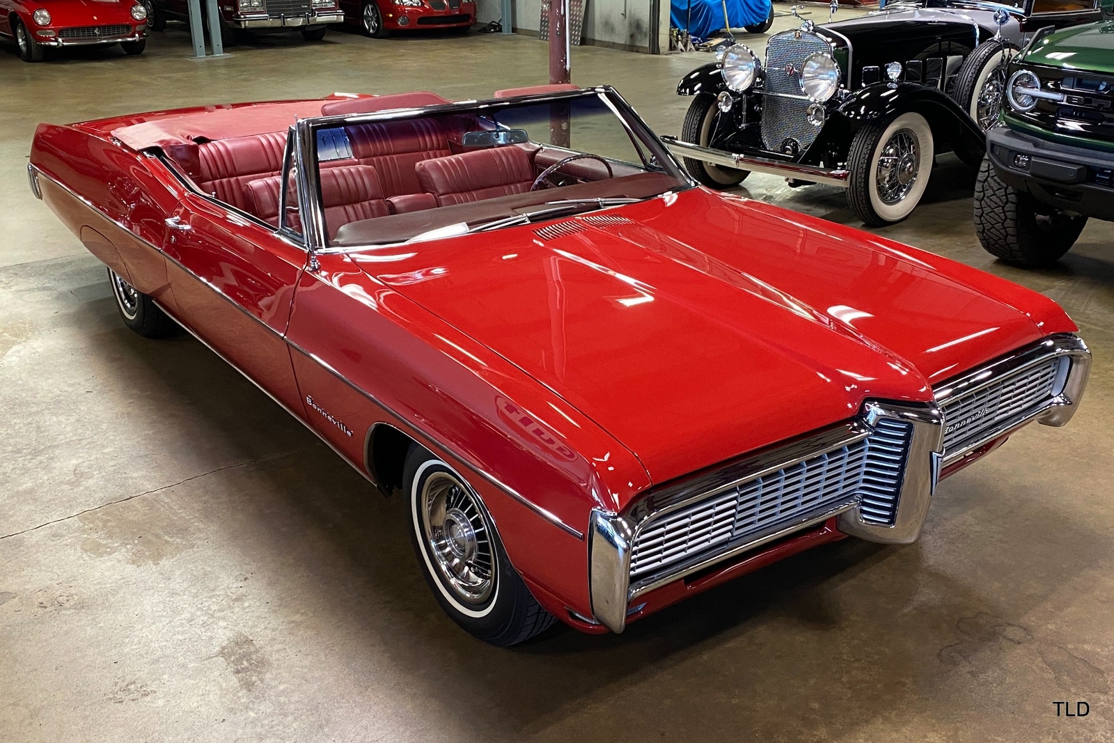 Quite rare today as 1 of 7,358 examples produced, this 1968 Pontiac Bonneville Convertible of a fabulous offering in its factory-specified Solar Red paint finish, complemented by a Red interior and Parchment convertible top. Remaining in highly original condition, the Bonneville is a two-owner car from new and the odometer reads under 10,900 miles. Power is delivered by the 340-horsepower, 4-barrel 400 CI Bonneville V-8 engine, rebuilt and bored 0.030 over. A column-shifted automatic transmission delivers the power.