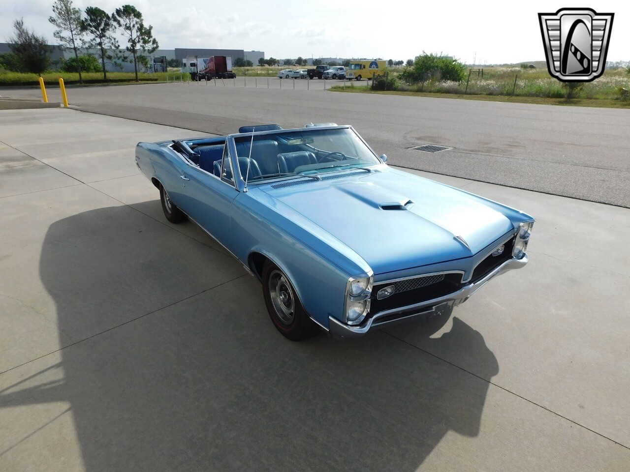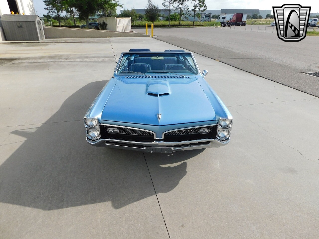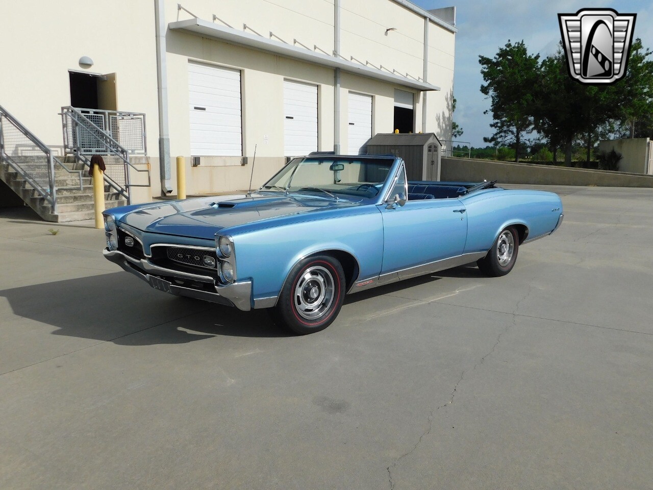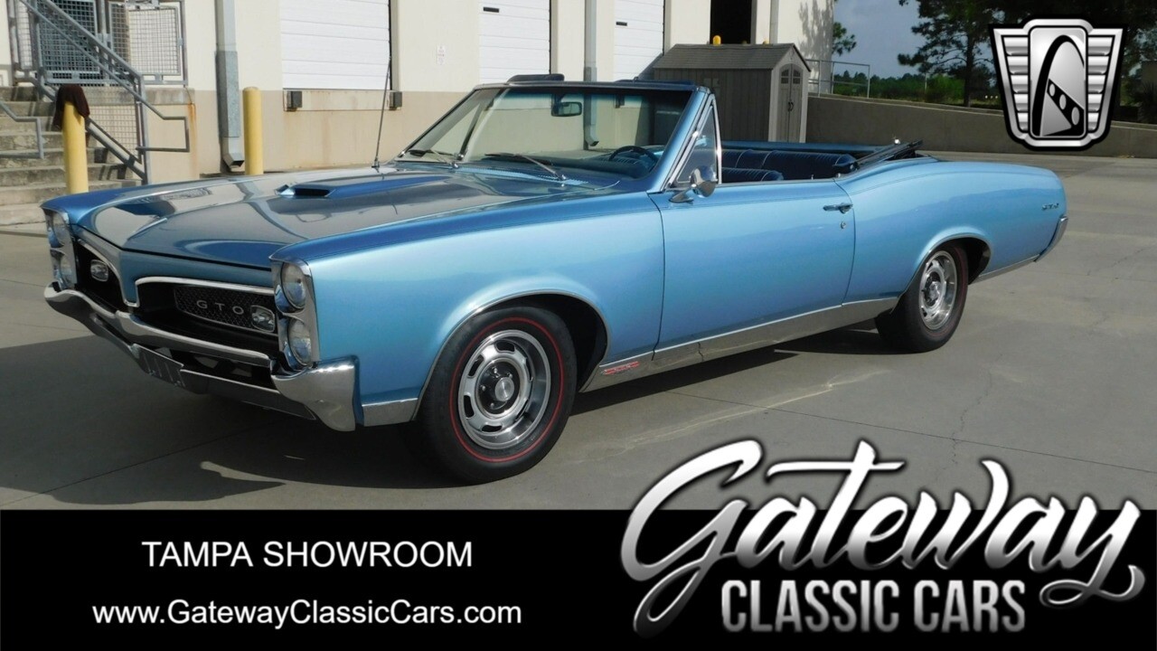 Gateway Classic Cars of Tampa is proud to present this striking 1967 Pontiac GTO! The GTO was a pace setter of the 1960s when it came to the youth market and performance. From head turning styling to exhilarating power the GTO was the bee's knees. This example is resplendent in light blue over blue interior while sitting on Pontiac Rally I wheels wrapped in redline tires, with a rip free, black convertible roof. A four bbl carburetor feeds a 400 CI V8 engine paired with a 4-speed manual transmission, for that proper GTO experience. Once underway the AF/FM radio plays your favorite tunes and the compliment of factory and optional gauges ensures you're well informed of this Tiger's health and performance. The Pontiac GTO is a testament to the golden age of American muscle cars, offering an unforgettable driving experience and undeniable style. Grab this tiger by the tail and be the envy of your friends before it's gone!.
