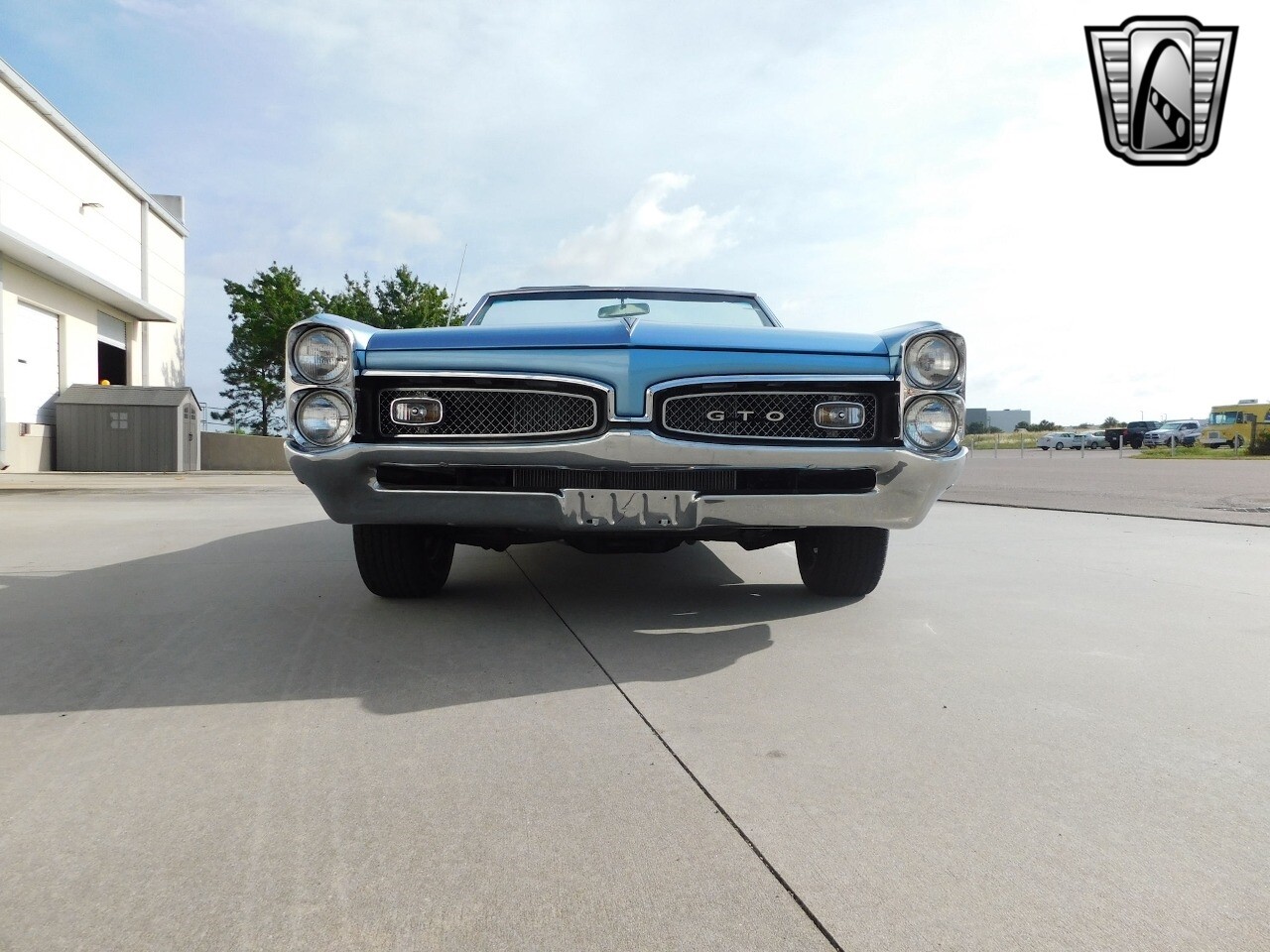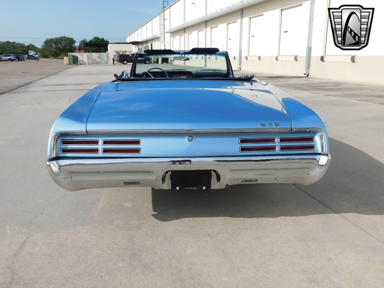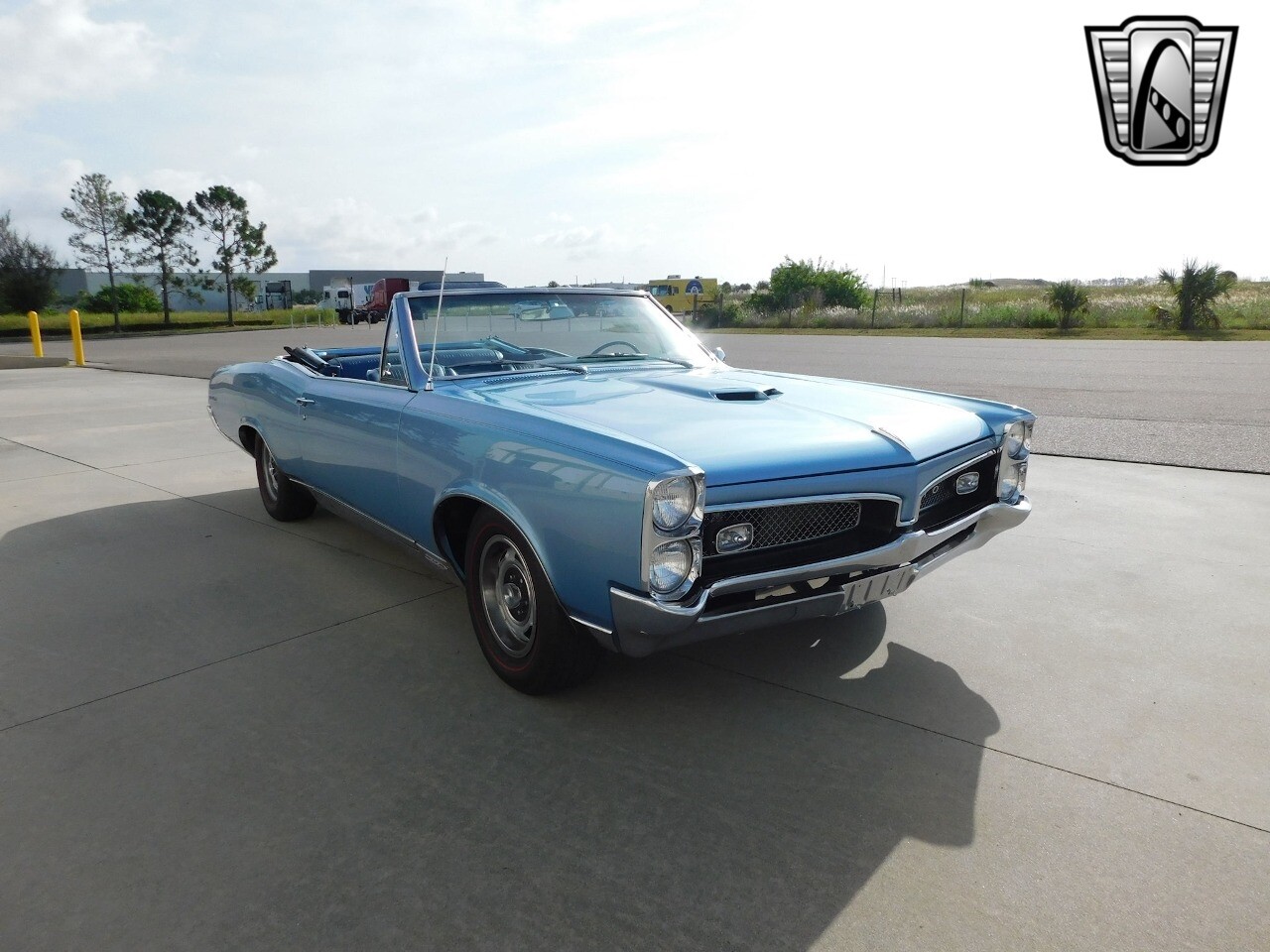 Gateway Classic Cars of Tampa is proud to present this striking 1967 Pontiac GTO! The GTO was a pace setter of the 1960s when it came to the youth market and performance. From head turning styling to exhilarating power the GTO was the bee's knees. This example is resplendent in light blue over blue interior while sitting on Pontiac Rally I wheels wrapped in redline tires, with a rip free, black convertible roof. A four bbl carburetor feeds a 400 CI V8 engine paired with a 4-speed manual transmission, for that proper GTO experience. Once underway the AF/FM radio plays your favorite tunes and the compliment of factory and optional gauges ensures you're well informed of this Tiger's health and performance. The Pontiac GTO is a testament to the golden age of American muscle cars, offering an unforgettable driving experience and undeniable style. Grab this tiger by the tail and be the envy of your friends before it's gone!.