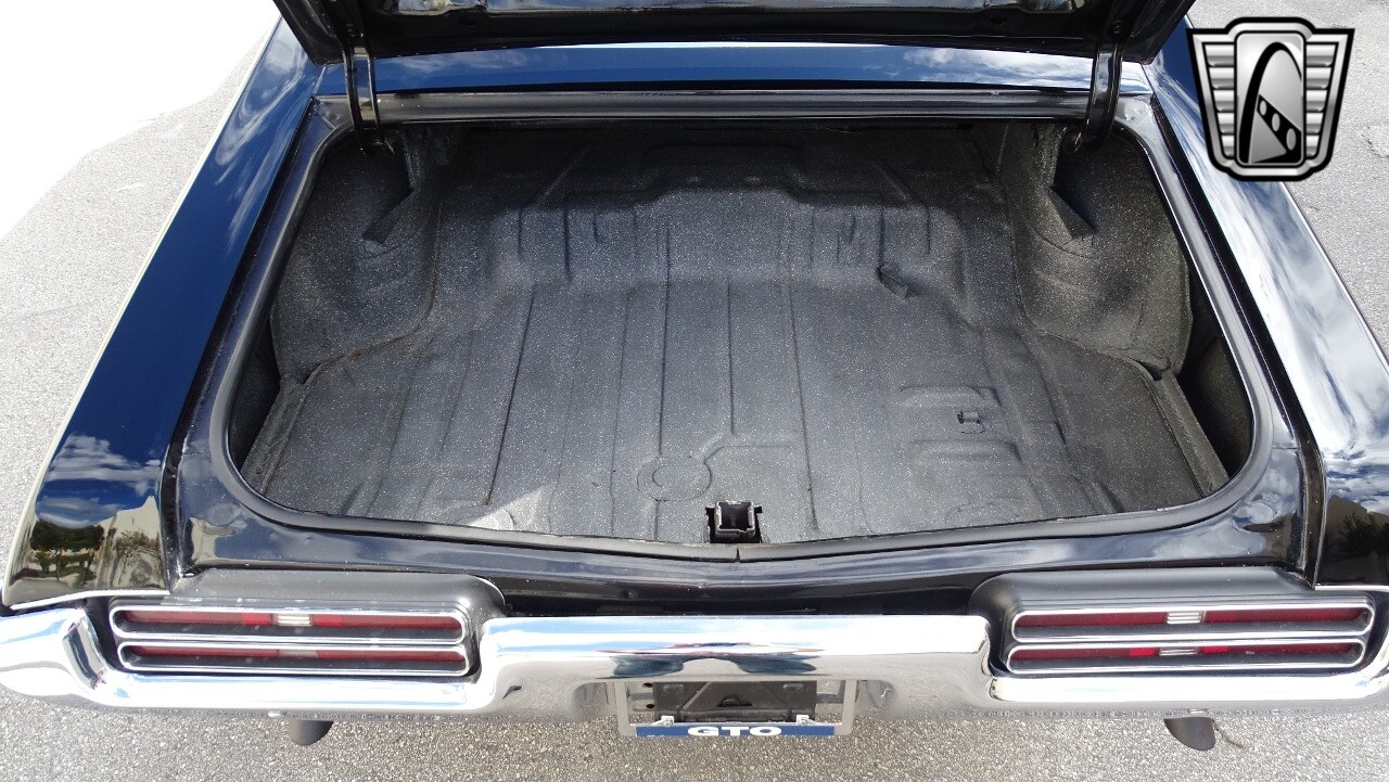 Every angle of this GTO is simply stunning. The black exterior is just meant for this car. It's sleek, it's menacing, it's a beauty. The interior is all black as well, with nice wooden dash panels. Both the front and back vinyl seats are super comfy and roomy. Hardly any ware on the interior, everything has been kept in great shape. Under the hood we have a 400 CID V8 motor. The engine bay is clean and simple. And it runs and sounds just how a GTO should. Paired to a 4-speed manual transmission. Bring this awesome '69 GTO home and you'll have everyone on the road breaking their necks just to get a glimpse..
