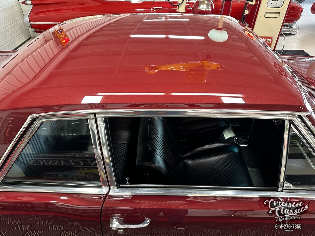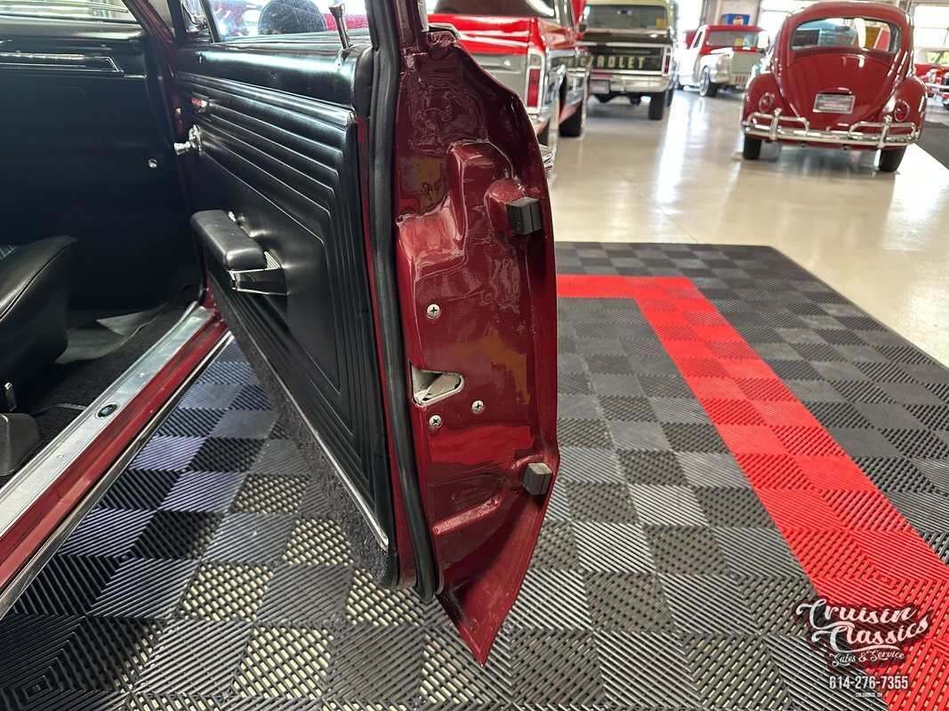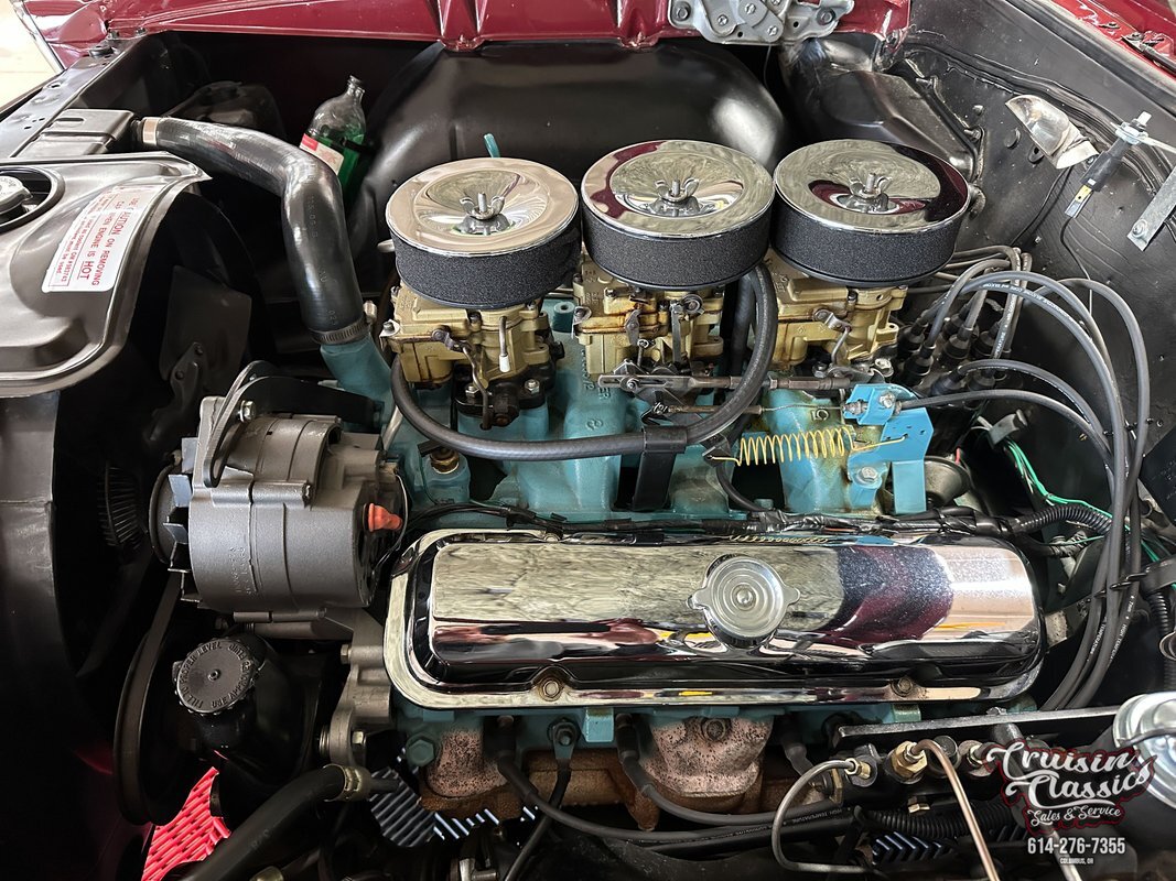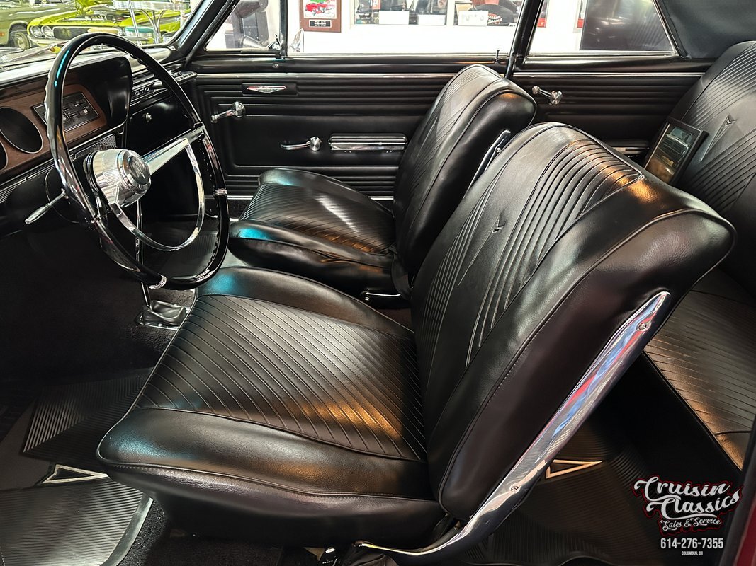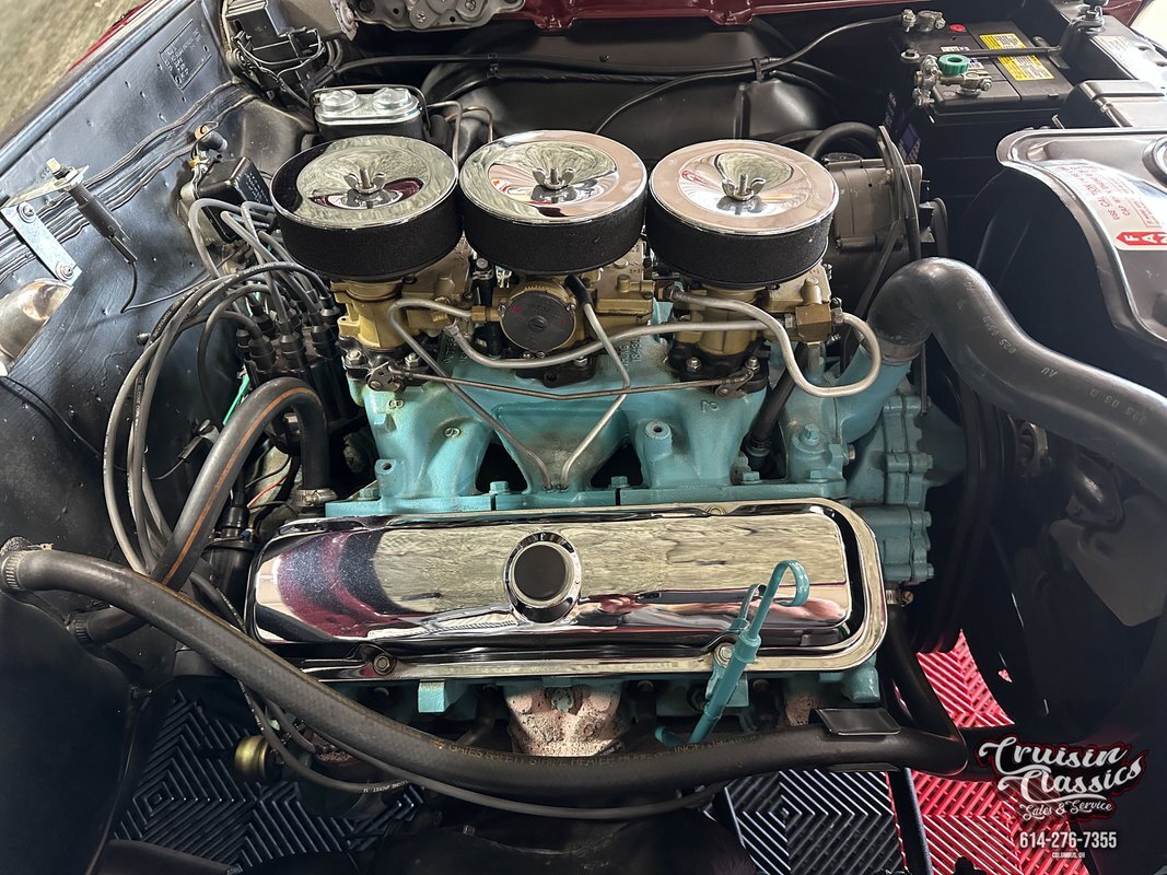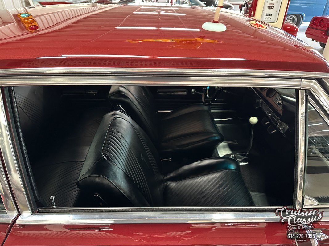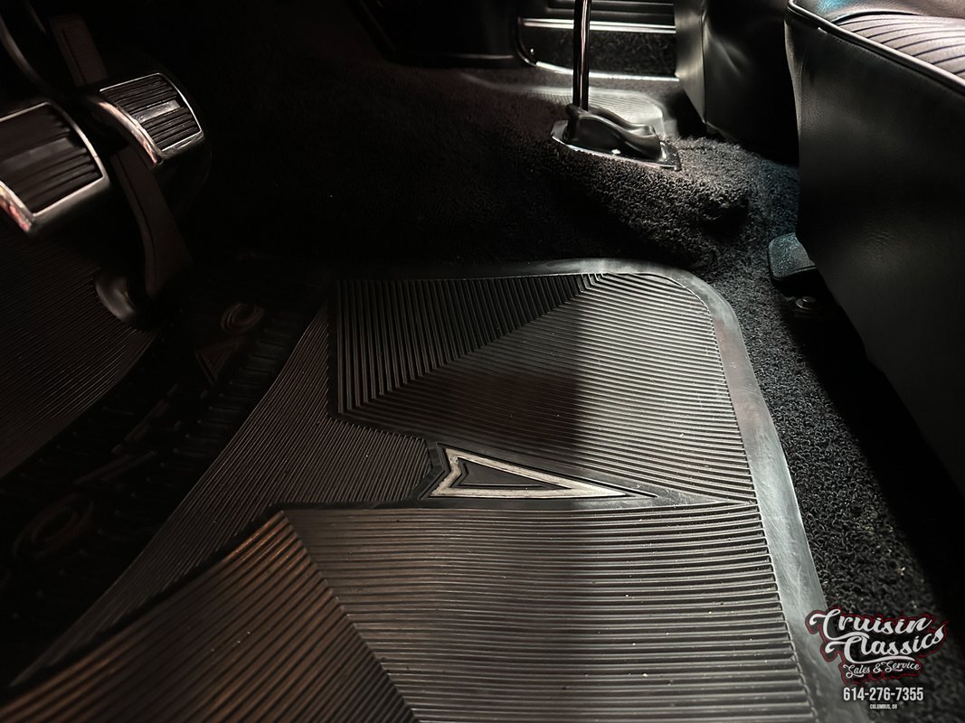 Cruisin Classics is proud to present this absolutely spectacular 1965 Pontiac LeMans “GTO Tribute”. This car started its life as a Teal Turquoise LeMans with a 326 V-8, 2 barrel carburetor, and automatic transmission, but it's a whole lot more than that now! This beauty is now dressed in a deep, glossy Burgundy Mist (PPG#50700, 1965 Pontiac color) paint job that looks fantastic at any distance. The front end is simply iconic – with vertically stacked quad headlights, a split grill with Pontiac logo at the center, and faux air vents on the hood – it looks fast sitting still. The front bumper is in excellent condition and gleams in the light, as do the headlight bezels. Great looks continue down the long laser-straight sides of the car with dual chrome side mirrors, wheel lip molding, drip rail molding, chrome rocker covers, bright window molding, and like-new GTO badges on the fenders and rear 1/4's. Around back you'll find wrap-around rear tail lights that blend into a black and chrome rear trim piece above the shining rear bumper with integrated reverse lights. The gas cap is hidden behind the rear license plate holder. This Pontiac has a great stance as it sits atop grey steel 6-slot Rally wheels with center caps and beauty rings wrapped in Hankook Optimo H725 tires. A lot has changed under the hood since this car rolled off the assembly line. The incredibly clean engine bay is now home to a freshly painted 1970 Pontiac 400ci V-8 (code XH – 350hp) topped with a correct 1965 intake and 1965 tri-power carburetors. Chrome valve covers and air cleaners add some contrast to the blue block. Exhaust flows through 1965 cast manifolds through Flowmaster 40 series mufflers to create an awesome sound. The 400 is mated to a 1968 Muncie 4-speed with a 1965 Hurst shifter that puts the power down via a 10 bolt rear with 3:08 Posi gears. Also under the hood you'll find a power steering unit, a dual resevoir for the manual brakes (disc/drum), a correct GM washer fluid bottle (not hooked up), and newer under-hood matting. When you open the drivers door the courtesy light illuminates the black OEM correct GTO interior. The door panels are both in very good condition and feature arm-rests, crank windows, carpeted bottoms, and GTO badging. The black vinyl bucket seats with Pontiac logos are very comfortable and show no wear. The back seat looks equally as nice and is flanked by arm-rests, ashtrays, and window cranks. Above is a tight black vinyl headliner and below is new looking black hook and loop carpet topped with black vinyl Pontiac floormats in the front and rear. All of the glass is excellent with no scratches or pitting. The windshield and rear window appear new while all of the sideglass has original markings. The driver is treated to an OEM 1965 Pontiac 2-spoke steering wheel with horn ring, chrome accent bands, and a Pontiac logo in the center. The correct GTO dash features a woodgrain surround for the gauge cluster and climate controls. There is a 120mph speedometer with checkered flag logo, an 8K tachometer, and gauges for oil pressure and water temp. The heater blows hot and the fan works as it should. Below the woodgrain is a ribbed chrome section with knobs for lights and wipers, a lighter, an ashtray, and a working factory AM radio. The passenger side of the dash features a grab-handle with GTO badge and a glovebox containing the original protecto-plate and owners manual. Up above are dual visors and a rear-view mirror with day/night switch and down below is a Hurst shifter with black boot and white pattern shift ball. The drivers brake, clutch, and e-brake pedals all have chrome surrounds for a sporty look. Around back you'll find a very clean trunk with a very rare “retractable” light under the lid. It can be slid out of it's holder so you can shine it directionally where you want. Also in the trunk is a vinyl mat, a factory jack, and a full spare on a rally wheel. We also have for this car a copy of the build sheet, title history, and a framed 1965 GTO color advertisement. There are a ton of GTO tribute cars out there, but there are a rare few built to this level - it is really as close as you can come to replicating a 65 GTO. This is an excellent opportunity to buy a GTO tribute that's nicer than most GTO's for a fraction of the cost! Don't let this one pass you by!