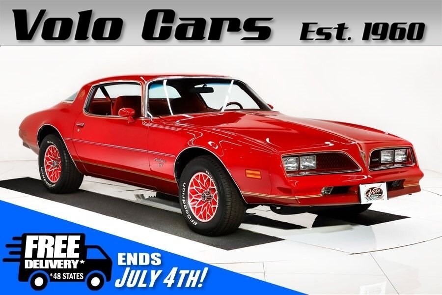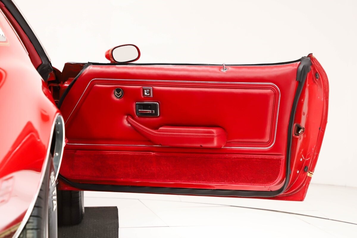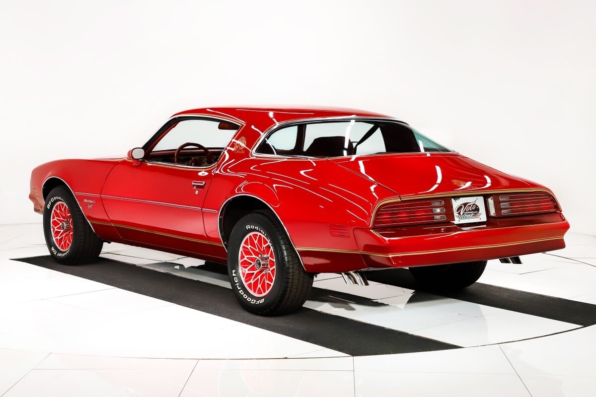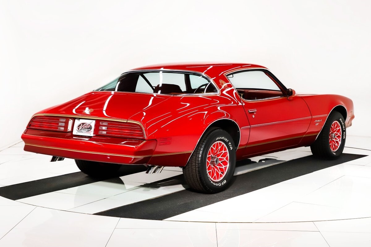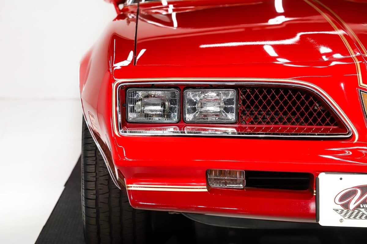 EXTERIOR: Redbird unique features: Roman Red (which wasn't available on any other 78 Firebird) with Redbird red lower accent. It also features gold striping, red grills and red snowflake wheels. The exterior of this car is great! It has all original sheet metal in place and is straight. The rubber bumpers are excellent. The doors do not sag and easily open and close like a new car. It is still wearing some original paint and some touch up. Overall, it looks beautiful, smooth, and glossy. It does have some mild checking on the 1/4s. The gold striping and graphics are in excellent shape. The original 15 inch snowflake rims have been professionally powder coated inside and out and are wrapped in virtually brand new BF Goodrich radial T/A tires. The original glass including the windshield is crystal clear. All the chrome, trim, lenses and weatherstrips are excellent. This survivor is sure to be adorned and respected by Pontiac enthusiasts wherever you go!