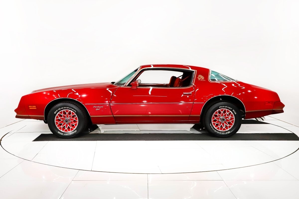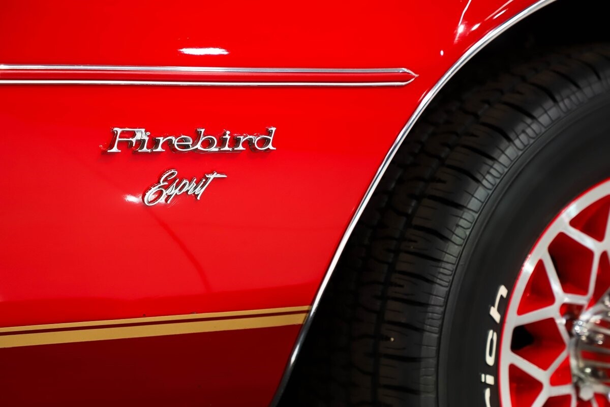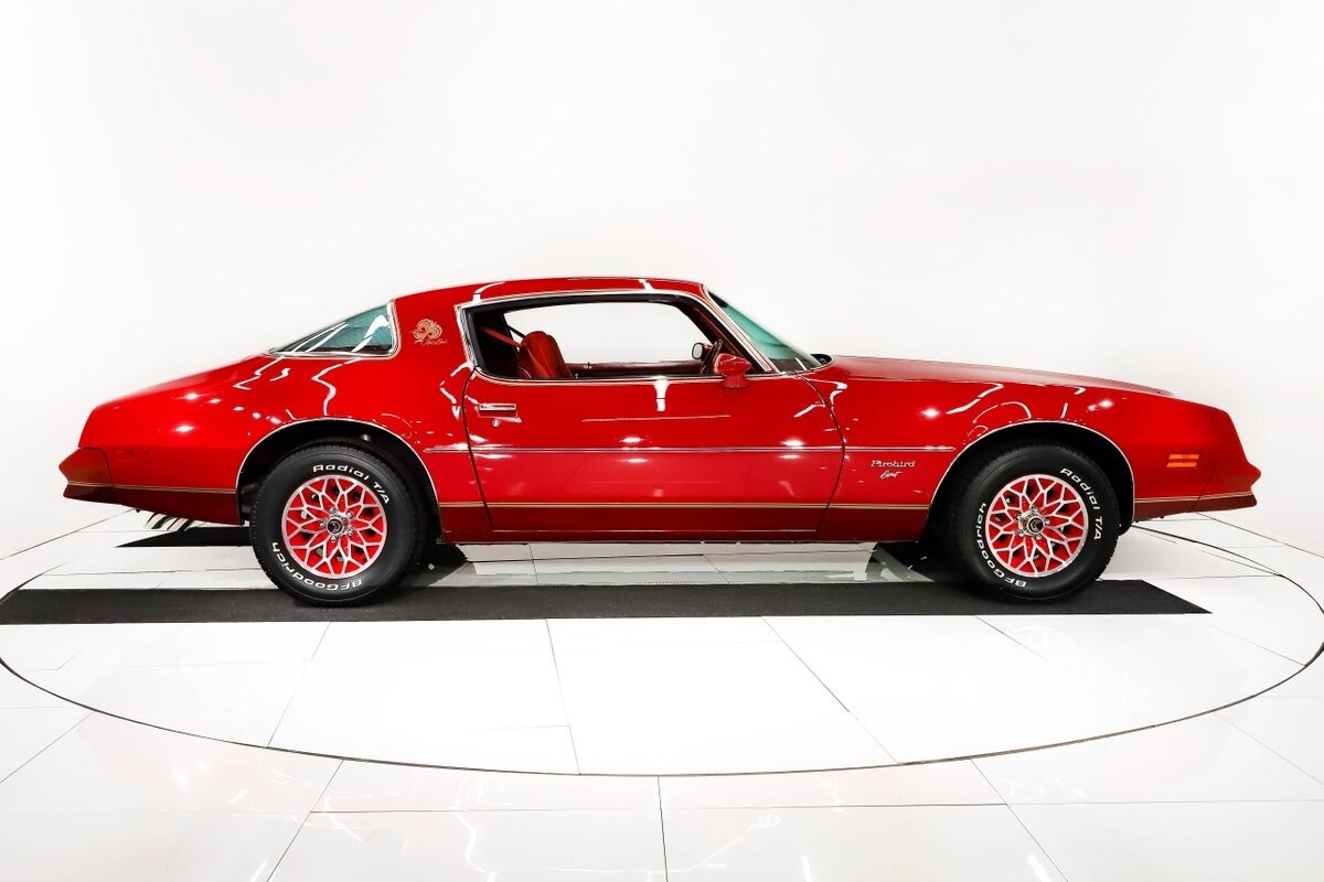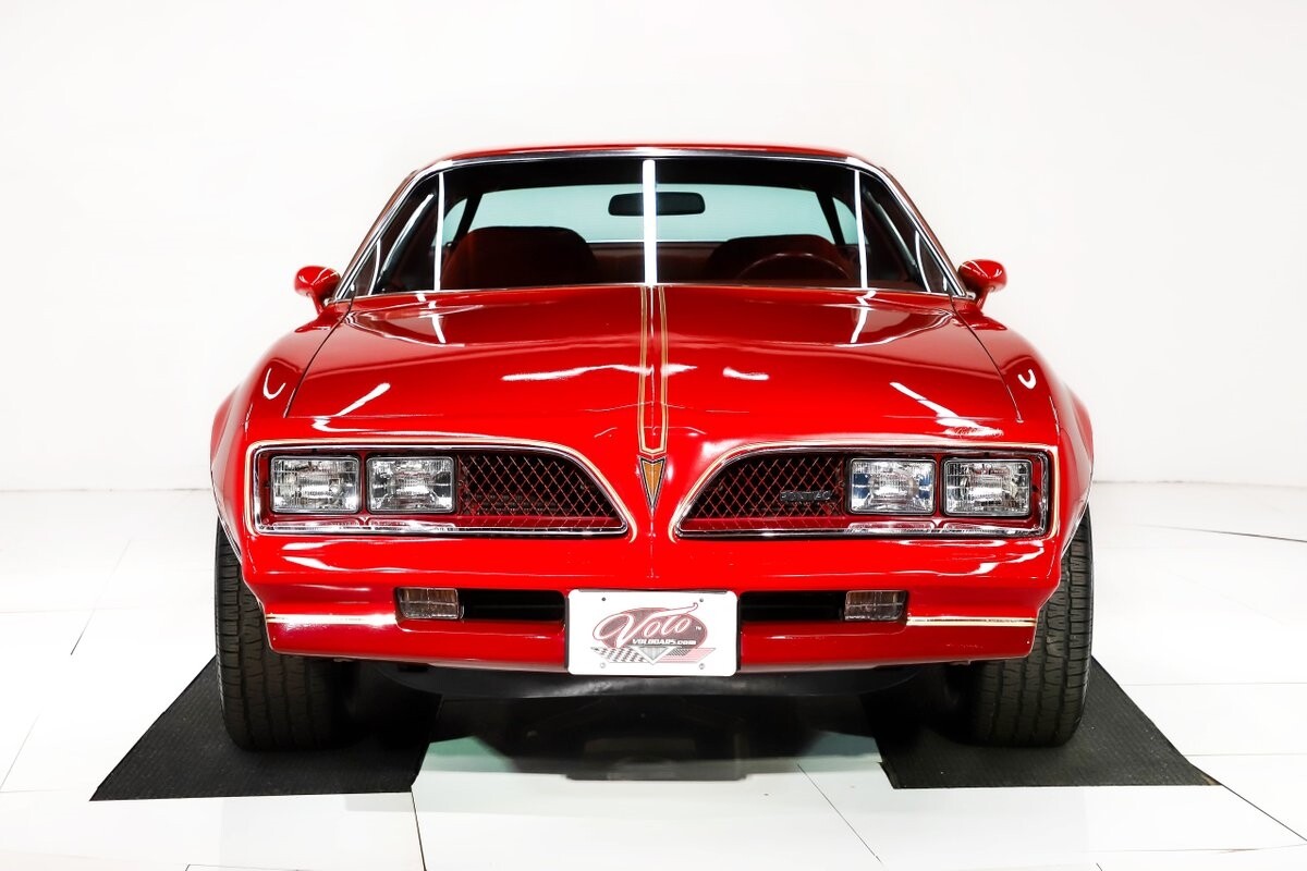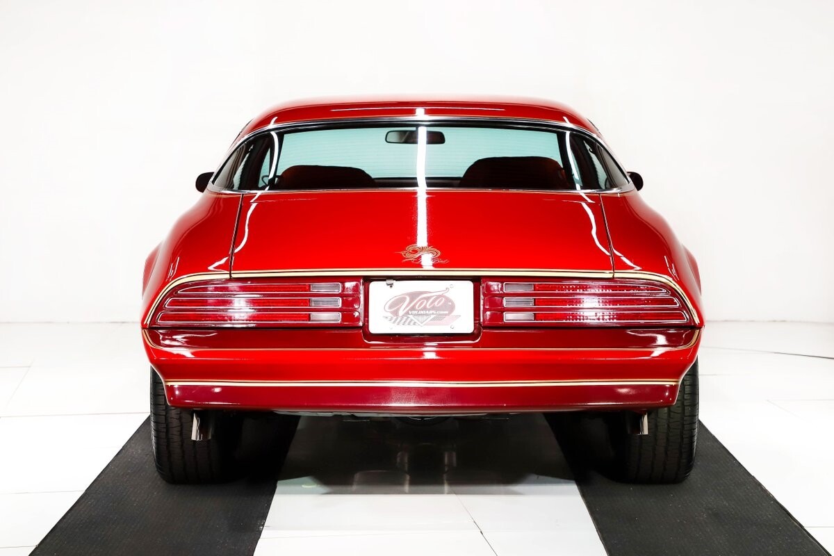EXTERIOR: Redbird unique features: Roman Red (which wasn't available on any other 78 Firebird) with Redbird red lower accent. It also features gold striping, red grills and red snowflake wheels. The exterior of this car is great! It has all original sheet metal in place and is straight. The rubber bumpers are excellent. The doors do not sag and easily open and close like a new car. It is still wearing some original paint and some touch up. Overall, it looks beautiful, smooth, and glossy. It does have some mild checking on the 1/4s. The gold striping and graphics are in excellent shape. The original 15 inch snowflake rims have been professionally powder coated inside and out and are wrapped in virtually brand new BF Goodrich radial T/A tires. The original glass including the windshield is crystal clear. All the chrome, trim, lenses and weatherstrips are excellent. This survivor is sure to be adorned and respected by Pontiac enthusiasts wherever you go!