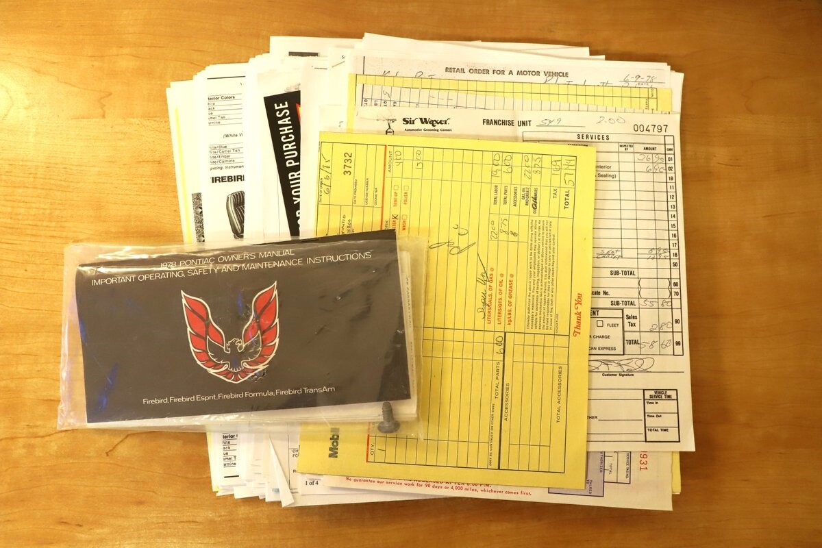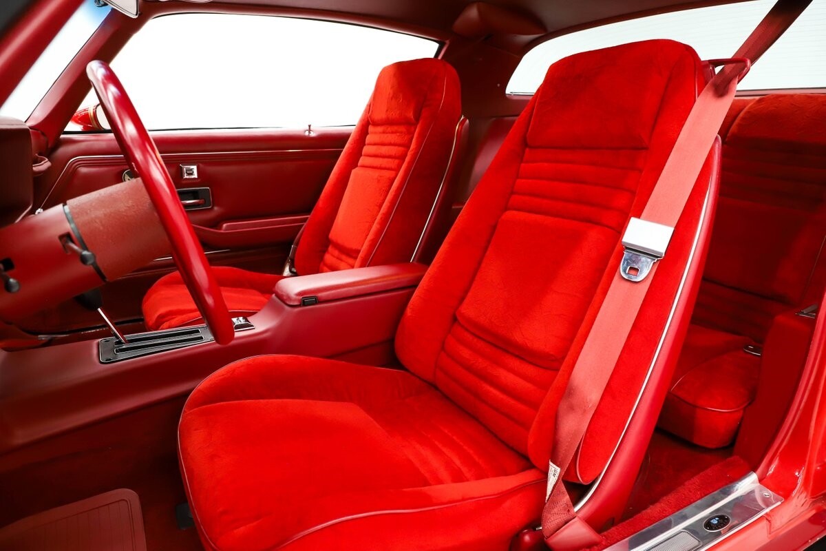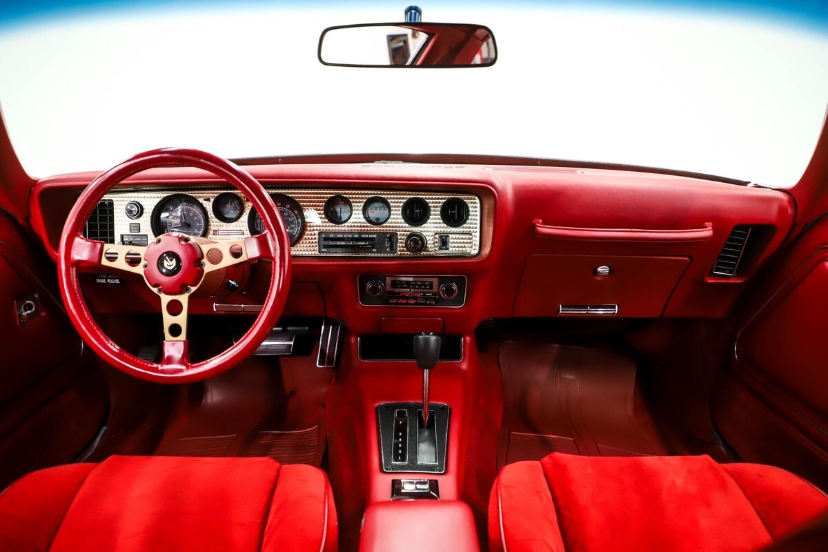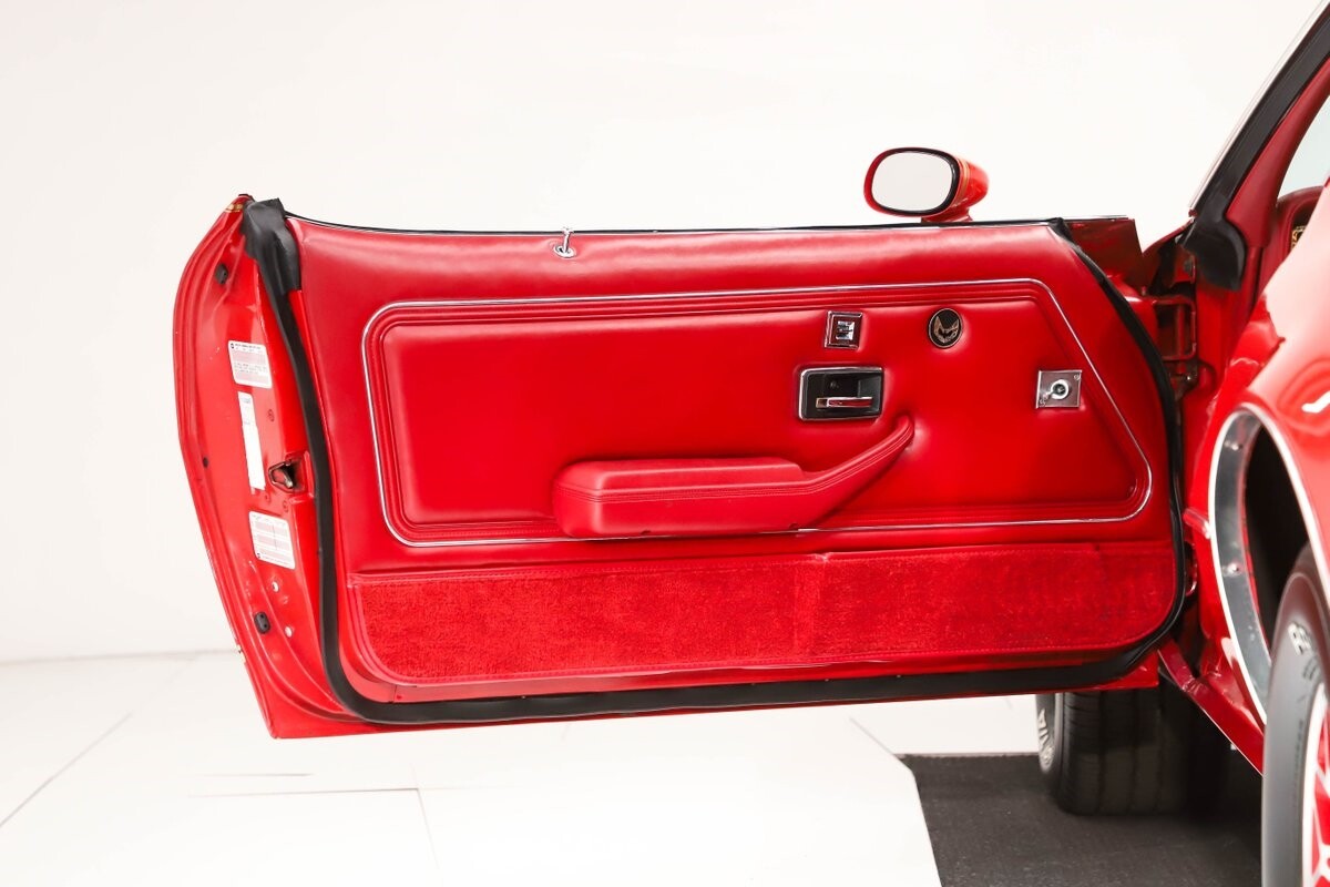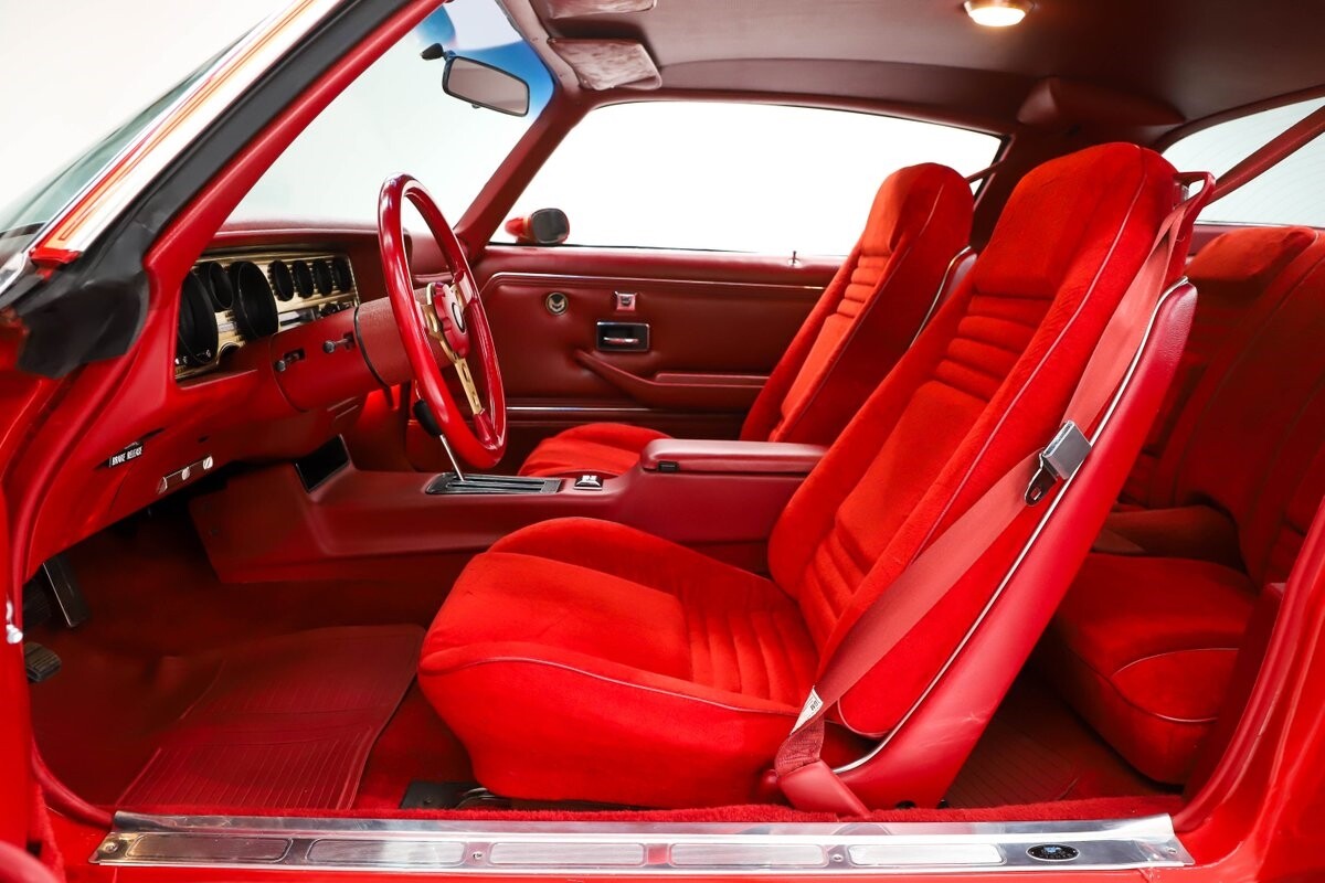 INTERIOR: The unique Redbird interior features include carmine red color, gold machine turned dash bezel and a red formula wheel with gold spokes. It is loaded with factory options like deluxe cloth interior, power windows, power door locks, rear defroster, tilt column, AM-FM stereo and rally gauges. As I'm in our showroom writing this description a customer came up and started talking with me about the car. I mentioned it's originality and cracked the door so they can take a look at the interior. The first thing that came out of his mouth was "it still smells new"! I think that descriptive pretty much sums up this entire interior. It is nothing short of amazing, it's as close to brand new as you will find and it's original! Sit inside and you will be instantly transformed back to 1978 when this car rolled off the showroom floor. The headliner does not sag, dash area is pristine, the seats show zero wear! The door panels are mint, the carpet is even spotless! The steering wheel, center console and shifter, plastic trim are pristine! The cigarette lighter has never been used. It is as close to perfection as you will ever find for a vehicle that's over 40 years old! It's totally amazing!