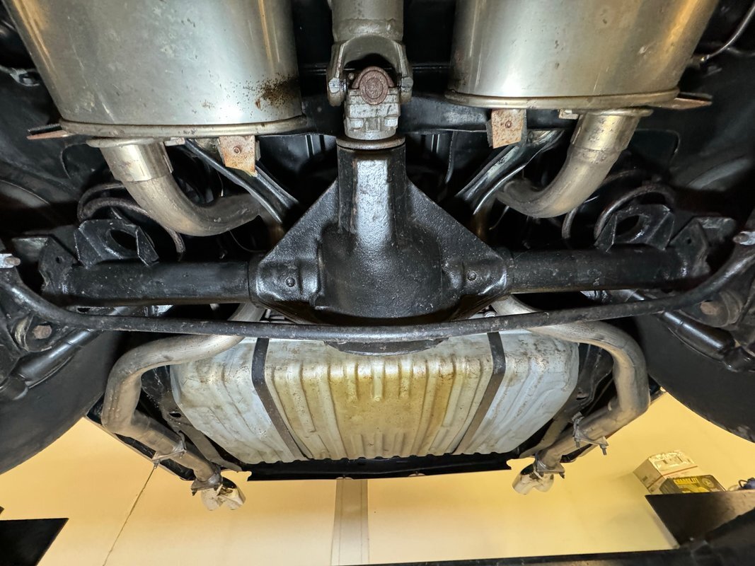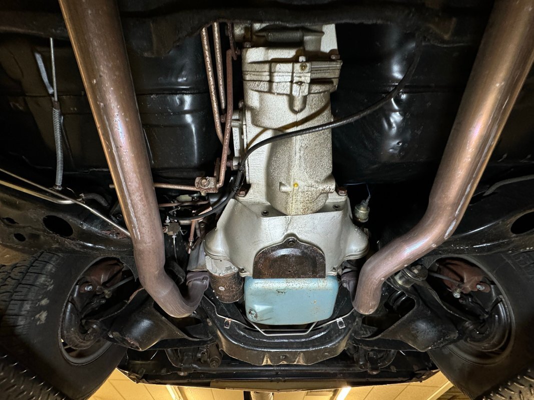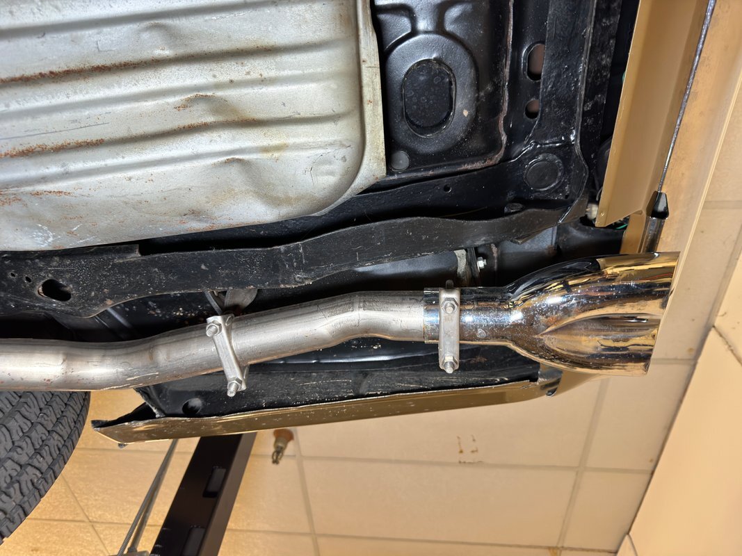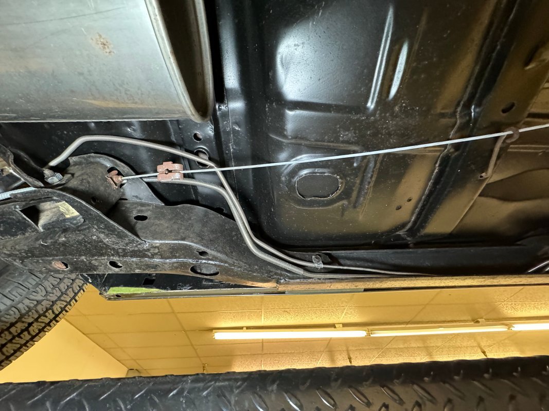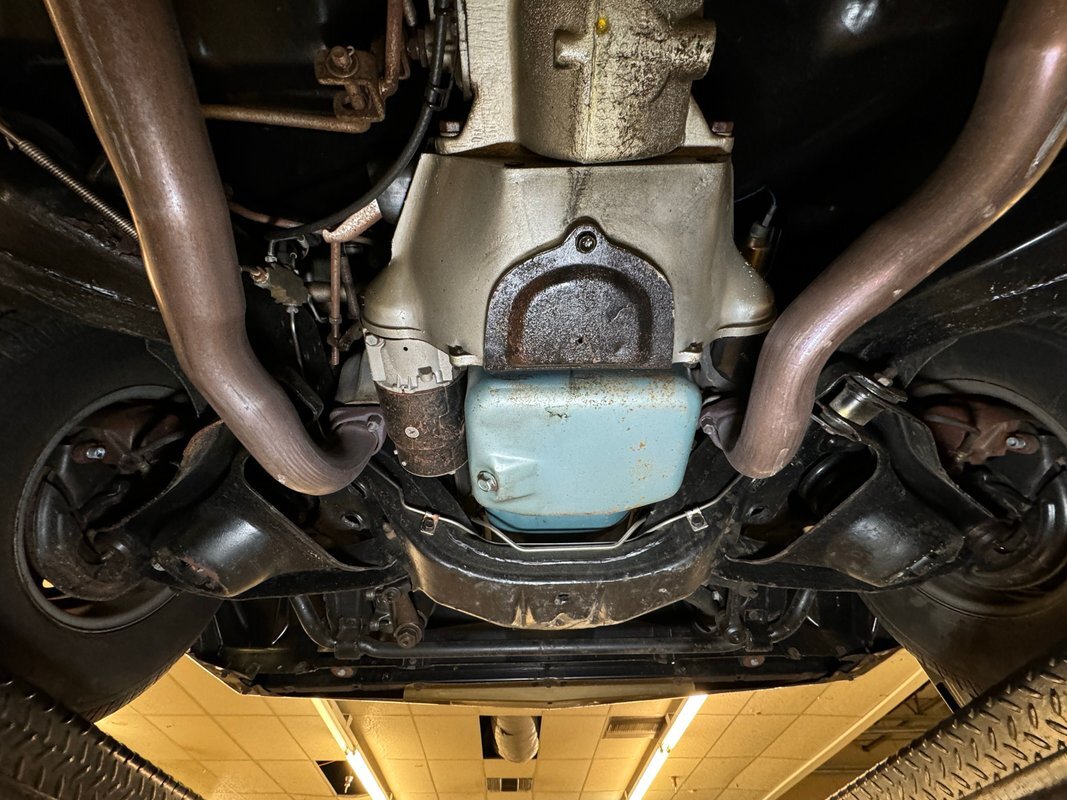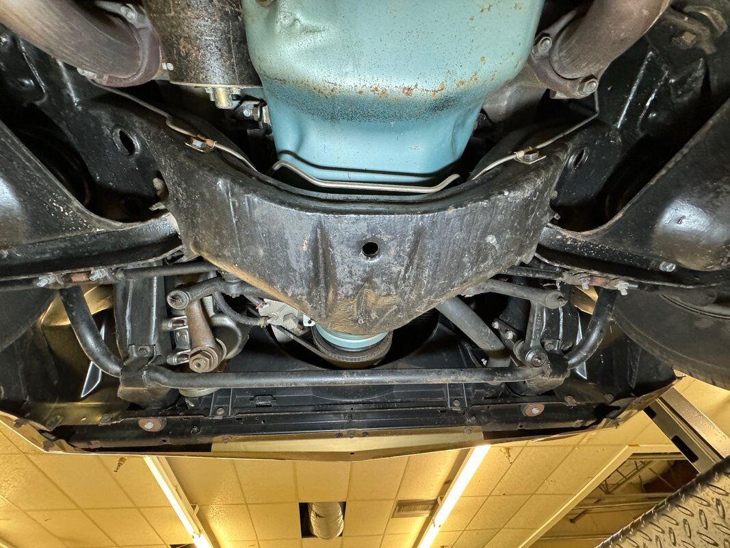 The clean underside is highlighted by the dual exhaust which includes a pair of stainless steel mufflers before snaking its way around the axle and out the back. There are sporadic spots of surface rust but very little, and no signs of leaks. Satin black paint covers most of the underside and presents cleanly. The suspension includes coil springs on the independent front and a 4 link with coil springs in the rear.