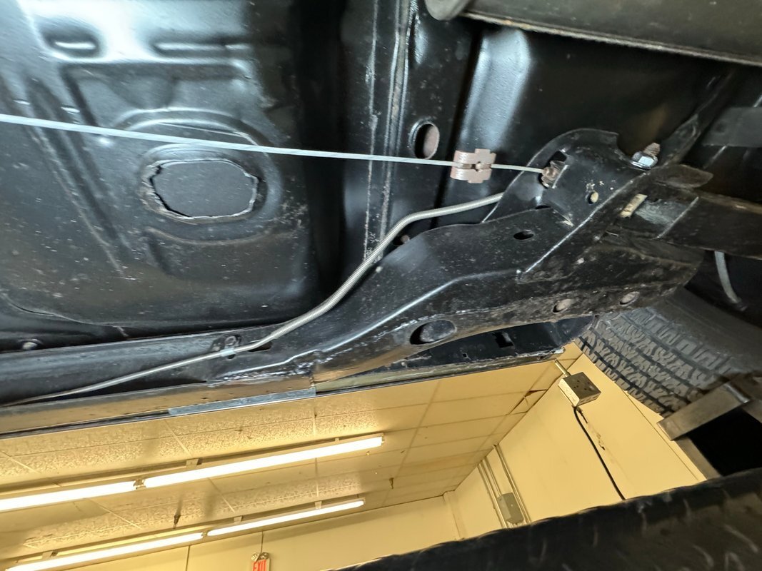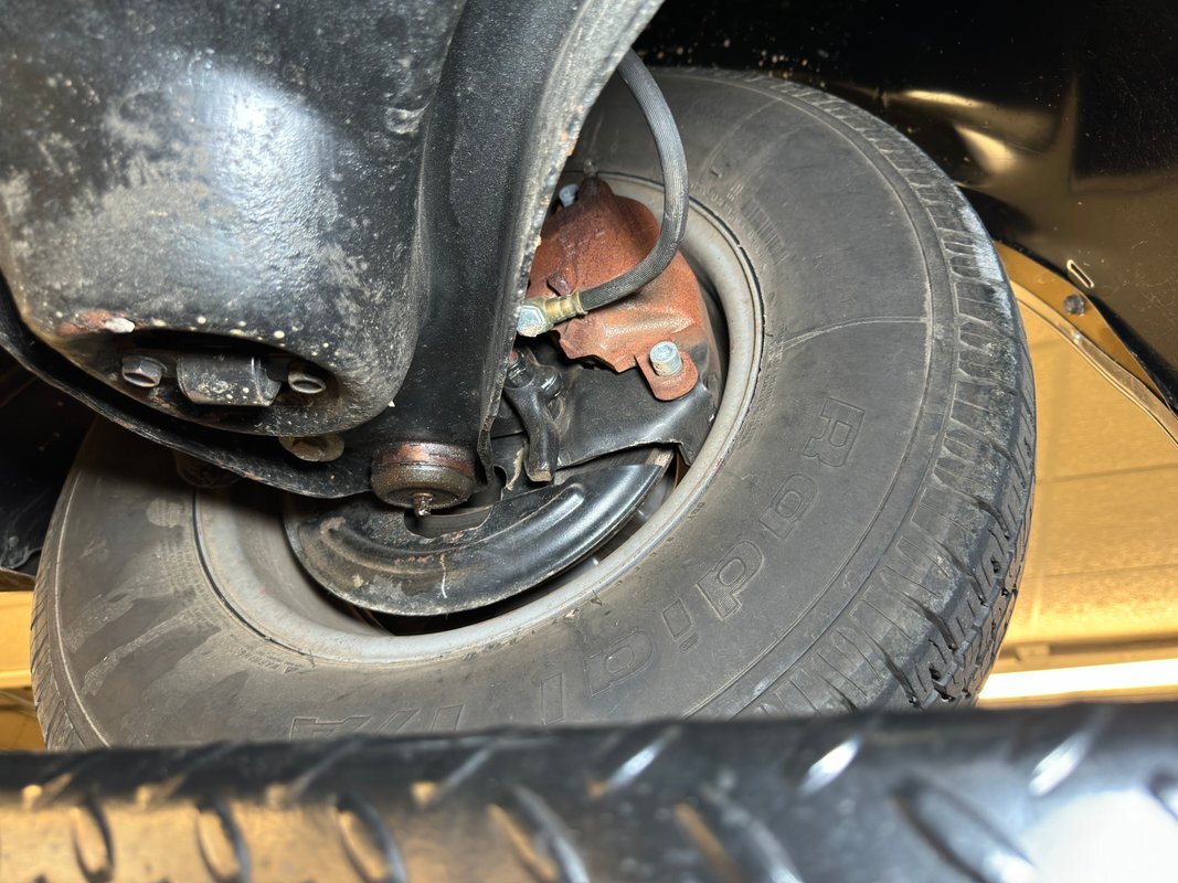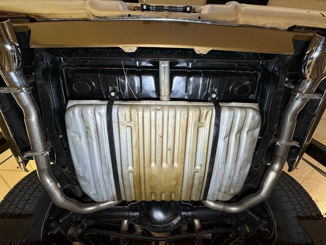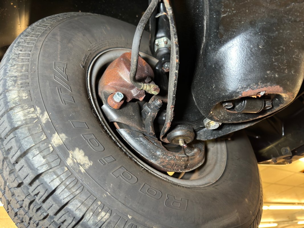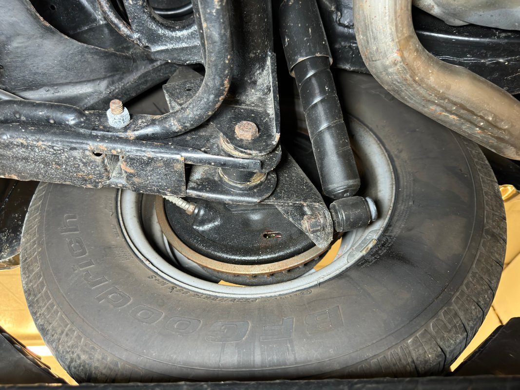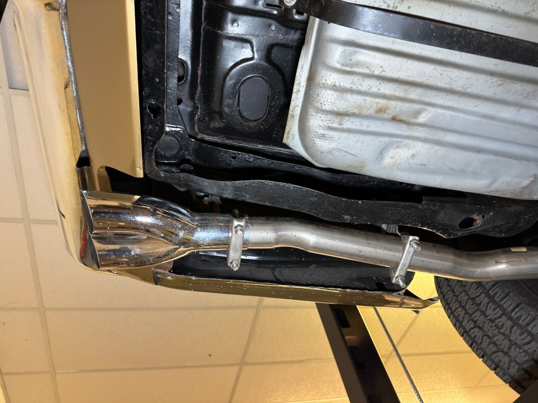 The clean underside is highlighted by the dual exhaust which includes a pair of stainless steel mufflers before snaking its way around the axle and out the back. There are sporadic spots of surface rust but very little, and no signs of leaks. Satin black paint covers most of the underside and presents cleanly. The suspension includes coil springs on the independent front and a 4 link with coil springs in the rear.