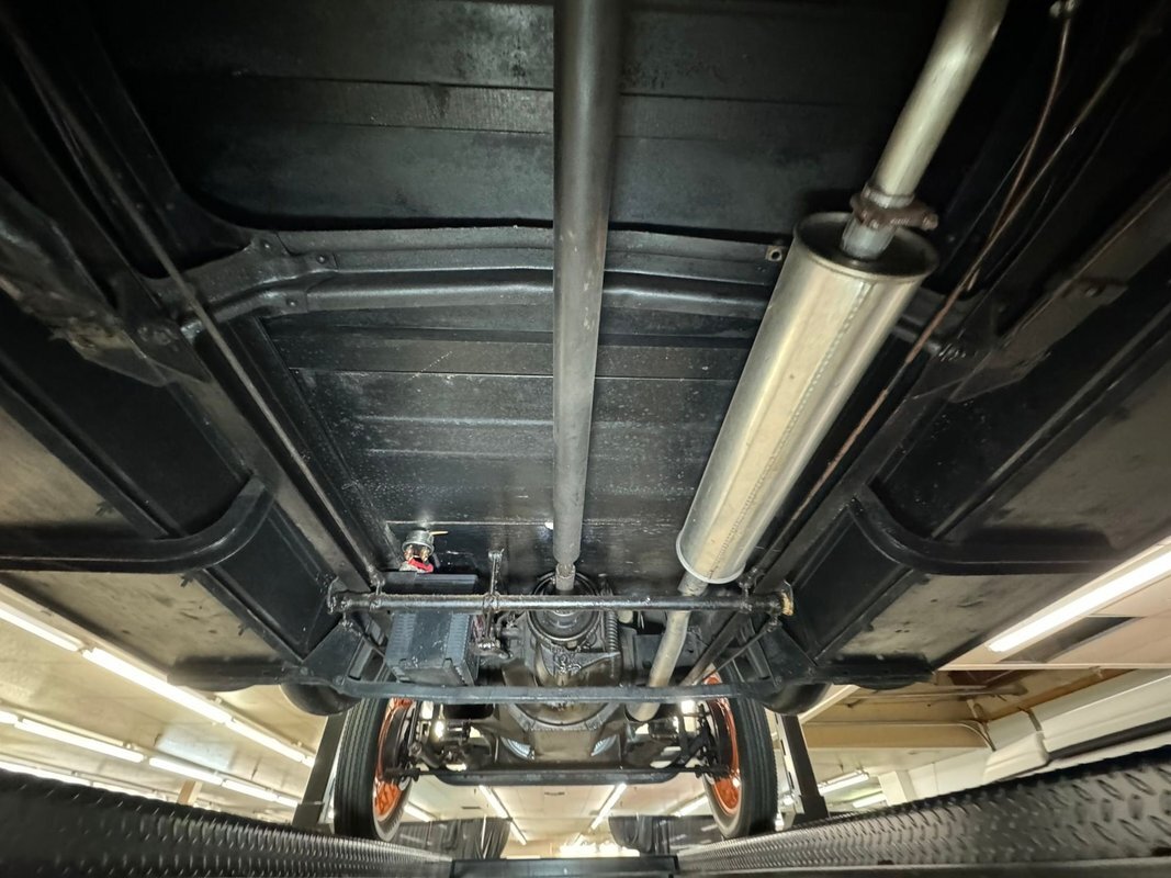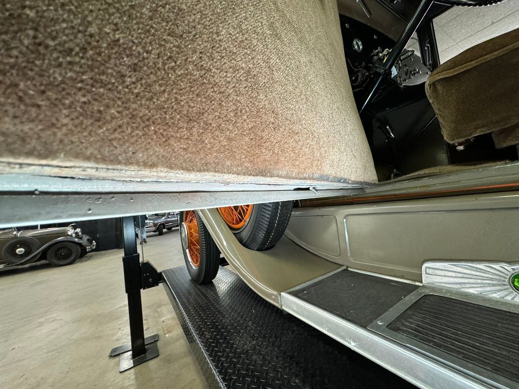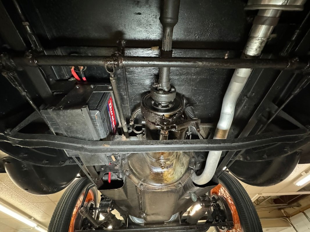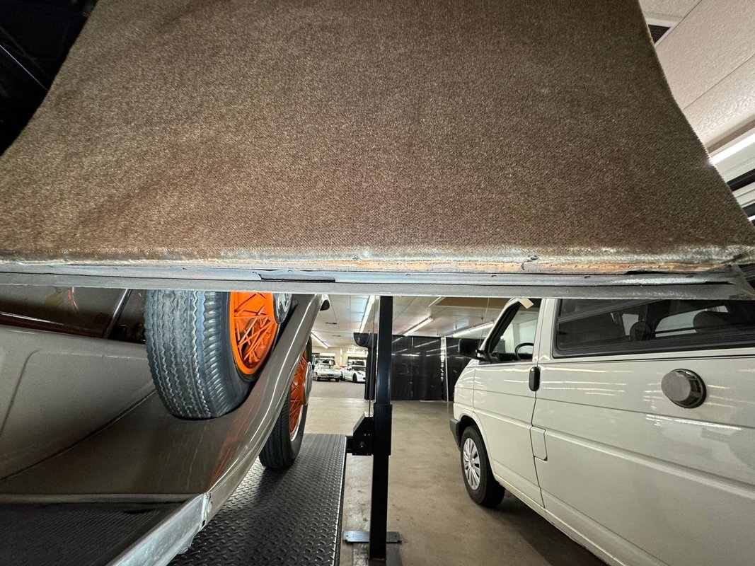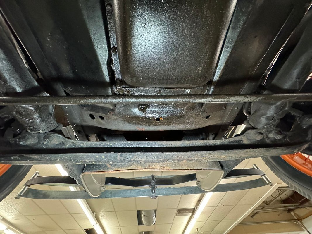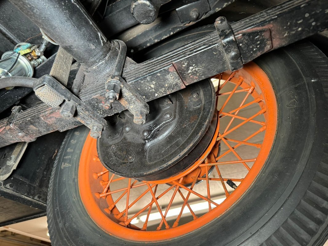 All these years of storage have been good for this car as we see black painted rust free framing and floor pans. No road dirt and a like new exhaust system. Body hangers are solid and running board bottoms are also rust free. Leaf springs provide the ride and mechanical drum brakes are on all 4 corners.