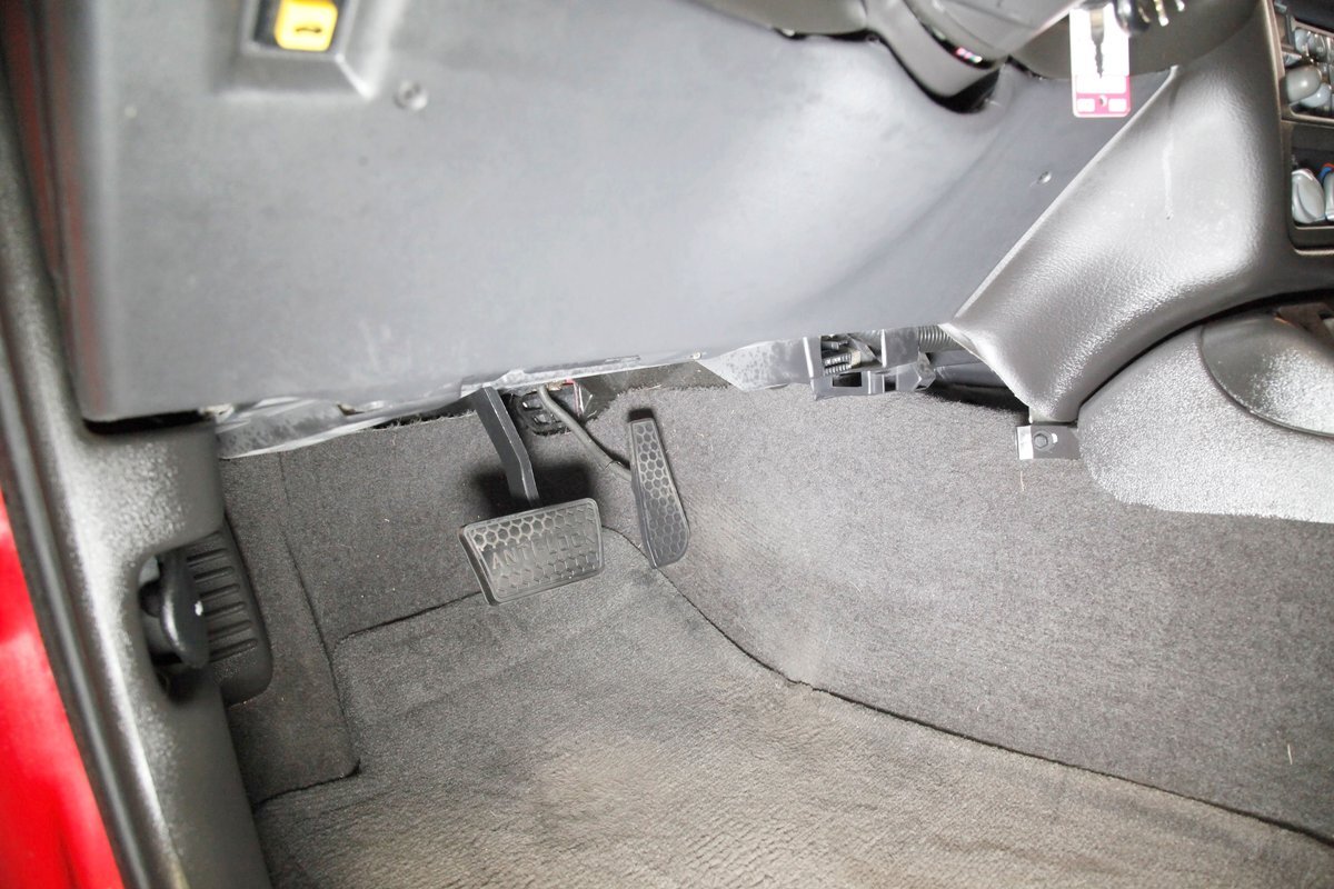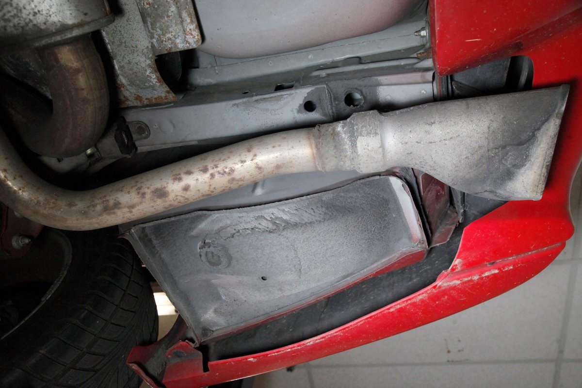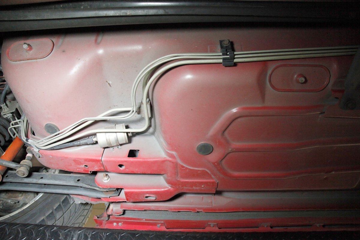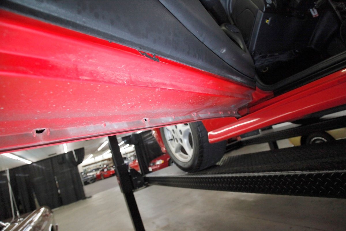The undercarriage is showroom with no dirt or scratched paint. Power front and rear disc brakes are on all the corners, and this car comes equipped with electronic traction control. Keeping this flyer firmly grounded is independent coil spring front suspension and in the back we note a torque arm with coil springs providing the ride. Factory installed single pipe to dual outlets after the OEM muffler is on for the exhale.