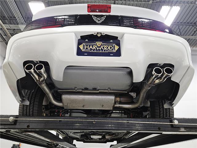 The only powerplant available in the Trans Am was the venerable 350 cubic inch LT1 V8. GM played games with the numbers so the F-bodies wouldn’t step on their big brother, but it’s the same motor that makes 300 horsepower in the Corvette. It’s also bulletproof reliable and makes the T/A a genuinely fast car, even today. Despite the availability of go-fast aftermarket parts, this one remains 100% stock, including the exhaust and air filter, so there are no concerns about sub-standard workmanship or abuse. It starts easily with a nice bark from the dual exhaust, and thanks to fuel injection, it idles properly and just works like it should. The engine bay is clean and well-maintained, showing all the factory stickers and markings for show purposes. The convertibles were only available with GM’s excellent 700R4 4-speed automatic transmission, and with 3.23 gears and a deep overdrive, this is a peerless highway cruiser that can eat up pavement effortlessly. The suspension is performance-oriented yet rides pretty well (this isn’t a luxury car, remember) and the 4-wheel disc brakes are massively powerful. Looking underneath, you can easily see that it has never seen inclement weather or even a hard rain storm, and again, all the factory markings are present. Special white alloy wheels were unique to the Anniversary cars, and this one carries brand new 245/50/16 performance radials so it’s ready to rock.