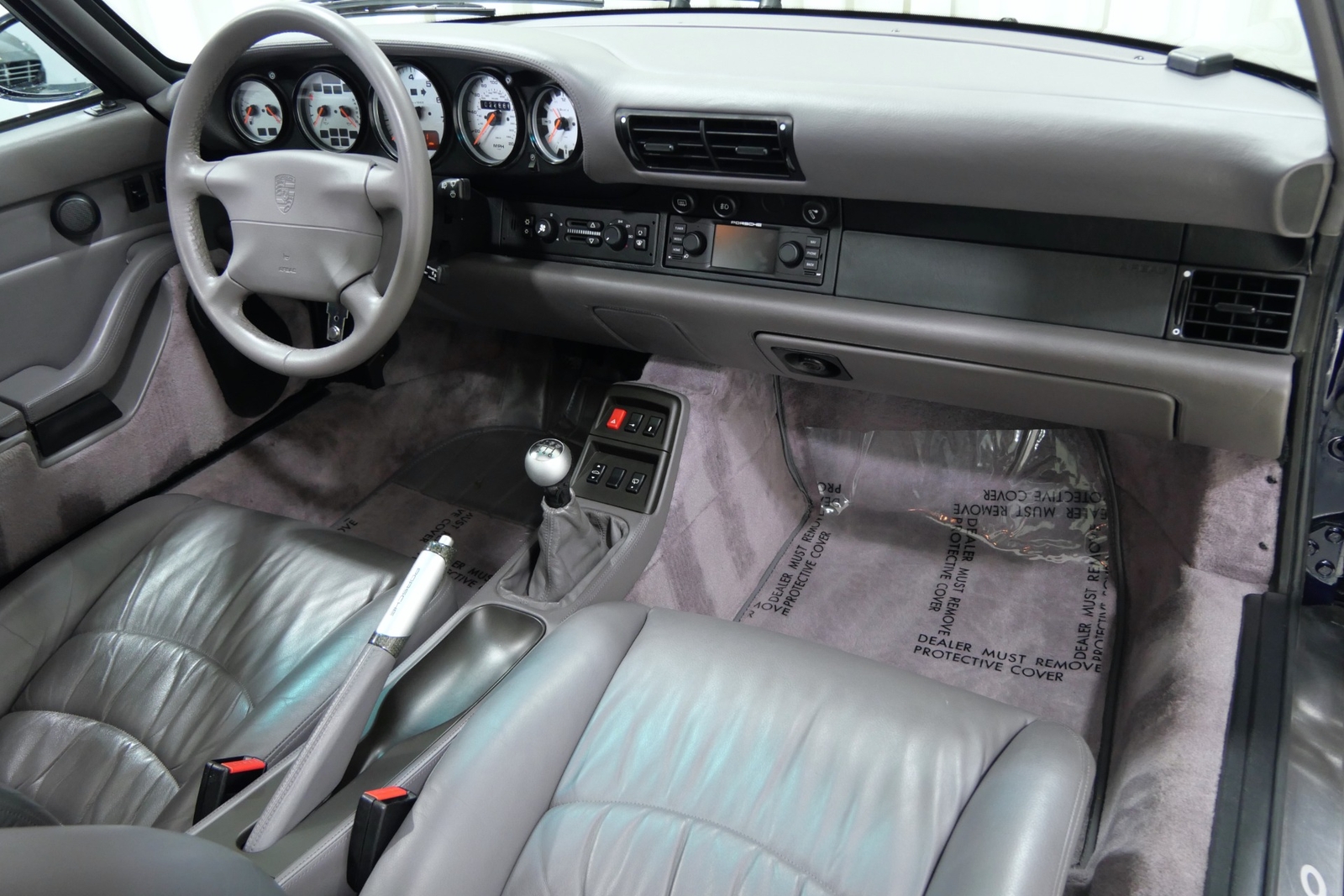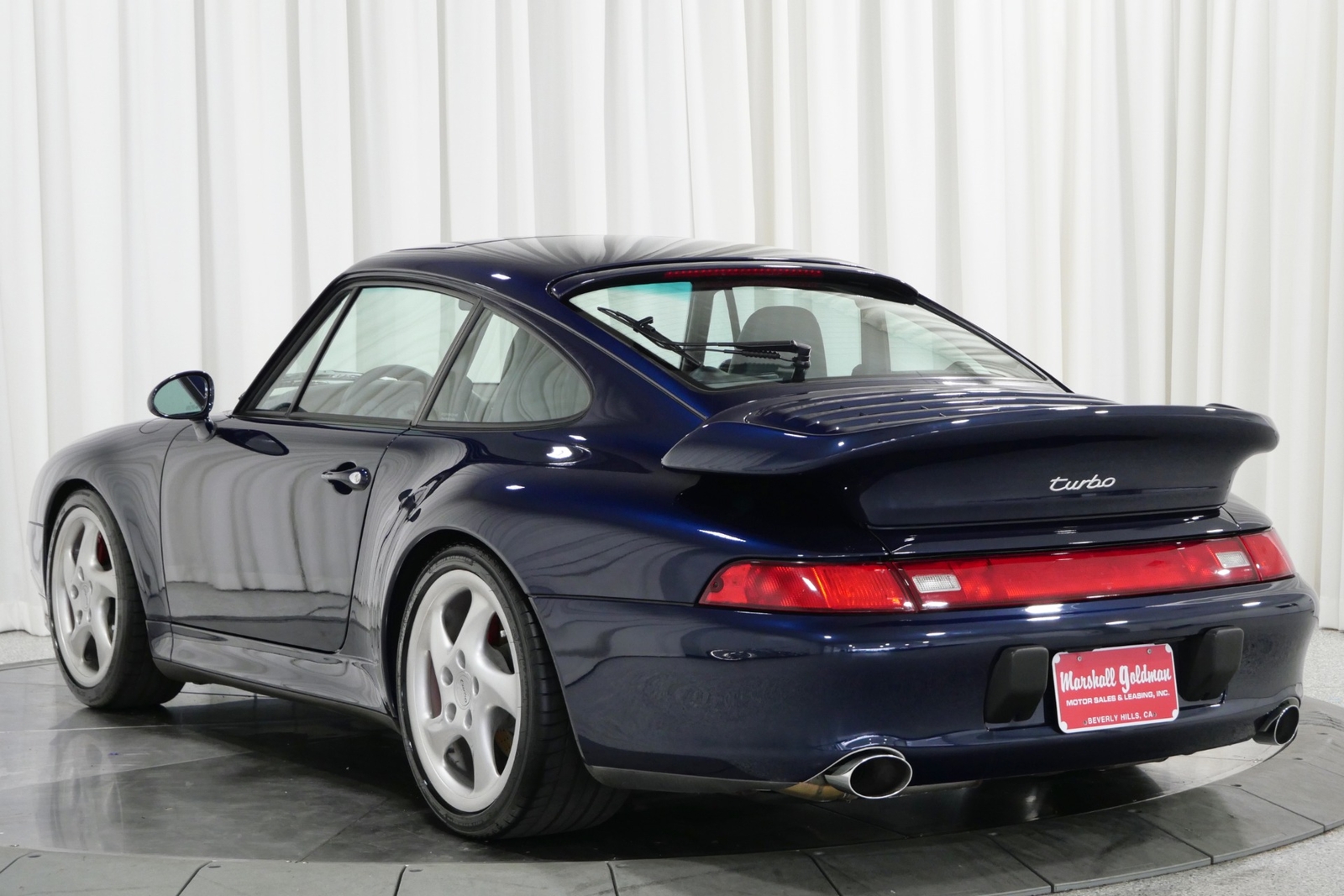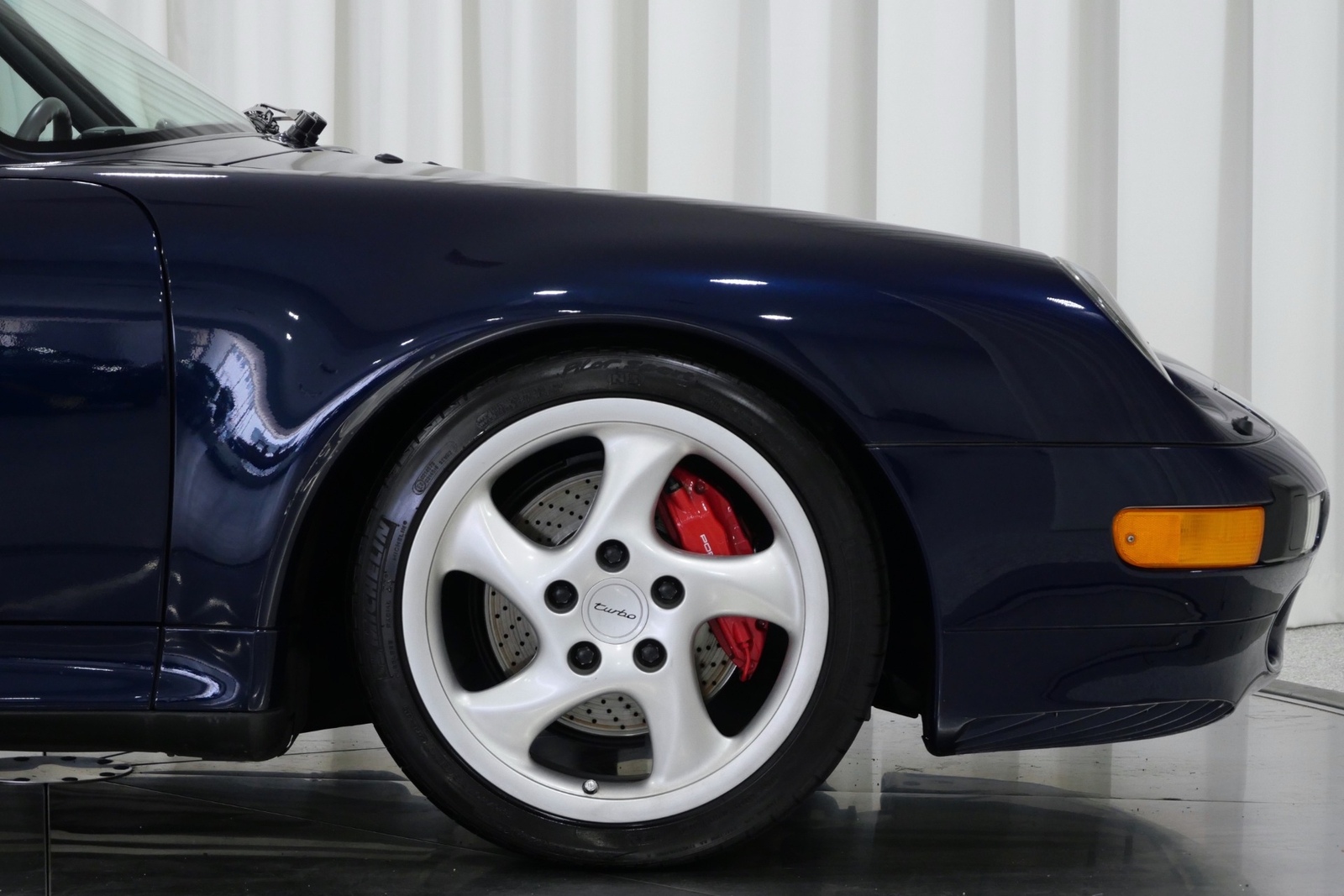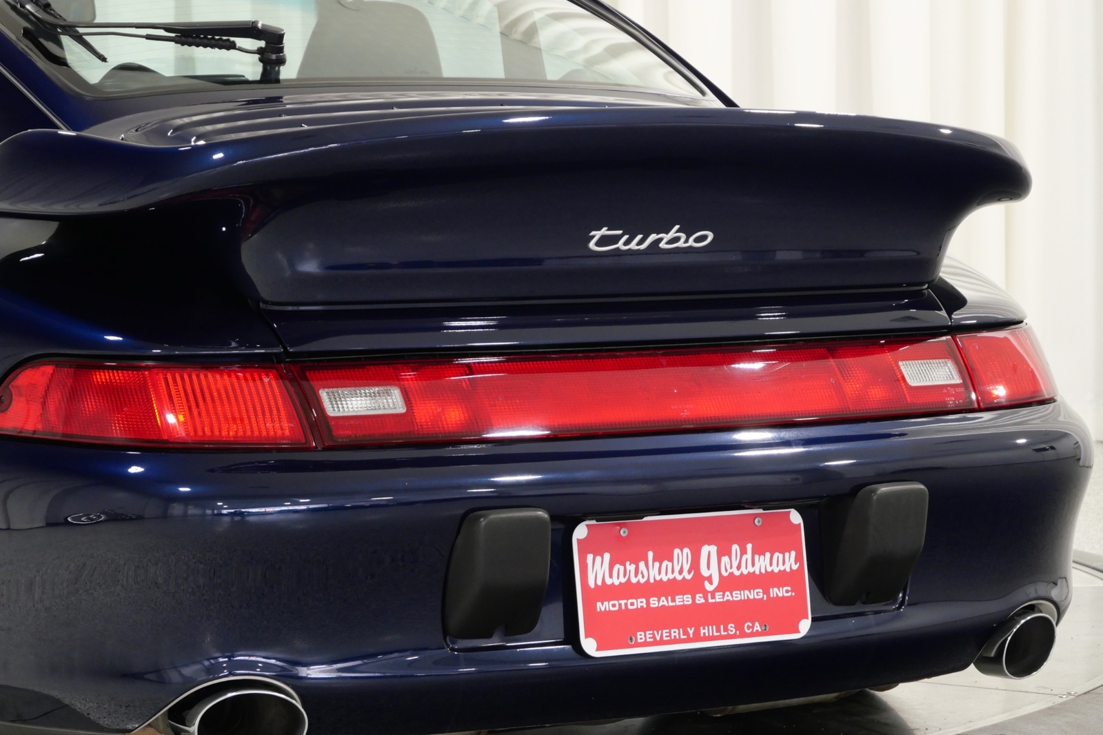 We have just added to our extensive exotic car inventory a beautiful 1997 Porsche 911 Turbo in Ocean Blue Metallic over Classic Grey leather with only 22,988 original miles. This Turbo is loaded with: 3.6L twin turbo flat six, 6 speed manual transmission, eight way seats left and right, aluminum shifter and handbrake handles, aluminum gauge faces, stainless steel sill plates, stainless steel oval exhaust tips, 6 CD changer, Porsche crests embossed in headrests, supple leather front and rear, sunroof, rear wiper, cruise control, floor mats, the window sticker, keys, books, tire inflator and much more. This is a very well cared for, low mile 993 with a stack of service records, a fresh dry ice blasting (check out the super clean chassis pics) in a great color!