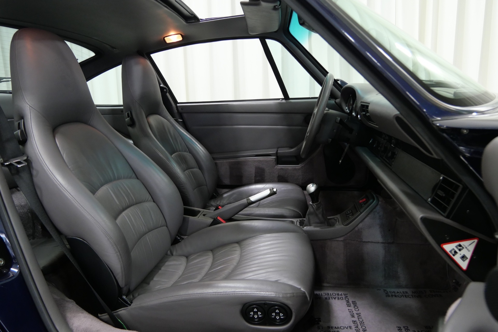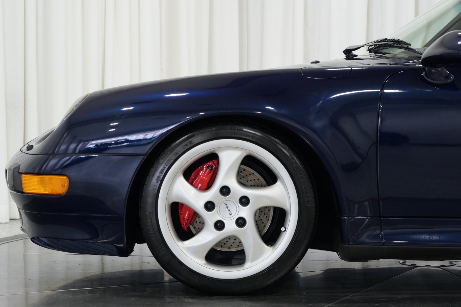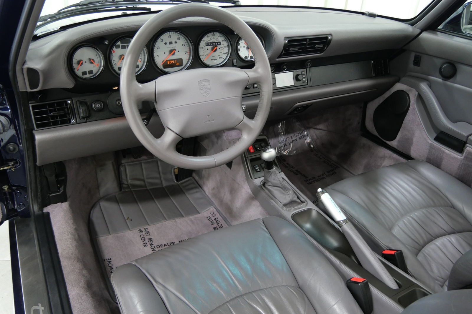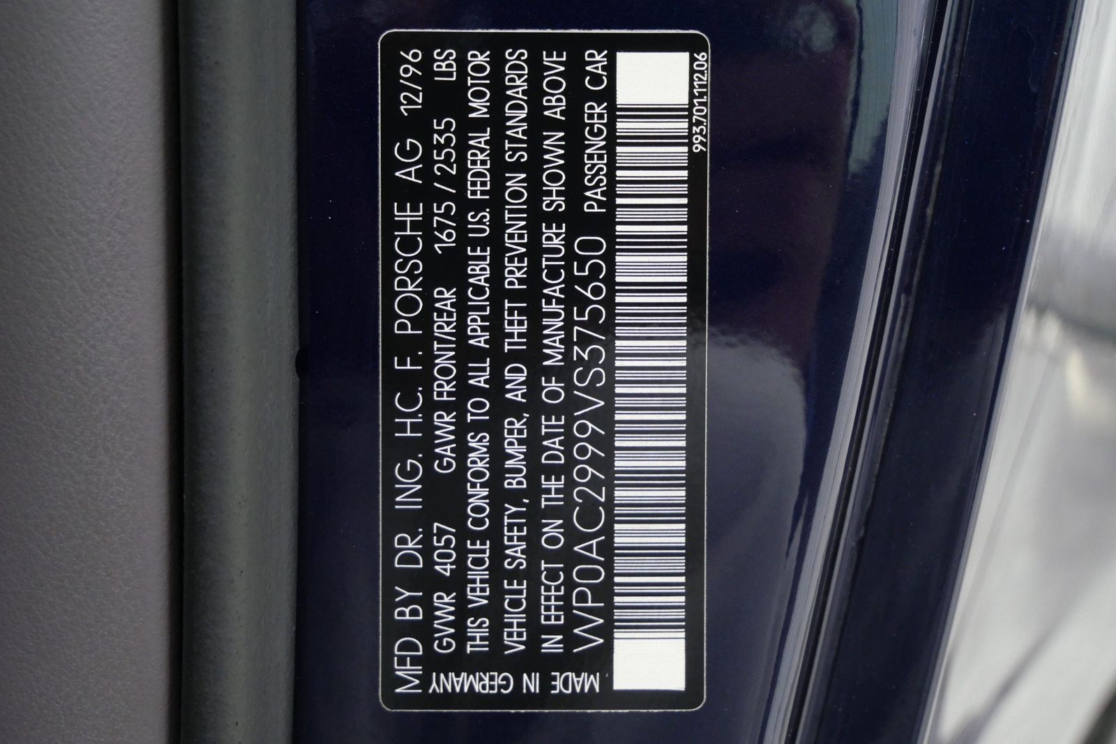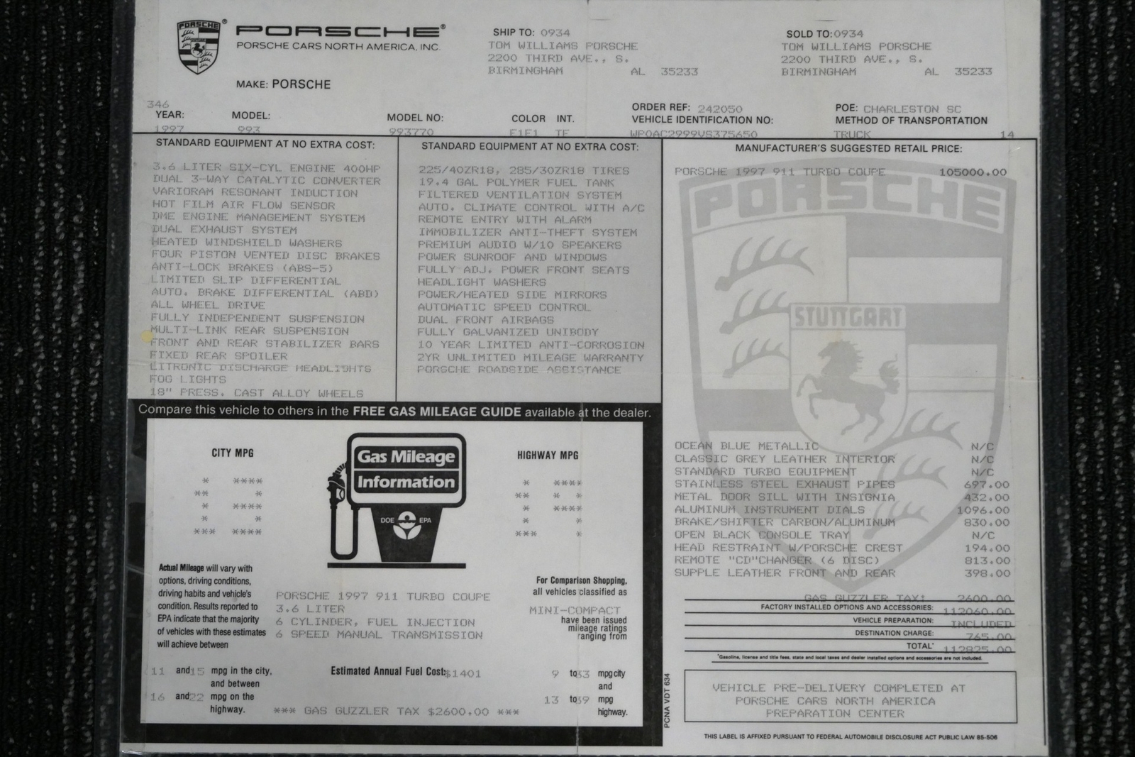 We have just added to our extensive exotic car inventory a beautiful 1997 Porsche 911 Turbo in Ocean Blue Metallic over Classic Grey leather with only 22,988 original miles. This Turbo is loaded with: 3.6L twin turbo flat six, 6 speed manual transmission, eight way seats left and right, aluminum shifter and handbrake handles, aluminum gauge faces, stainless steel sill plates, stainless steel oval exhaust tips, 6 CD changer, Porsche crests embossed in headrests, supple leather front and rear, sunroof, rear wiper, cruise control, floor mats, the window sticker, keys, books, tire inflator and much more. This is a very well cared for, low mile 993 with a stack of service records, a fresh dry ice blasting (check out the super clean chassis pics) in a great color!