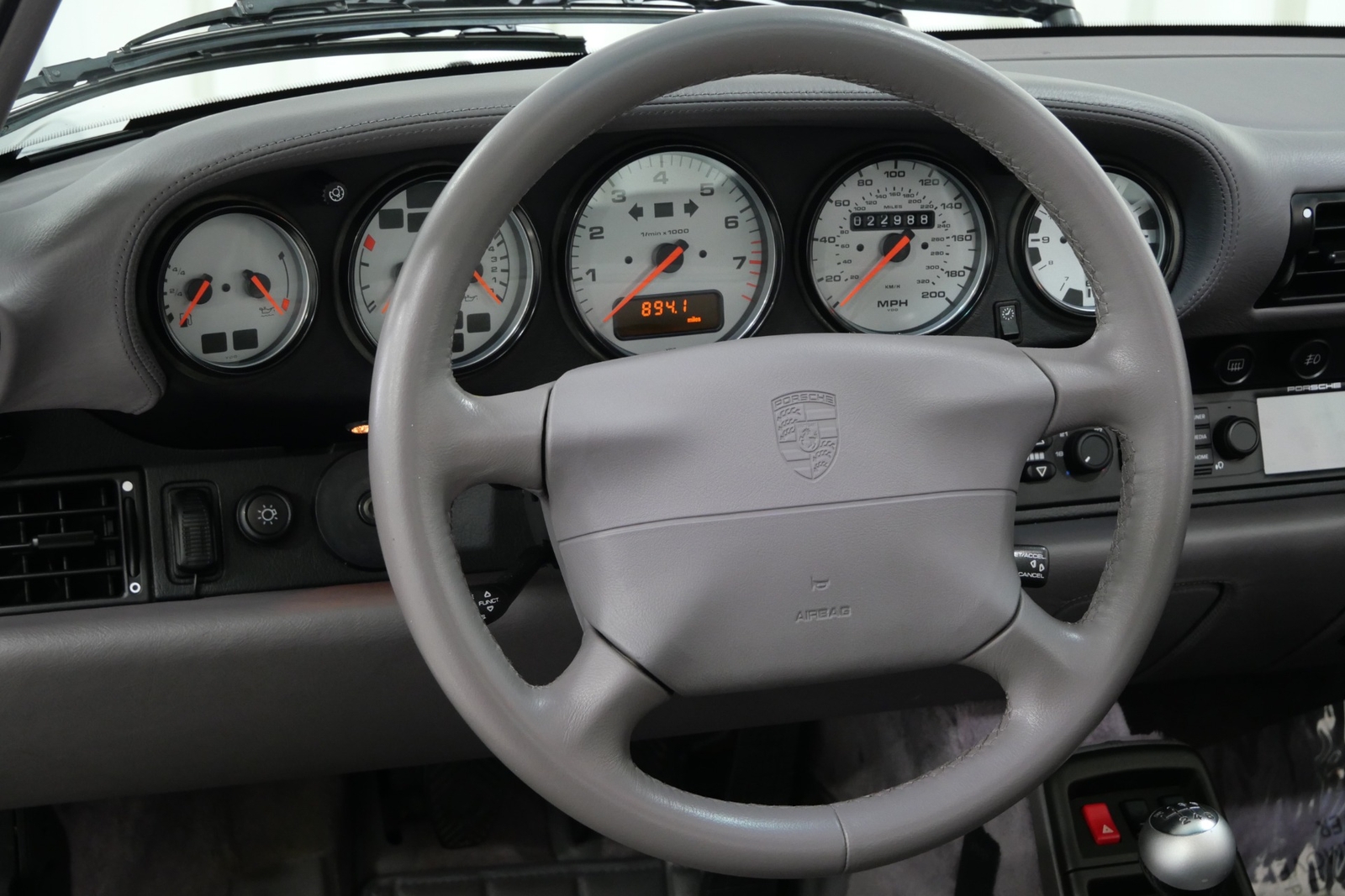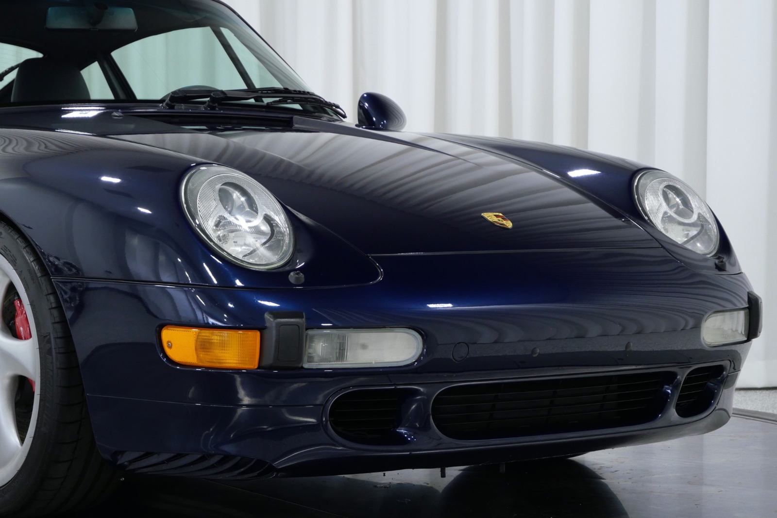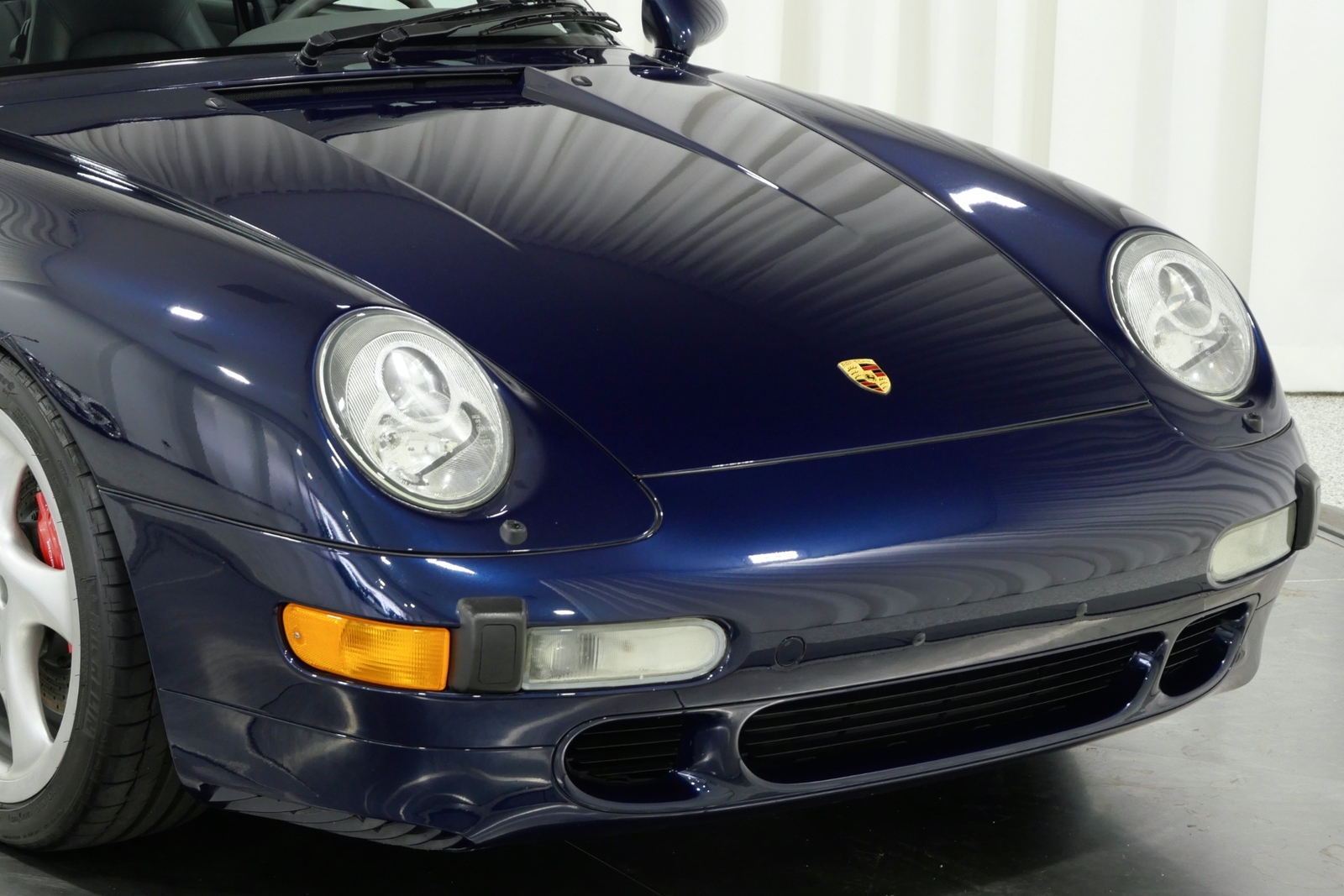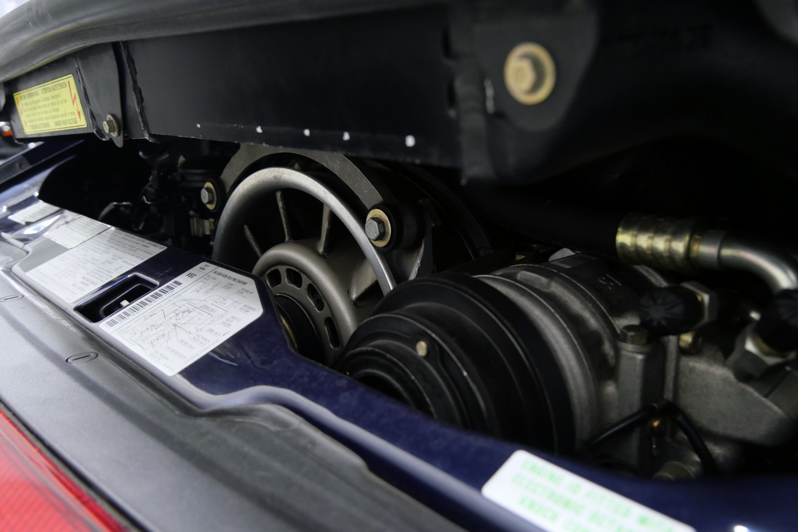 We have just added to our extensive exotic car inventory a beautiful 1997 Porsche 911 Turbo in Ocean Blue Metallic over Classic Grey leather with only 22,988 original miles. This Turbo is loaded with: 3.6L twin turbo flat six, 6 speed manual transmission, eight way seats left and right, aluminum shifter and handbrake handles, aluminum gauge faces, stainless steel sill plates, stainless steel oval exhaust tips, 6 CD changer, Porsche crests embossed in headrests, supple leather front and rear, sunroof, rear wiper, cruise control, floor mats, the window sticker, keys, books, tire inflator and much more. This is a very well cared for, low mile 993 with a stack of service records, a fresh dry ice blasting (check out the super clean chassis pics) in a great color!