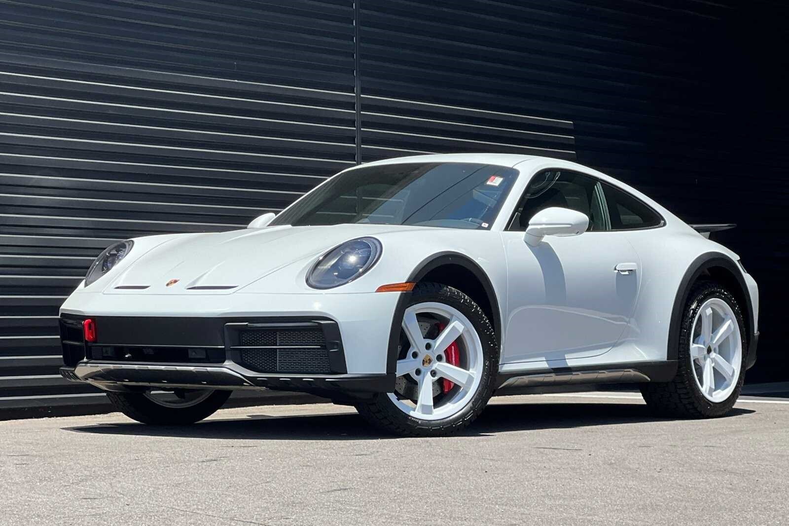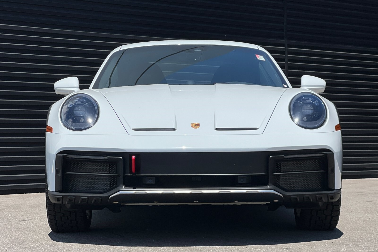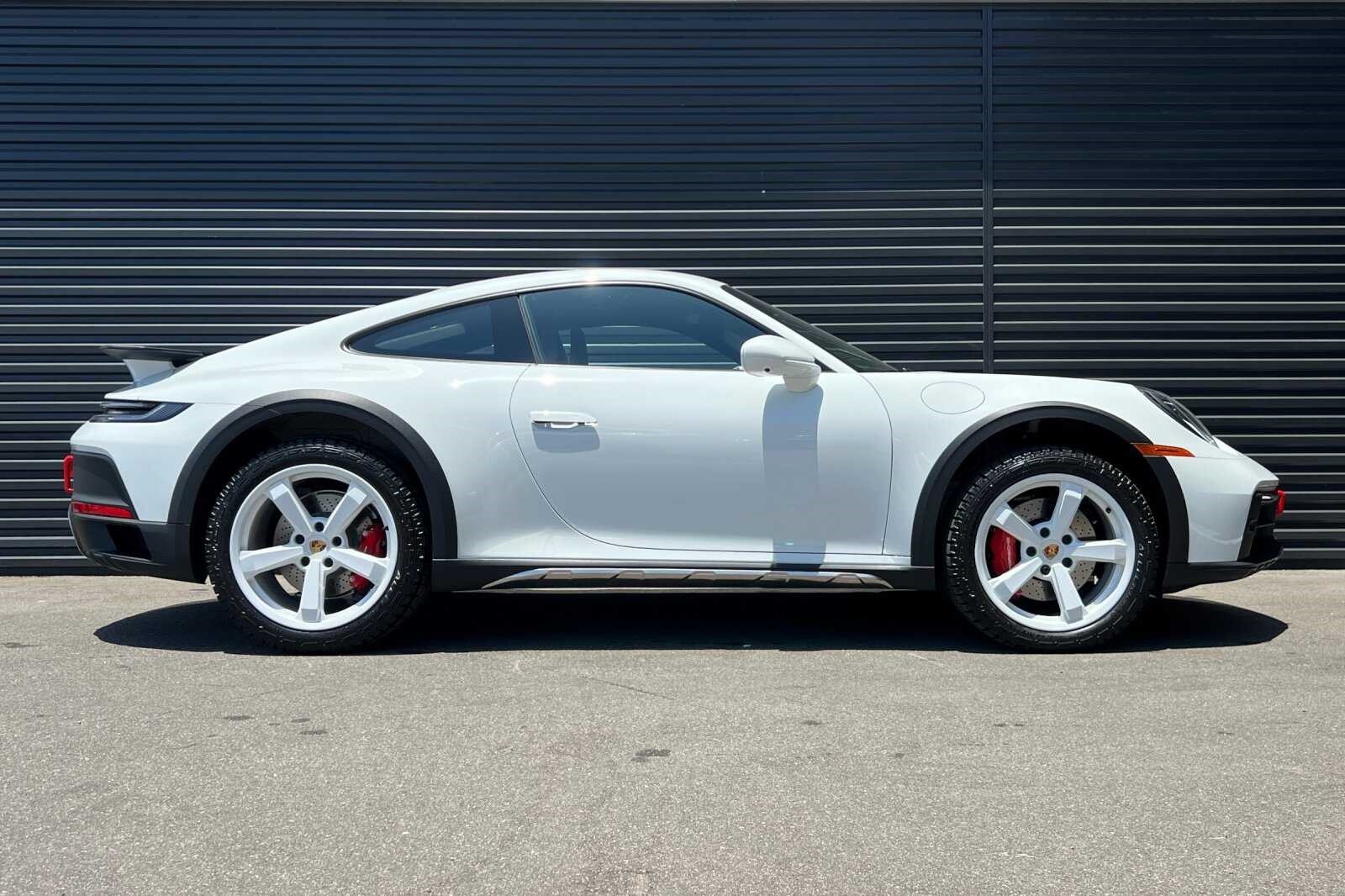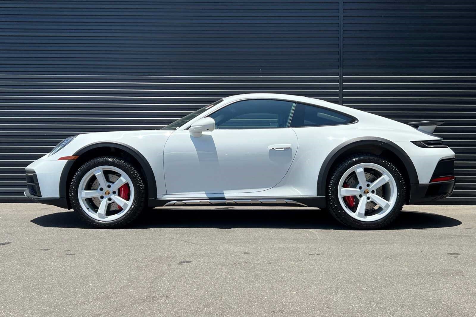 This Porsche San Luis Obispo 2024 White Porsche 911 Dakar is well equipped and includes these features and benefits: Porsche Approved Certified Pre-Owned Certified, Burmester High-End Surround Sound System, Sport Chrono Stopwatch Dial in Guards Red, 4-Wheel Disc Brakes, ABS brakes, Adaptive suspension, Air Conditioning, Alloy wheels, Auto-dimming door mirrors, Auto-dimming Rear-View mirror, Automatic temperature control, Brake assist, Bumpers: body-color, Delay-off headlights, Driver door bin, Driver vanity mirror, Dual front impact airbags, Dual front side impact airbags, Electronic Stability Control, Exterior Parking Camera Rear, Four wheel independent suspension, Front anti-roll bar, Front Bucket Seats, Front Center Armrest, Front dual zone A/C, Front reading lights, Fully automatic headlights, Garage door transmitter: HomeLink, Heated door mirrors, Illuminated entry, Low tire pressure warning, Navigation system: Porsche Communication Management (PCM), Occupant sensing airbag, Outside temperature display, Overhead airbag, Overhead console, Passenger door bin, Passenger vanity mirror, Porsche Communication Management, Power door mirrors, Power driver seat, Power passenger seat, Power steering, Power windows, Radio data system, Rain sensing wipers, Rear anti-roll bar, Rear fog lights, Rear window defroster, Remote keyless entry, Security system, Speed control, Spoiler, Sport steering wheel, Steering wheel mounted audio controls, Tachometer, Telescoping steering wheel, Tilt steering wheel, Traction control, Trip computer, and Variably intermittent wipers. 360 Camera, Active Parking Assist, Adaptive Cruise Control, Adaptive Headlights, Android Auto, Apple Carplay, Automatic Headlights, Blind-Spot Monitors, Bluetooth, Collision Avoidance System, Collision Warning Alert System, Drowsiness Alert, Heads-Up Display, Heated/Cooled Seats, Keyless Access w/Push Button Start, Lane Keeping Assist, Navigation, Smartphone App Integration, Touchscreen Controls, Voice Recognition, Burmester High-End Surround Sound System, Sport Chrono Stopwatch Dial in Guards Red.