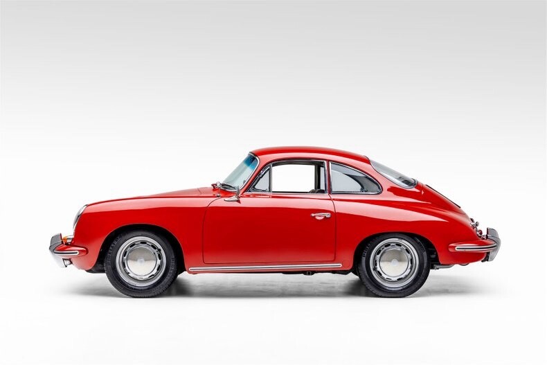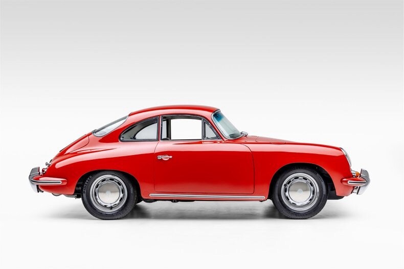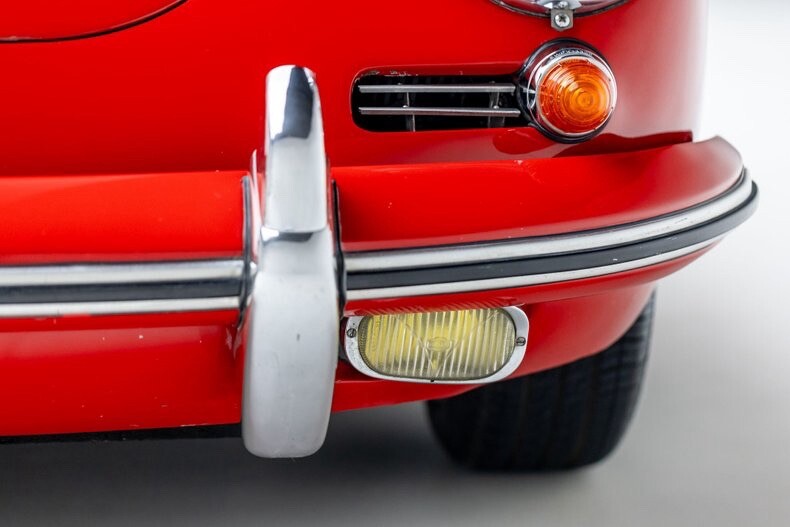 1964 Porsche 356SC is a Coupe. VIN: 217350 with matching numbers Engine 811451 and Transmission 76059. This has always been a California 356. According to the Porsche Kardex this 356SC was imported by Hoffman Motors in New York, and sold to the first owner in Manhattan Beach, California. It has front fog lights and VDO gauges. The exterior color is Signal Red, the paintwork is in great condition with a Black interior. The front seats, dashboard and door panels have been reupholstered and new square weave carpets installed.