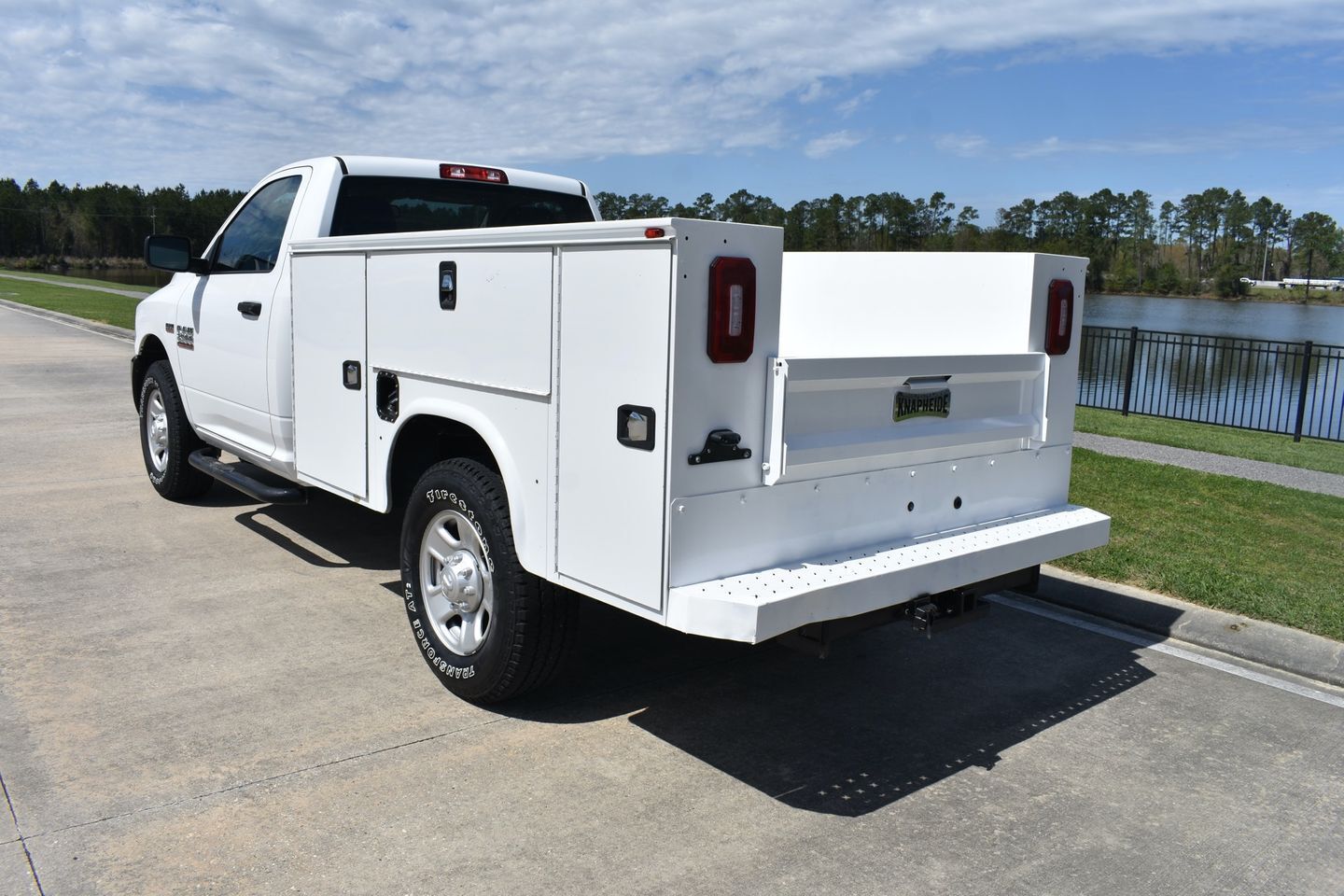 You are looking at a 2018 Dodge Ram 2500 Regular Cab with a 8ft SERVICE BED. It is powered with a 6.4L HEMI V8 and automatic transmission. It is equipped with tilt, cruise, and am/fm radio, and receiver hitch. Also included are the owner's manuals and one keyless remote.