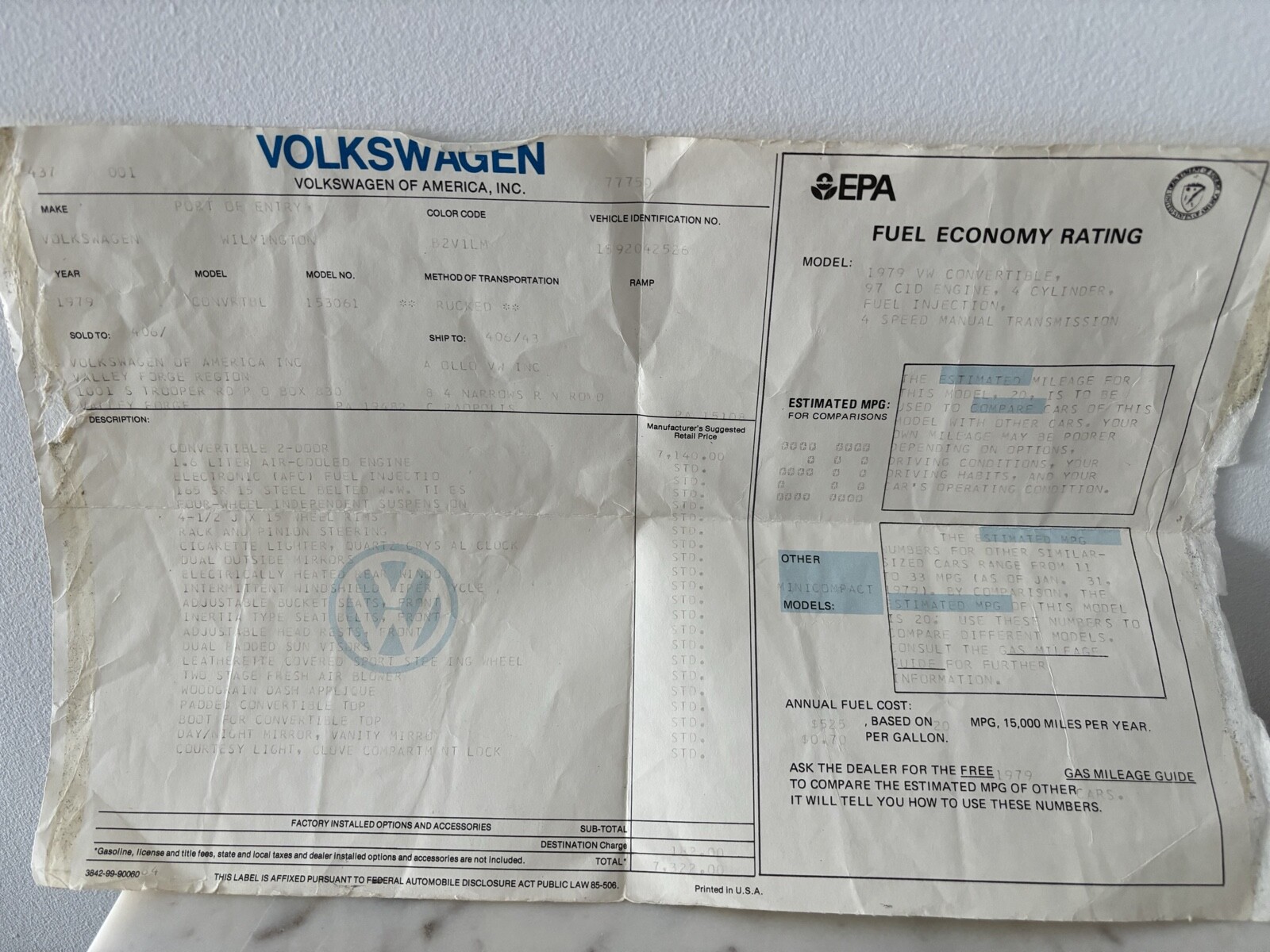 I bought this car 1 1/2 years ago from the original owner. Due to health and age I realize that this car should be passed on to someone that can appreciate it for what it is; A TIME CAPSULE. Original VW’s in this condition are quite rare.Vehicle Details