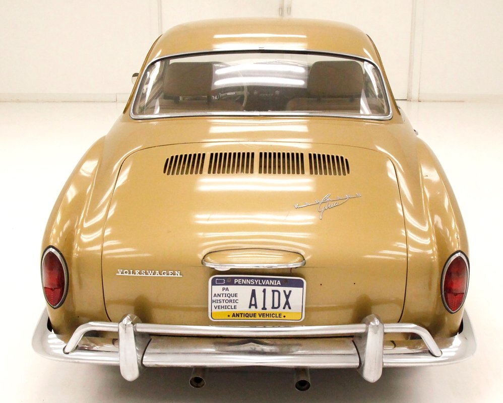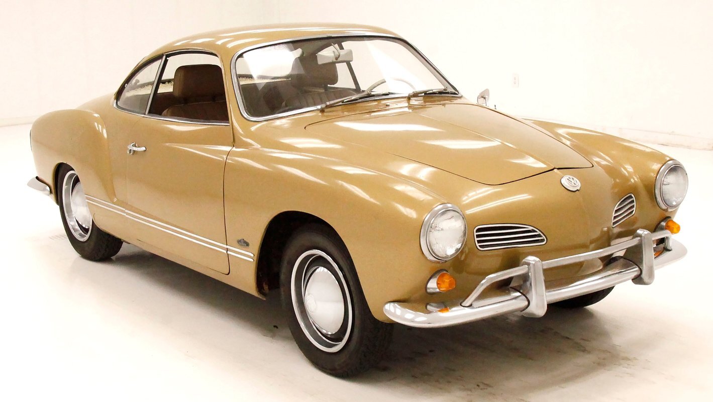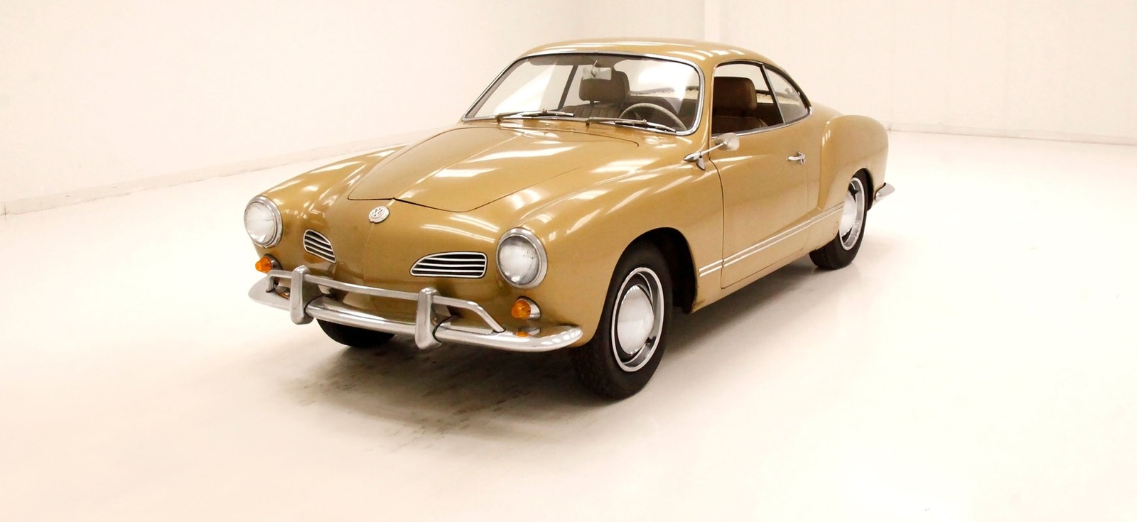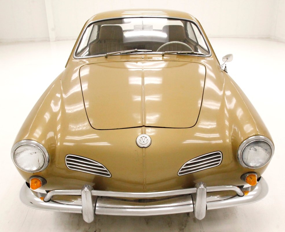 For consignment, a Karmann Ghia coupe right out of 1964. Presenting well as a garage/barn find and was previously owned by our consignor's uncle who had the car painted gold, had a crate engine installed as well as performing the beginnings of a 12 volt conversion after the 6 volt generator died. At that point, the uncle's health started to fail and the car sat in a garage until a few weeks ago when it was unearthed. This sports car version from Volkswagen comes to our Hallowed Halls as a running and driving project, but will need work to be roadworthy. Break out your toolbox and with some hard work and sweat equity you'll have a VW at its best with the sports car genre ready for the taking, just fall in love, pay the price and...auf wiedersehen!