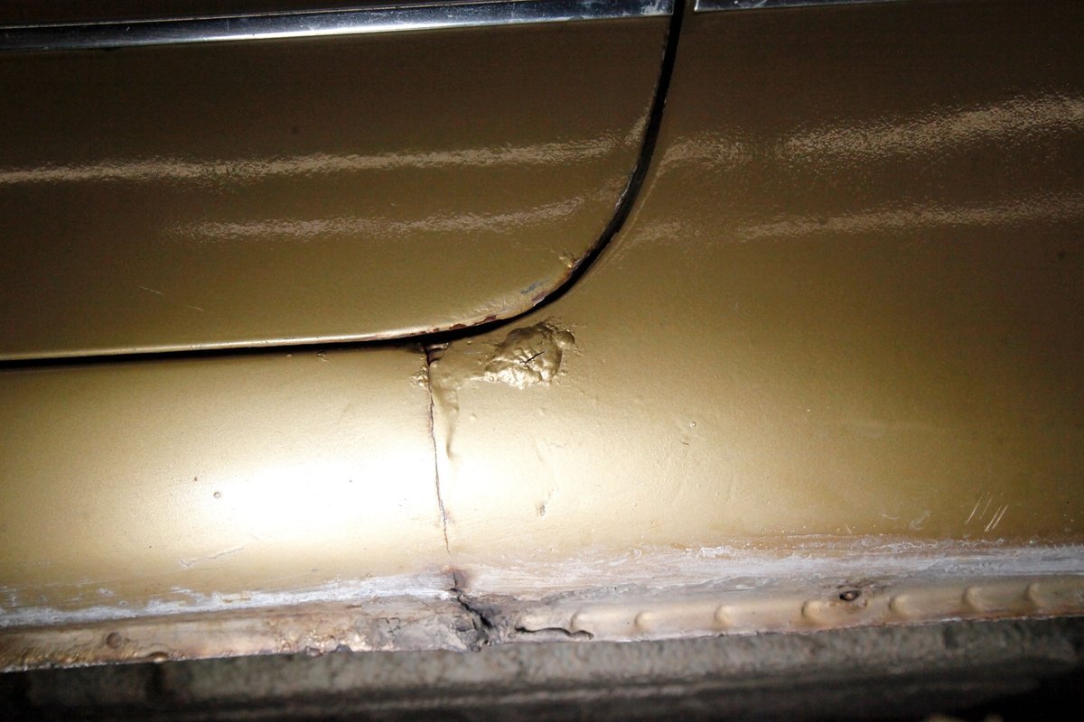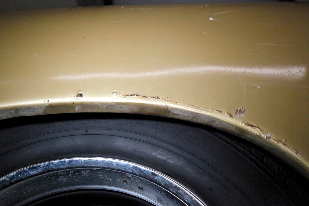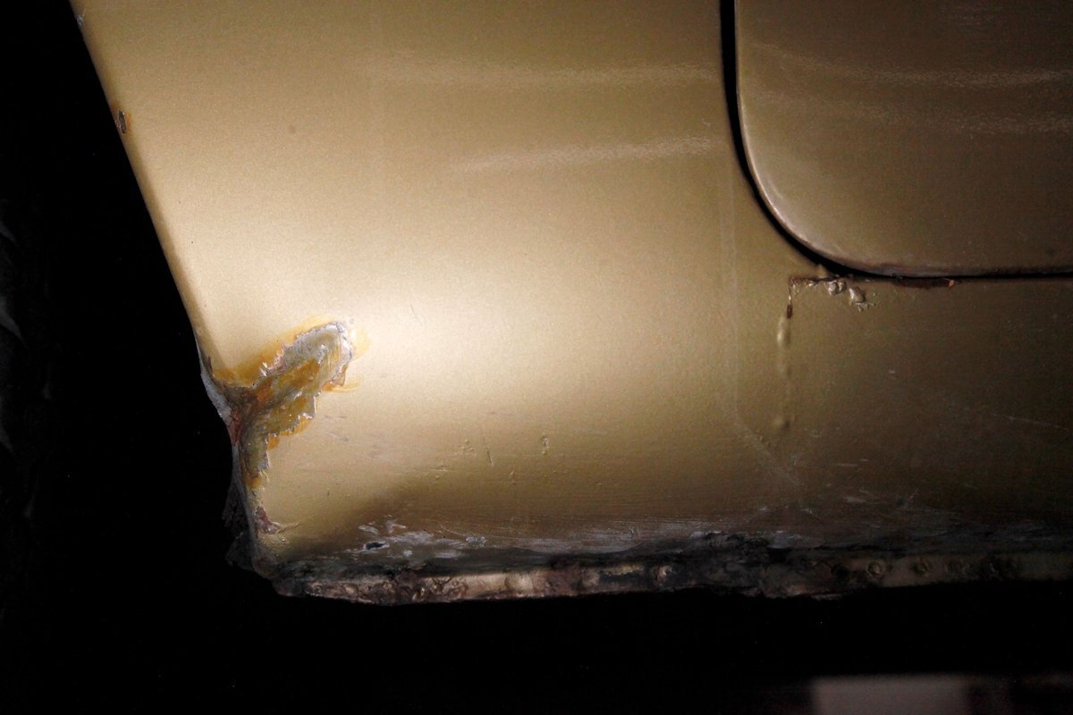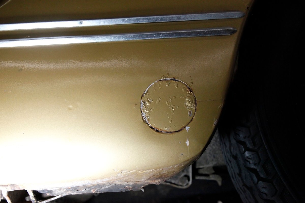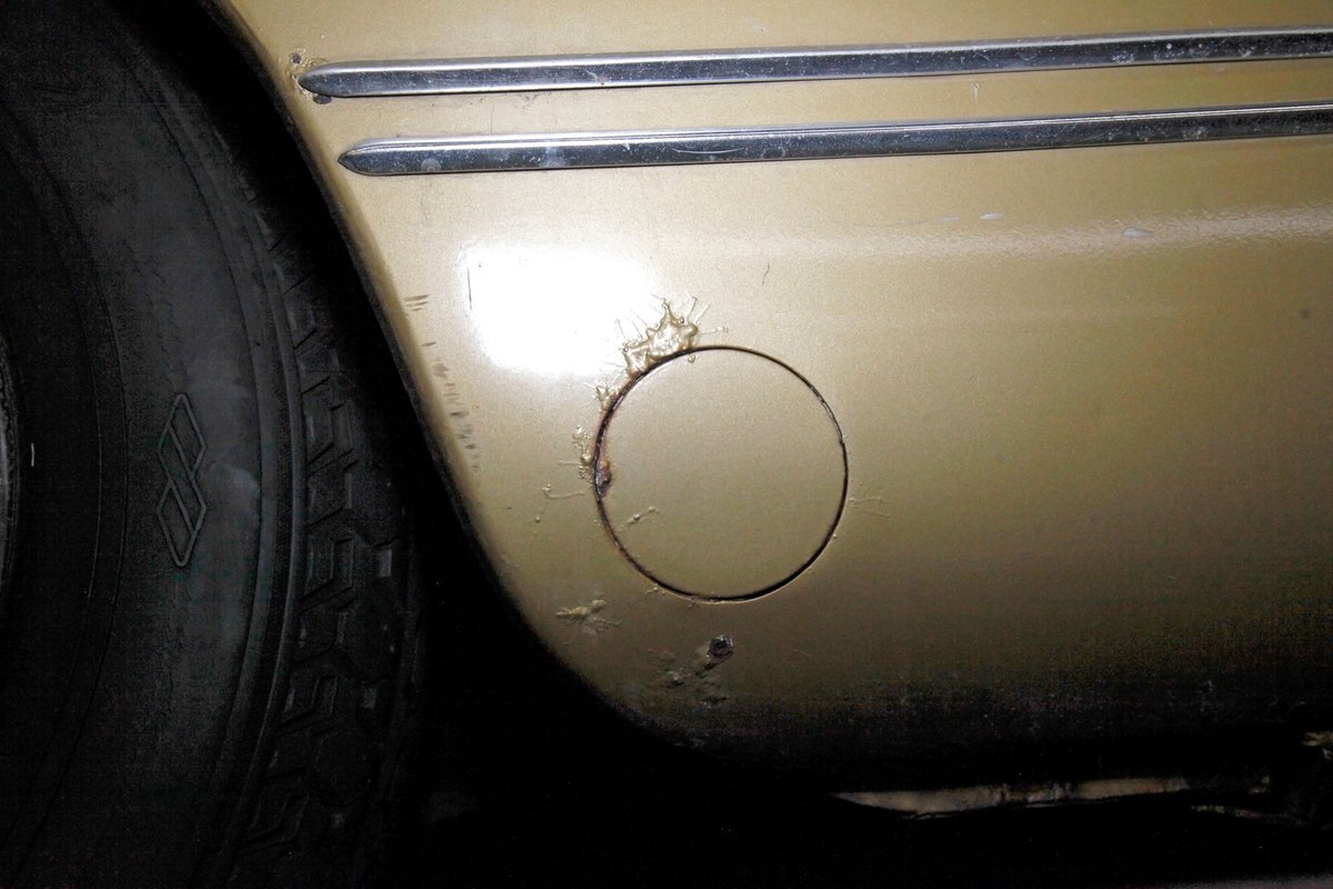 The closest thing you can get to a Porsche 356, and actually it's handmade from the factory due to the body being made entirely of one piece. Yes, save for the doors, hood and trunk lid, all panels were shaped then welded together then hand sanded down to the shape you see. This one is painted in a Chevrolet gold and the door gaps are straight, however we do note some invasive rust, body filler and repairs in the lower sections all around. These repairs have started to show through with some cracking, blistering and the worst being the lower rear quarters and rockers that are now showing bubbling, but the overall shape of the car and metal is just smooth curves. Lightly tarnished chromed accenting for the bumpers, bumperettes, bedrail guards, badging, small grille openings, and a dual lower trim strip, but all still retaining a shiny finish. Black and stainless surrounds are noted for the windows and the glass is excellent and all clear. Black steel wheels are all around and are topped with VW badged moon caps and trim rings. Schnell! Schnell!