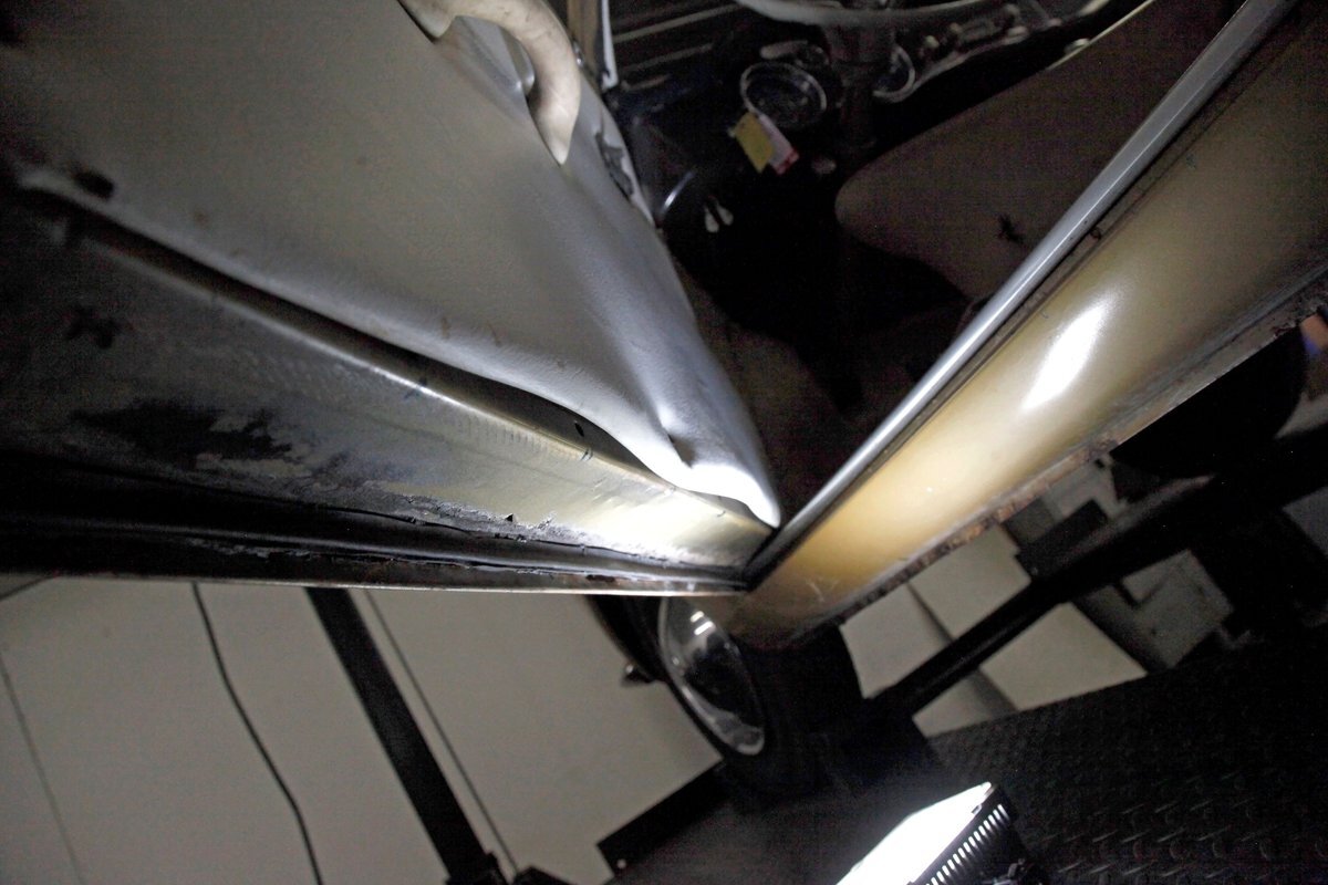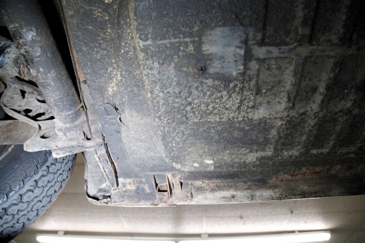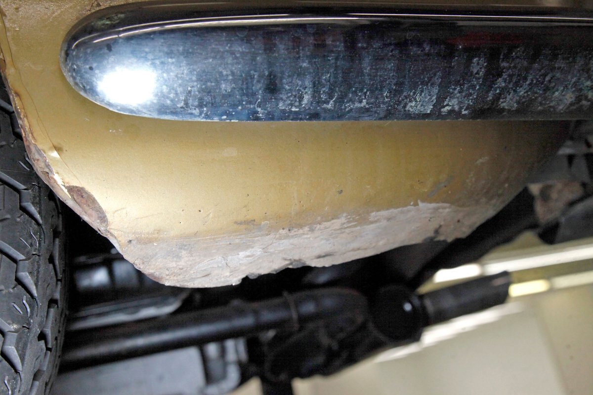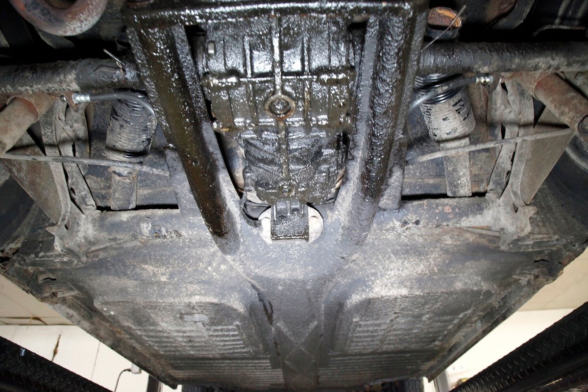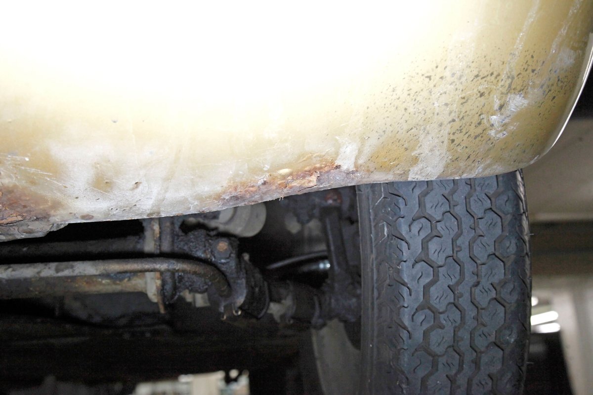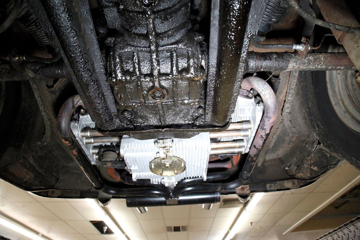 Still well intact with no rust is the unibody frame which uses the floor pans and central panel along with some steel tubing as the structure, and it is all solid. We do note some scale rust on the pinch weld of the rocker panels but all else is just perfectly patinaed black steel. Various under the engine parts are fairly clean and oil free; we note a stock style exhaust system with dual chrome tips. Independent transverse torsion bars for the front, and independent semi trailing arms for the rear suspension provides the ride and handling. Drum brakes with newer hoses are all around to provide the stopping power.