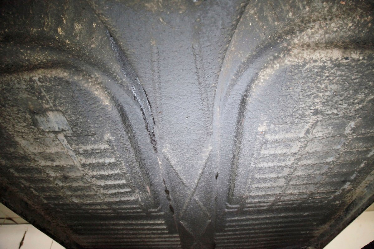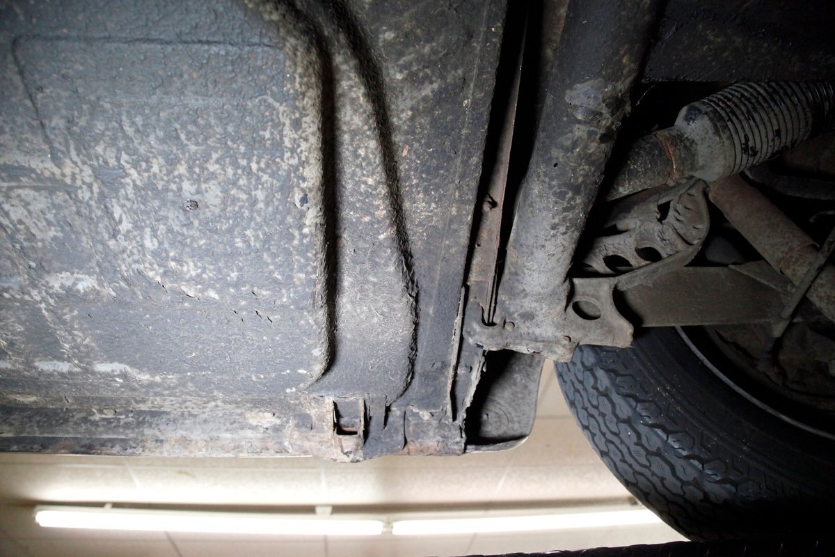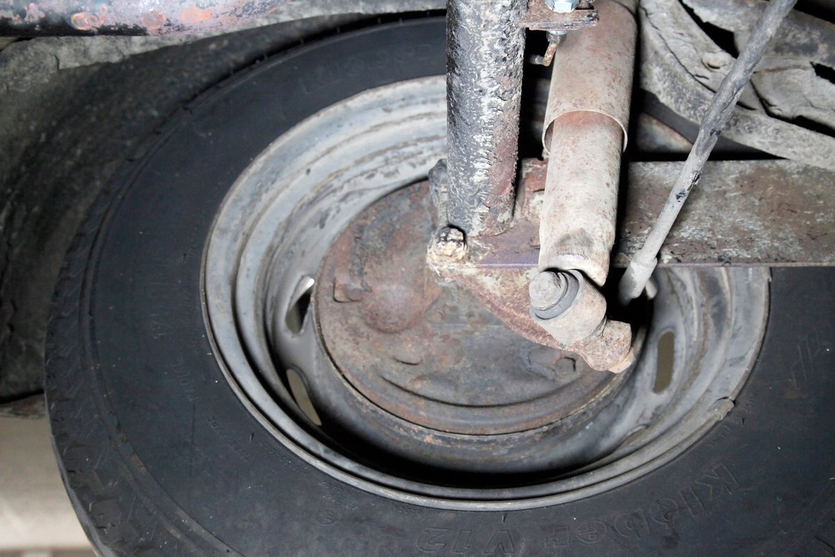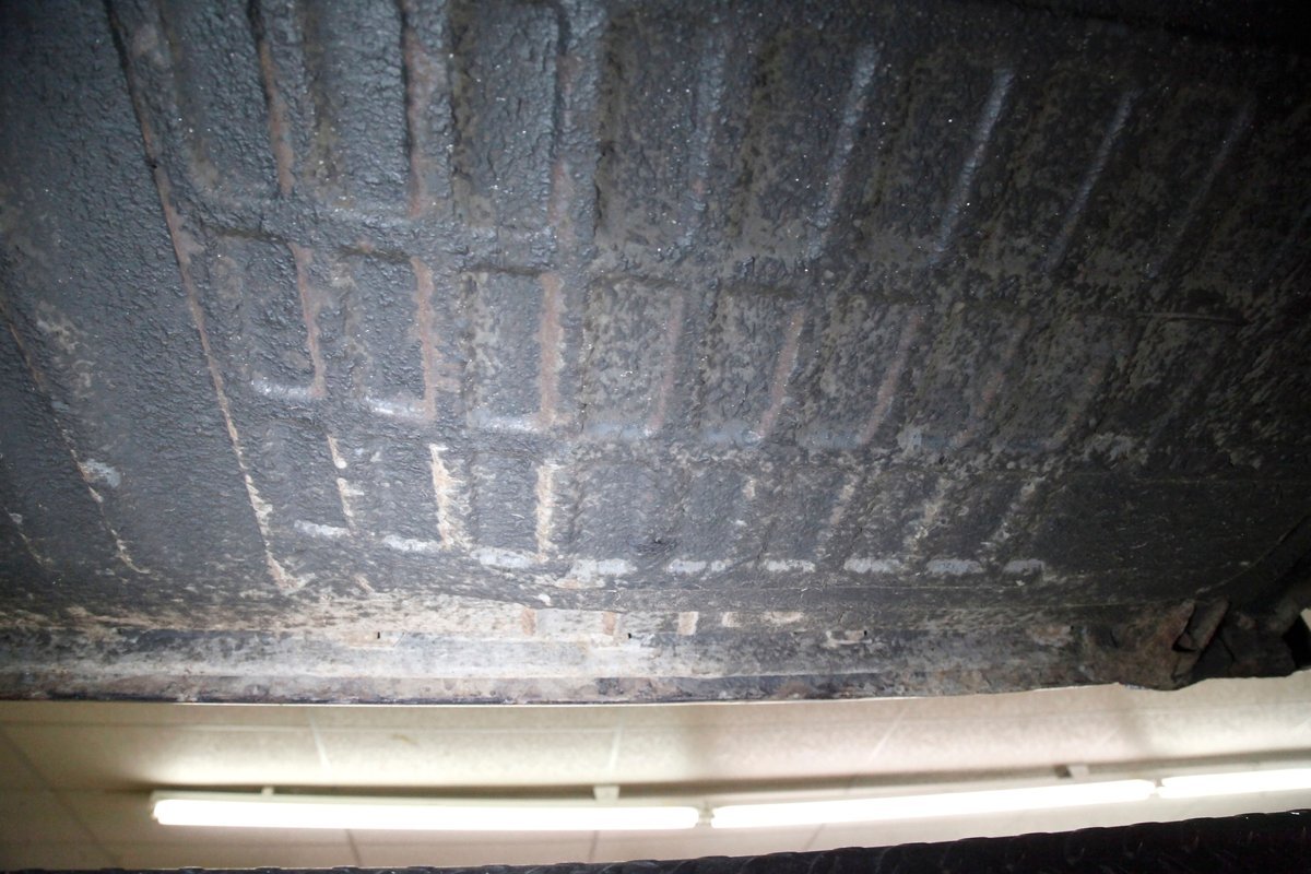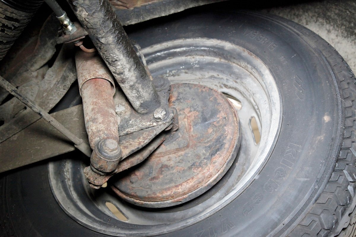 Still well intact with no rust is the unibody frame which uses the floor pans and central panel along with some steel tubing as the structure, and it is all solid. We do note some scale rust on the pinch weld of the rocker panels but all else is just perfectly patinaed black steel. Various under the engine parts are fairly clean and oil free; we note a stock style exhaust system with dual chrome tips. Independent transverse torsion bars for the front, and independent semi trailing arms for the rear suspension provides the ride and handling. Drum brakes with newer hoses are all around to provide the stopping power.
