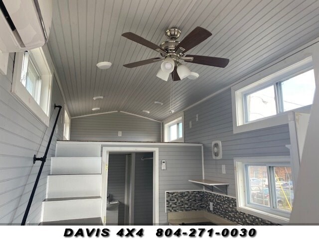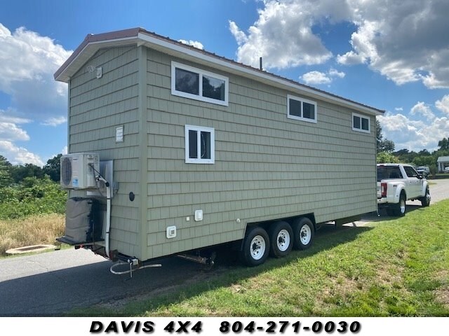 2017 Fully Equipped Tiny House 28’ x 8’. Brand new in the box microwave, toaster, utensils, wash rags, towels, linens, two new mattresses, fold out couch, coffee maker and multiple other items to make this unit 100% live in ready. Brand new equipment. This glorified camper/rv /house on wheels has cedar vinyl siding, metal roof, sliding glass door, central AC system, leveling jacks at all four corners, septic system hook up, vinyl windows, triple axle trailer, dual loft set up for two separated sleeping areas, tons of storage, kitchen area, private bathroom with stand up shower, hot water heater and everything you need to live in camp in or glamp in. This unit is loaded with everything and even the kitchen sink! If it has been used it was used very very little. 100% ready to use with no delays. With price increases these units similar built will push $100k and there is about a 1-2 year wait currently for high end manufacturers production runs.